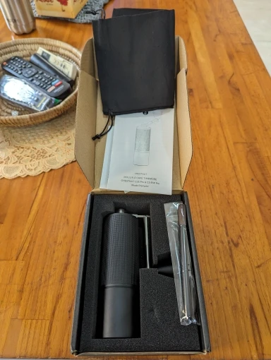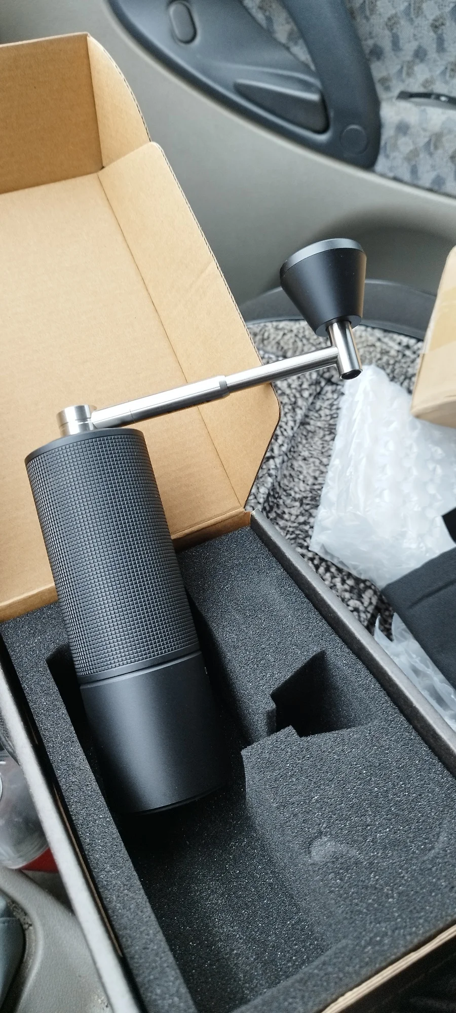 Отличная кофемолка. Пришла быстро, на неделю раньше чем обещано. Коробка слегка примята, но так как не в подарок то и не критично. В , описание, мешочек, кисточка и сама кофемолка в черном поролоне. Раньше была ручная, покупал ещё при Союзе в Сухуми. Так ту практически не возможно было настроить. Или очень грубый помол, или металлическая стружка при помоле. Жернова почти всегда касались друг друга. Эта же, просто космос. Да ещё и купил со скидкой, чуть более 6 тр. Ещё плюс, складная. Очень удобно встала на полку. Продавец 👍👍👍 Рекомендую.