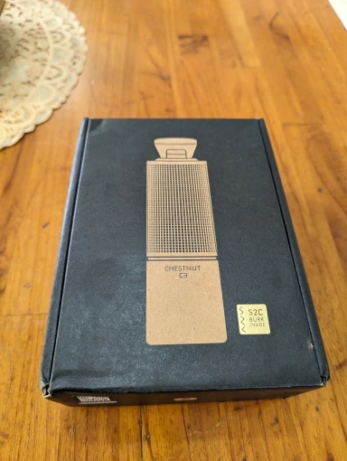 Оригинальная кофемолка. Мелет так же как С2, но шаг мельче, можно более точно подобрать помол. Пока эксперементирую. Хранить в шкафу собранную удобнее, чем С2. Удобно ориентироваться по цифрам уровня помола. Резиновое дно, позволяет не брякать, когда ставишь молку на полку. Мешочек такой же, как и у С2.