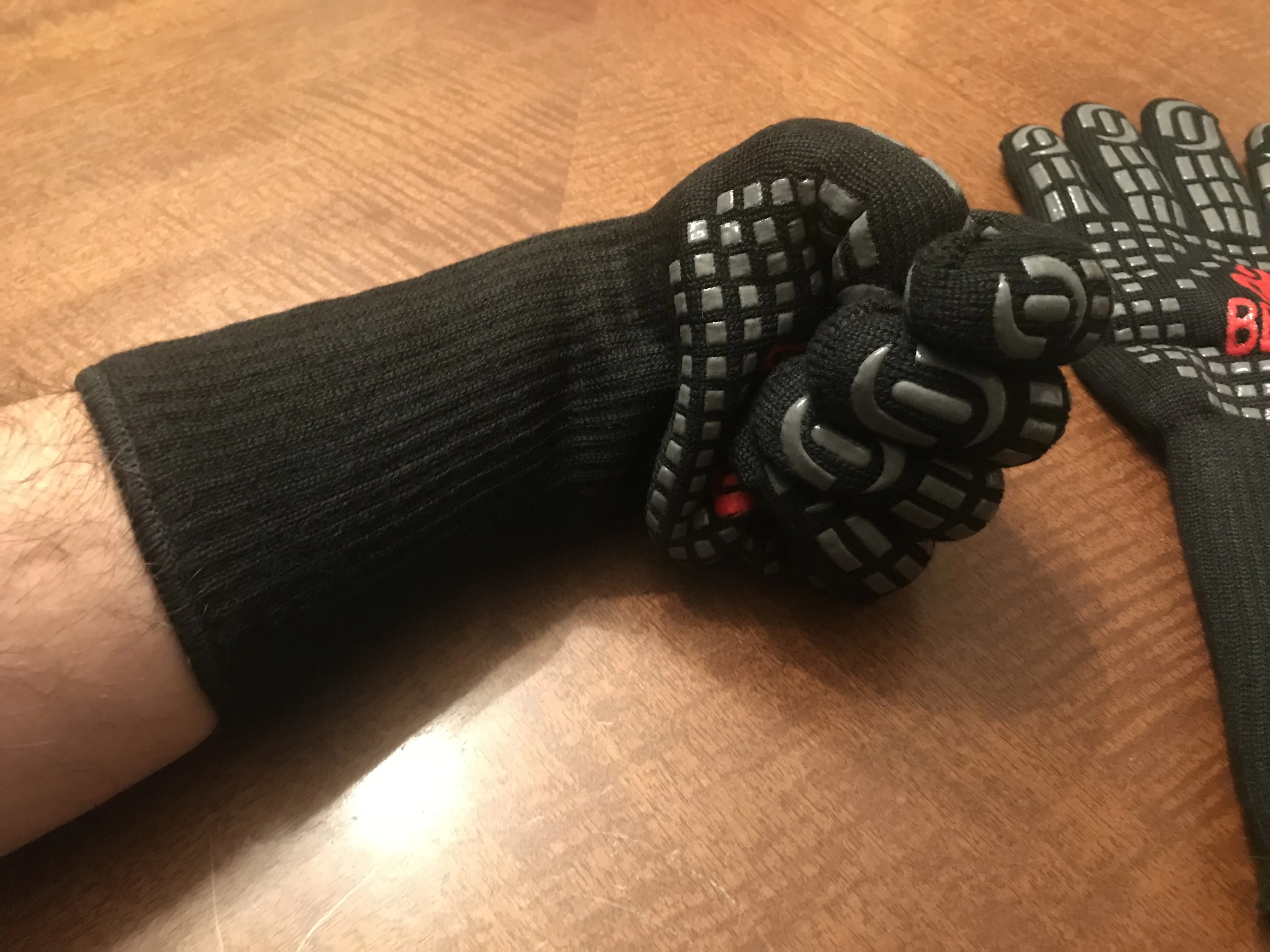 Перчатки отличные! Сшиты очень добротно. В Санкт-Петербург приехали молниеносно: в понедельник — заказали, в пятницу — забрали! На мужскую стандартную руку налезли замечательно. Двусторонние, с прорезиненной поверхностью, двойные, толстые, внутри белая подкладка, есть петельки на каждой перчатке. Со всеми купонами и промокодами обошлись в 1 тысячу рублей! Будем тестить на BBQ!