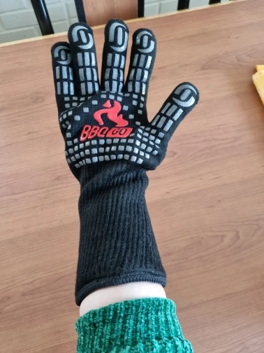 1472°F Термостойкий и многократное использование:Перчатки для барбекю изготовлены из высококачественной термостойкой арамидной ткани и защищают вас от ожогов, когда вы справляетесь с чем-то теплом.Идеально подходит для приготовления пищи, выпечки, гриля, резки, обработки древесины и сварки.