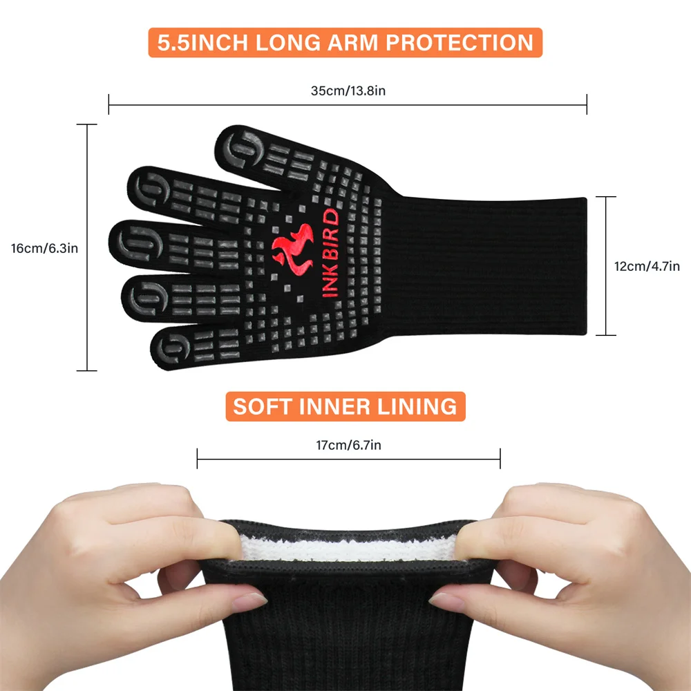 INKBIRD 14-дюймовые перчатки для гриля для барбекю 1472 Чрезвычайно термостойкие перчатки для гриля, нескользящие силиконовые изолированные перчатки для гриля для приготовления пищи/выпечки/гриля/сварки/дымления