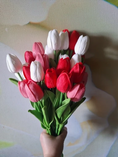 Изумительно красивые и хорошего качества тюльпаны! Заказывала на родительский день, но, пожалуй, оставлю в вазе! Так они ещё и приятно пахнут!