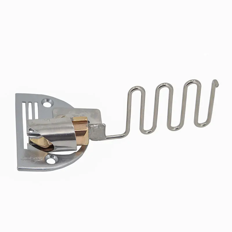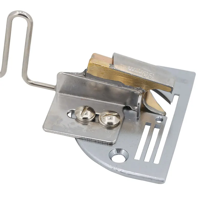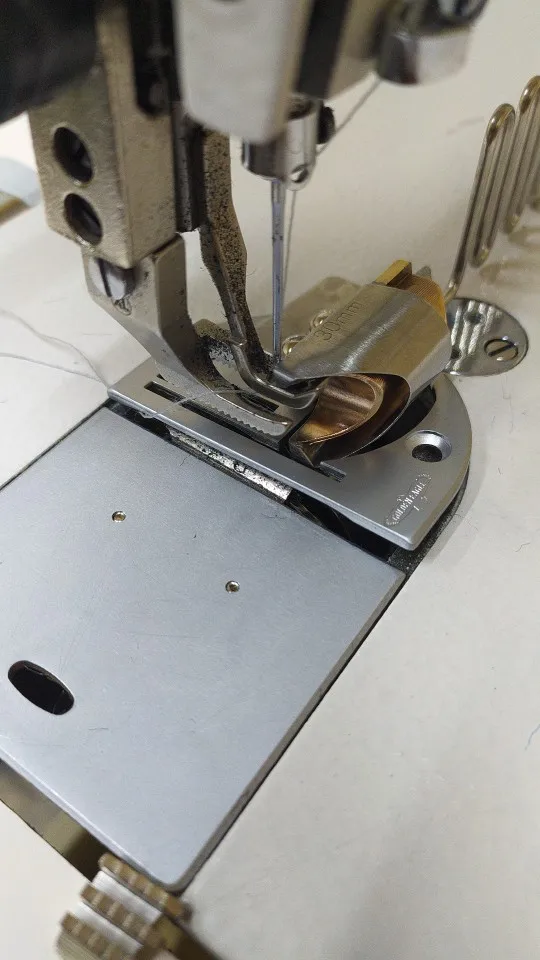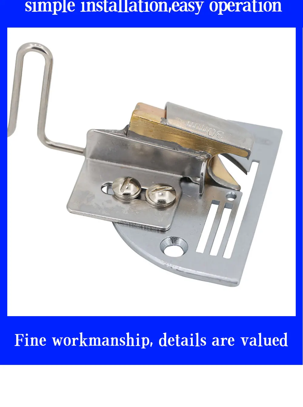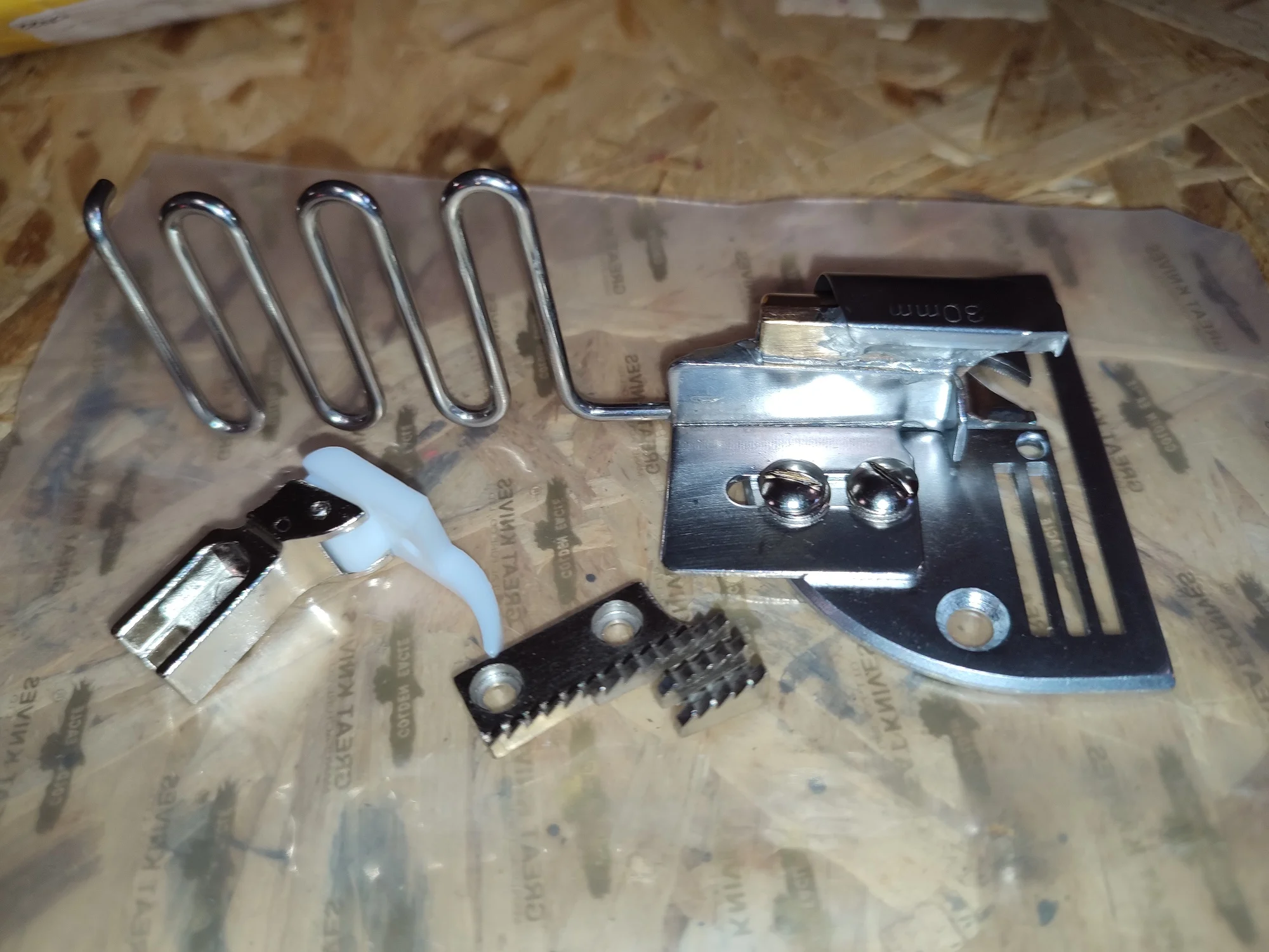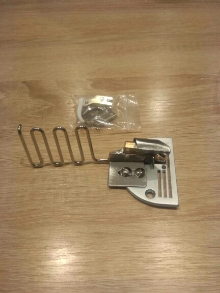 не подходит на джук 0303,надо лапку для иглы спиливать,те лапки что шли с окантователем вообще не подходят.короче нужно спилить лапку по сетке как на фото,поменять на нижнем продвижении зебья,(они шли в комплекте с окантователе).завтра спилю попробую пошить.брал окантователь на ленту 30мм и толщина материала на 12мм