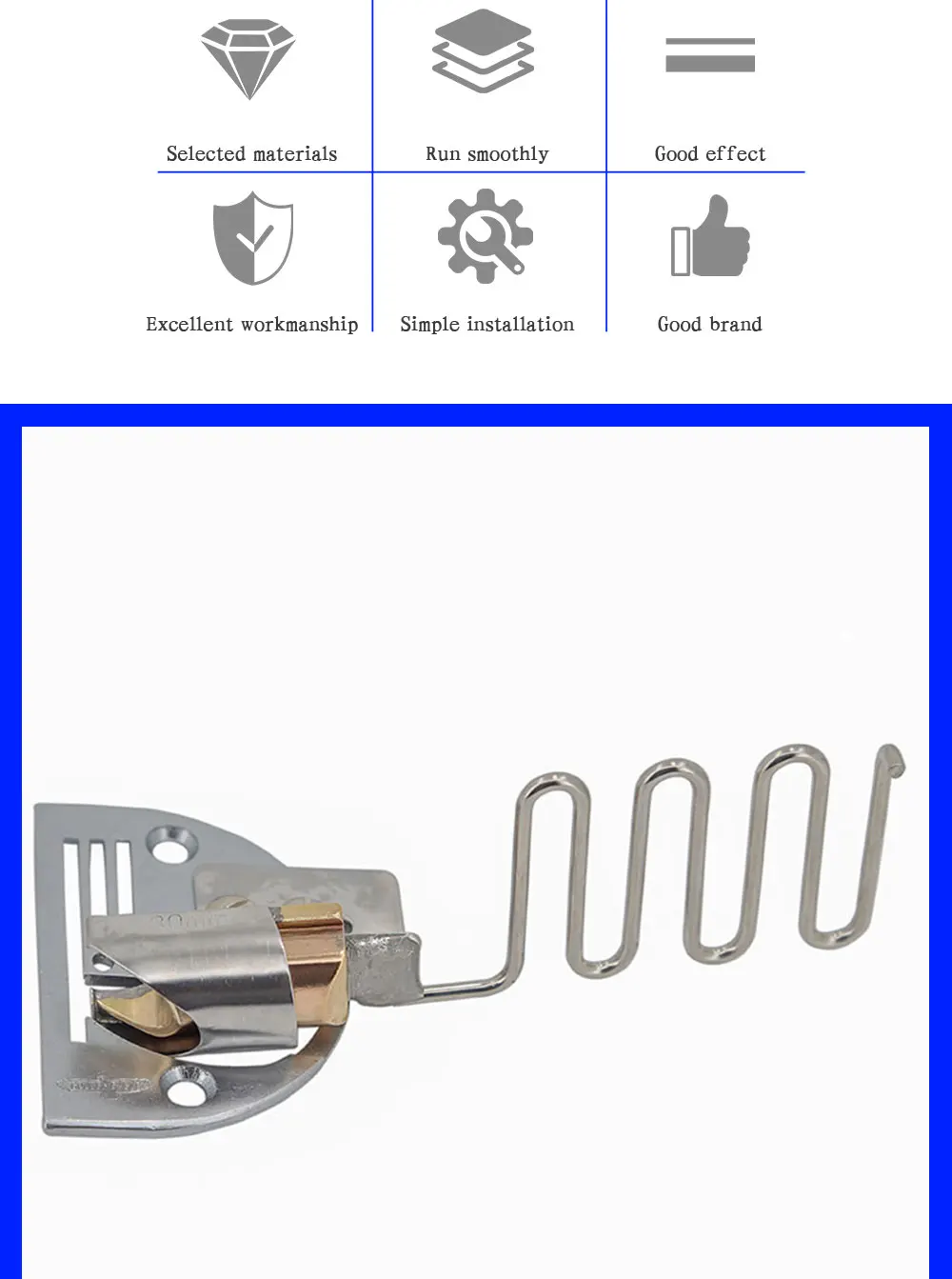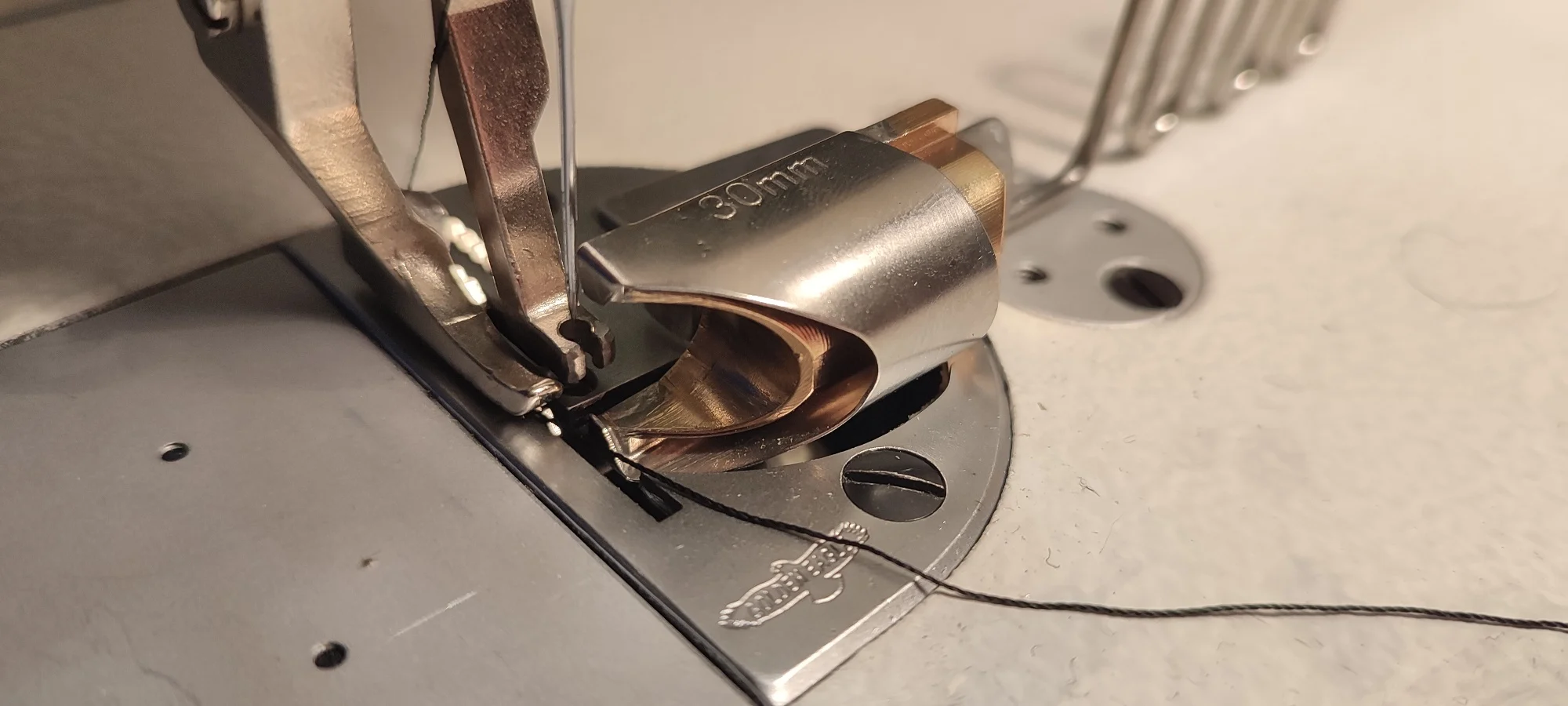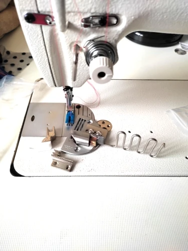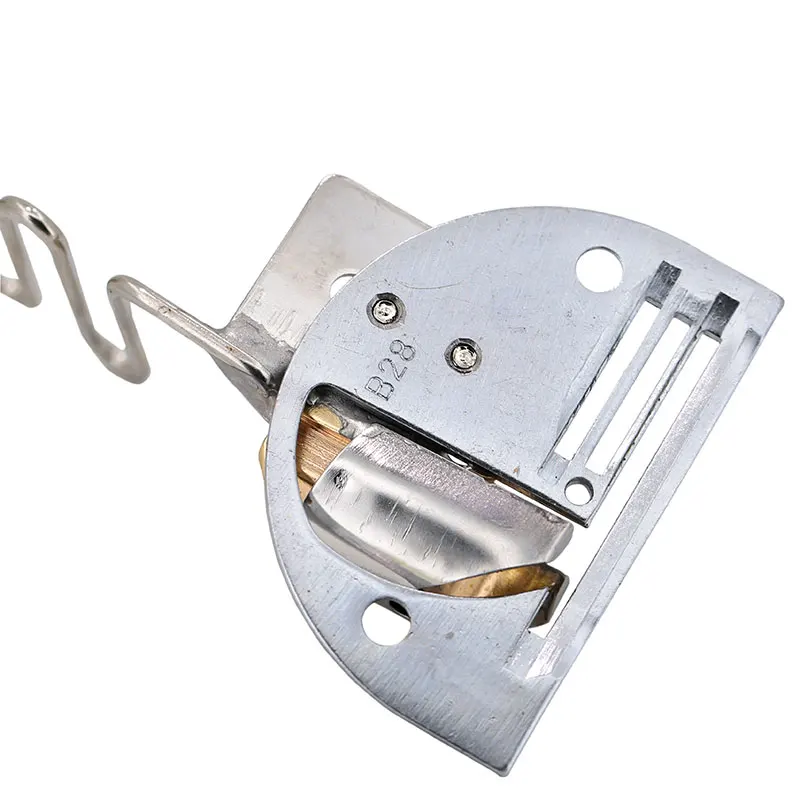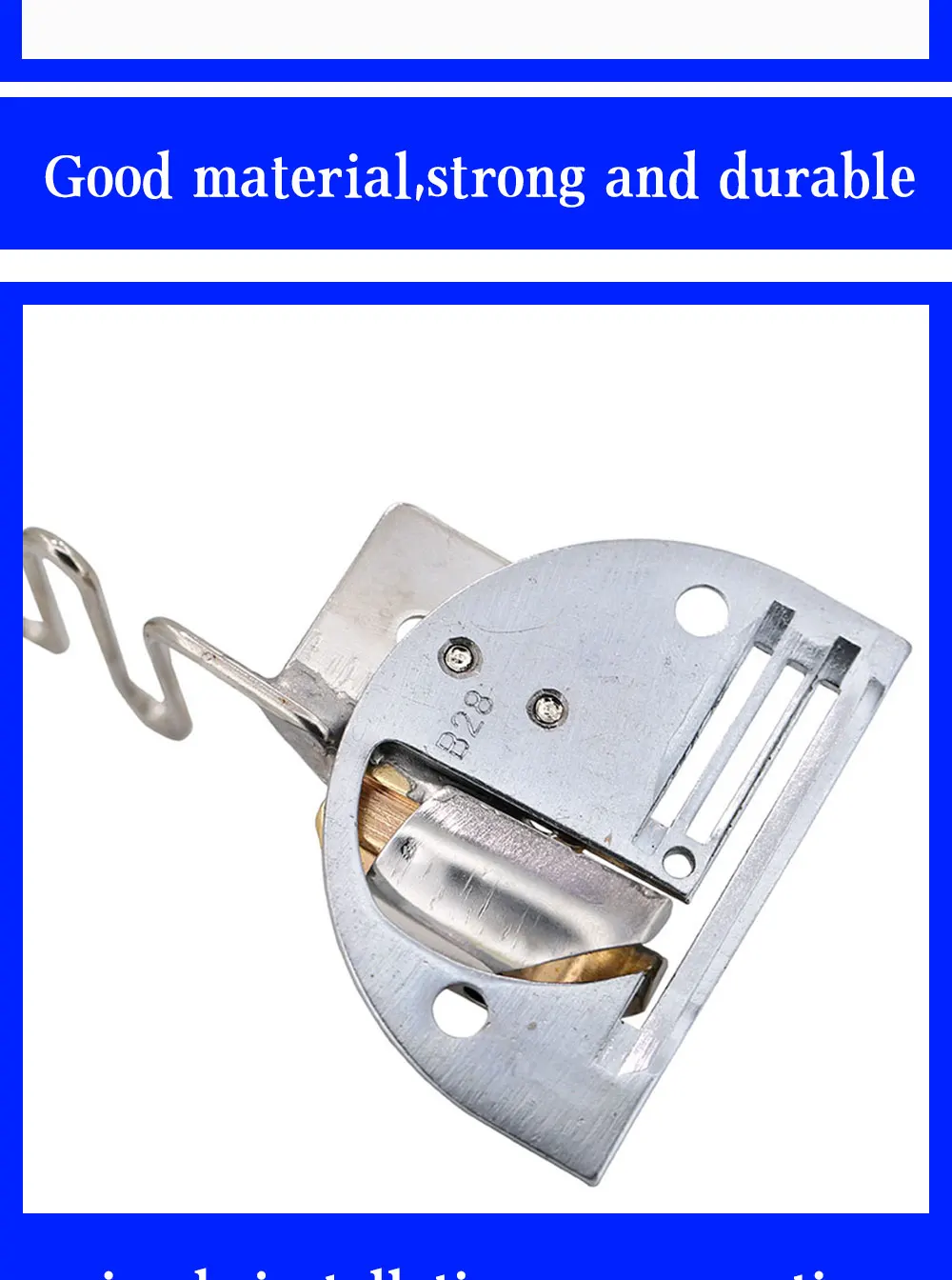 не подходит на джук 0303,надо лапку для иглы спиливать,те лапки что шли с окантователем вообще не подходят.короче нужно спилить лапку по сетке как на фото,поменять на нижнем продвижении зебья,(они шли в комплекте с окантователе).завтра спилю попробую пошить.брал окантователь на ленту 30мм и толщина материала на 12мм