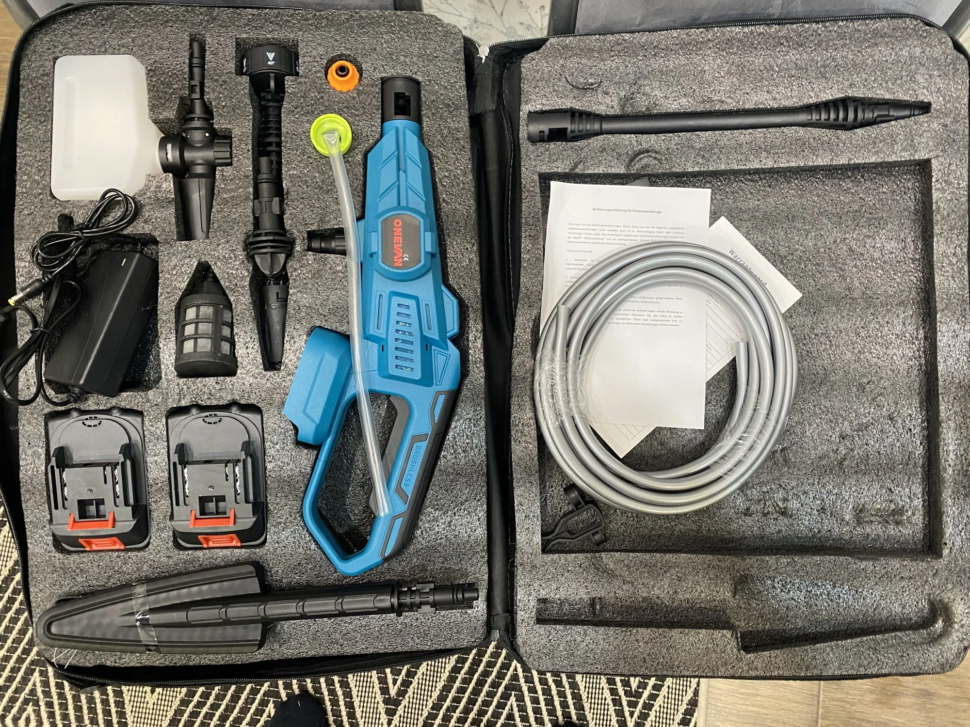 Конечно же не 3500 Вт и не 200 Бар. Нужно делить на 16 как минимум. Но для целей изредка что-то помыть вдали от водопровода и электророзетки более чем достаточно. Попробовал помыть зимние колеса этой мойкой и Керхером 7.85 в котором точно есть 16 Бар. Эта штука моет, но на глаз развивает не более 5 Бар. Если купить в распродажу без аккумуляторов(уже есть аккумуляторы от инструмента) и применять с учетом возможностей и ограничений, то очень полезная в хозяйстве вещь. Маленькая, в сумке занимает немного места.