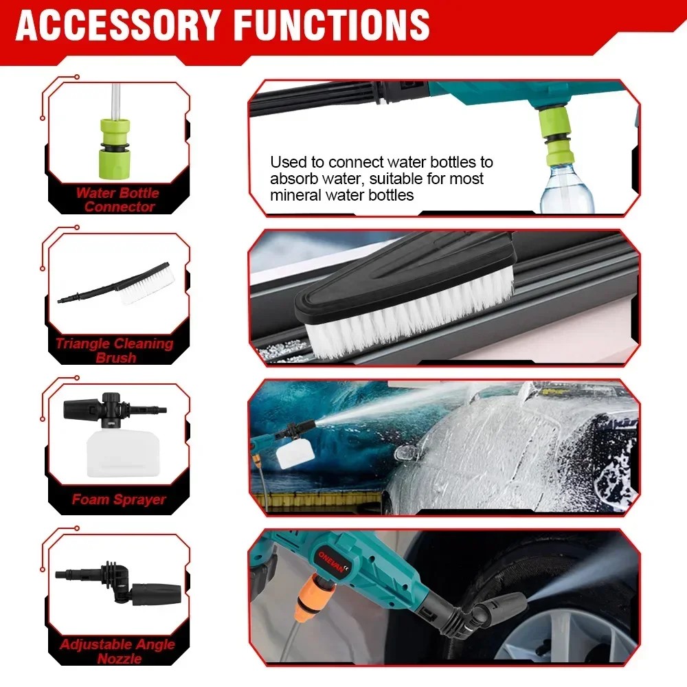 1.Беспроводная автомобильная стиральная машина, нет необходимости подключать при мойке автомобиля, удобно и быстро.