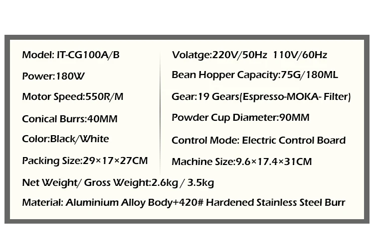 - Hopper capacity:75g