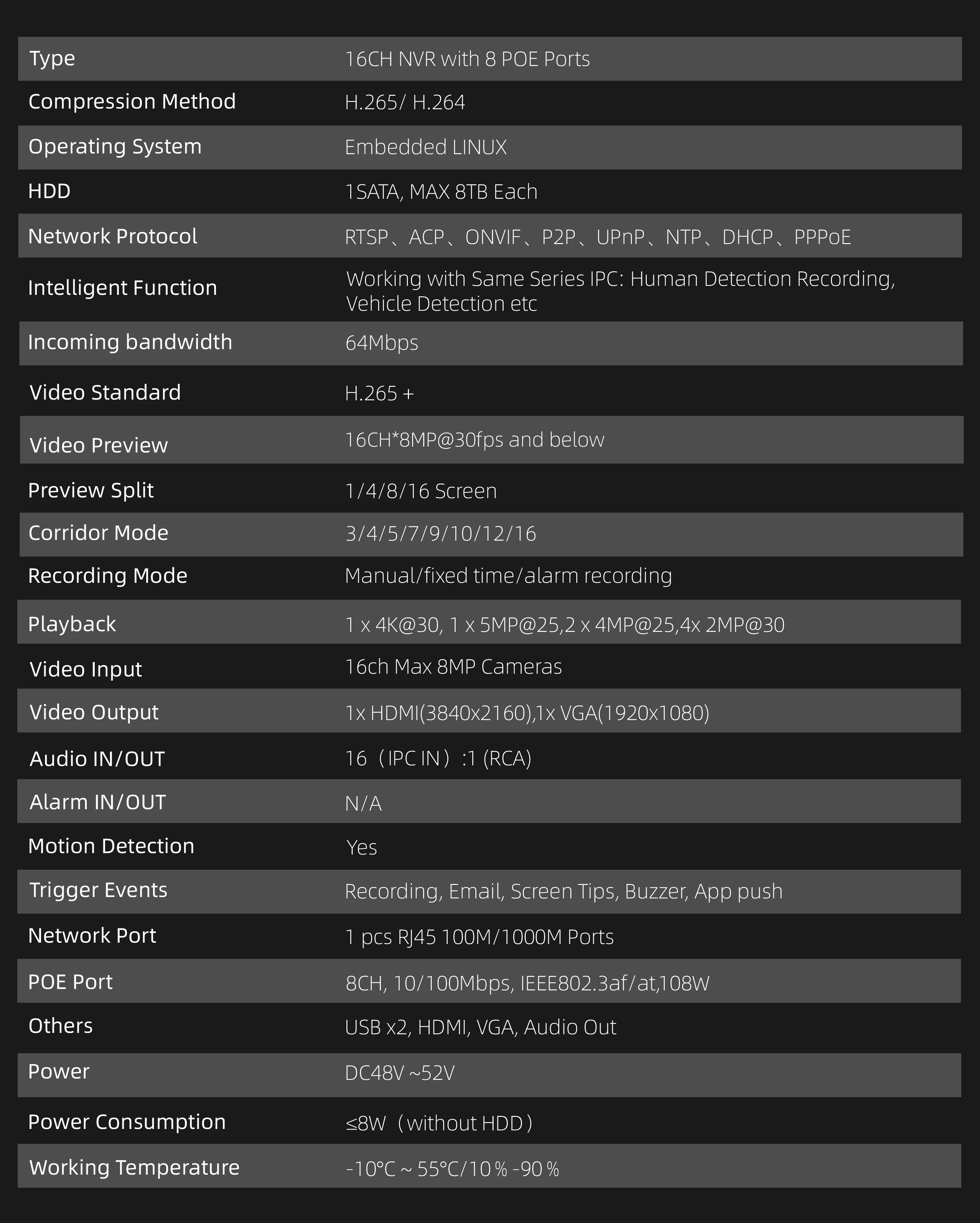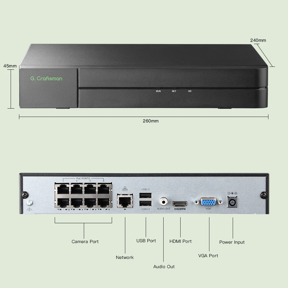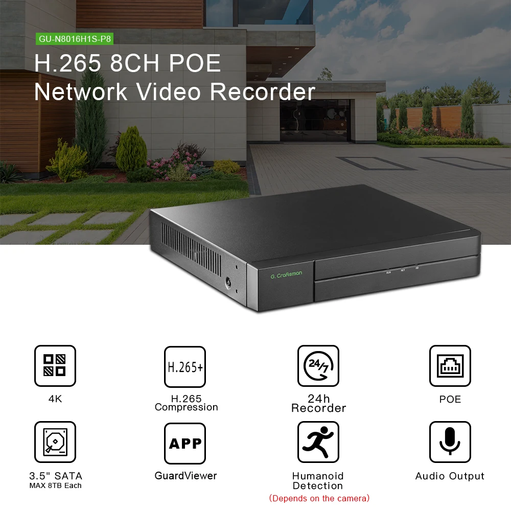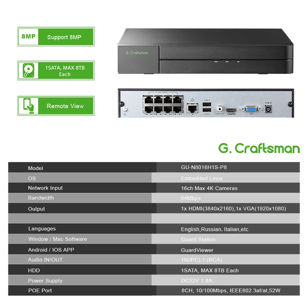 GCraftsman 8ch POE NVR,Guard viewer,GU-N8016H1S-P8,H.265,16...