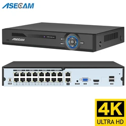ASECAM 16CH 8MP 4K регистратор видеонаблюдения NVR POE Onvif H.265 IP камера видеонаблюдение распознавание лица система XMeye