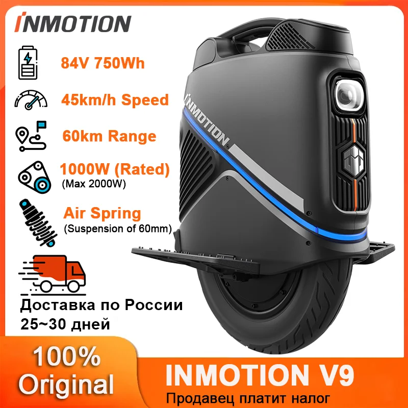 Оригинальный новый лучший электрический одноколесный велосипед INMOTION V9 84 В 750 Вт, аккумулятор, 1000 Вт, двигатель 45 км/ч, скорость 60 км, со светодиодной подсветкой, уницикл EUC