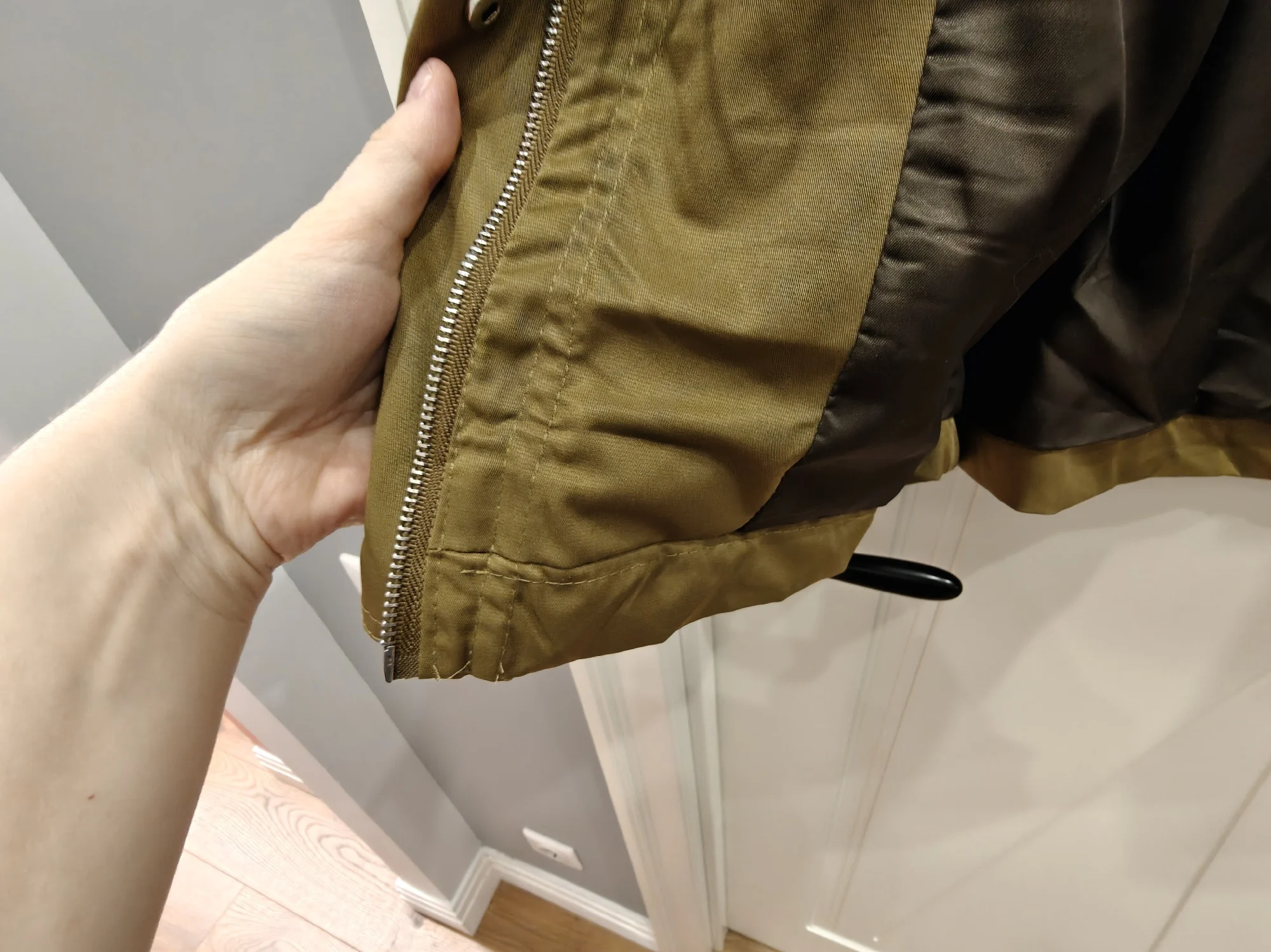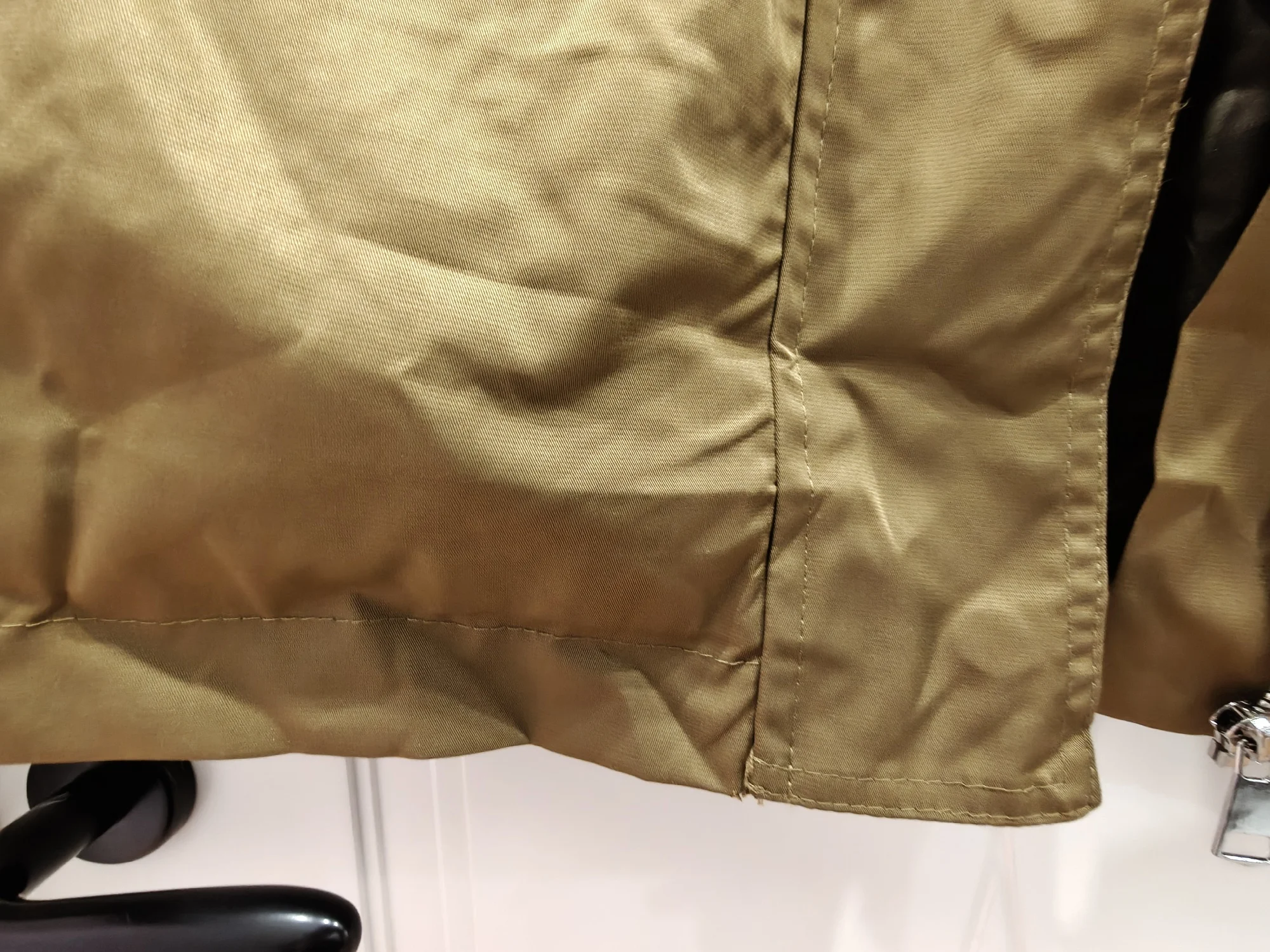 ужас ужасный. Куртка и 500₽ не стоит. строчки кривые, ткань тонкая и блестящая. ну и далее как в остальных отзывах. то что было в рекламе блогера - небо и земля. еще и пятна клея.