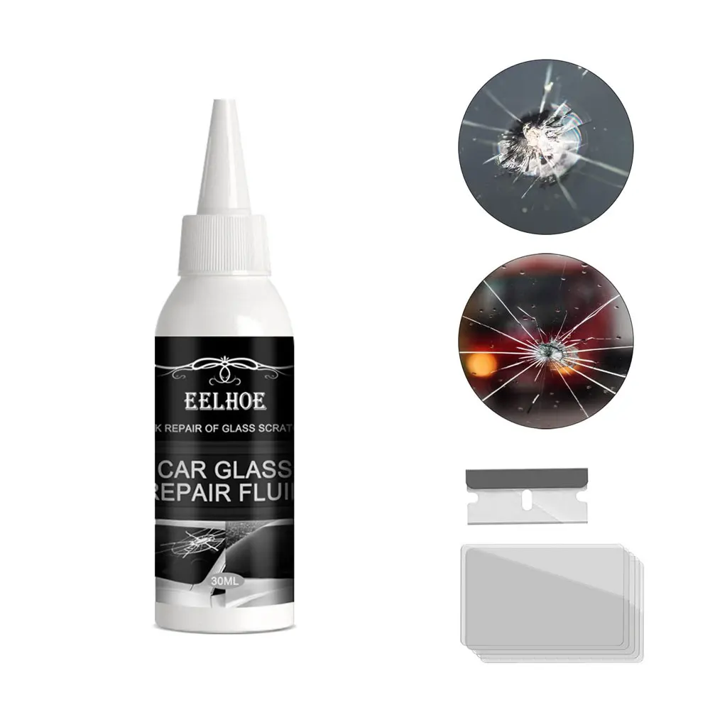 30 мл комплект для ремонта треснувшего стекла инструмент для ремонта треснувшего лобового стекла отверждения стекла клей посуда царапины трещины восстановление автомойкиОписание: