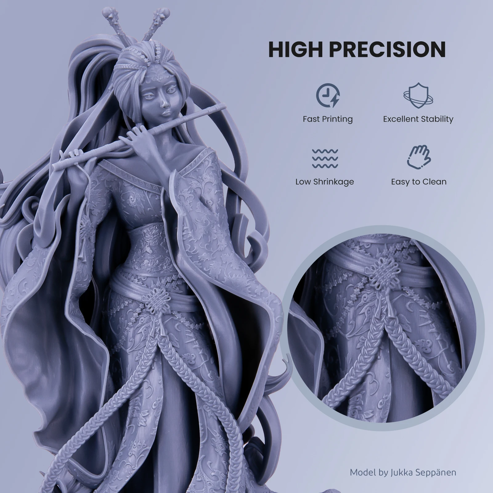 Low Shrinkage and High Precision ELEGOO photopolymer resin is specially designed for reducing volume shrinkage during the Photocuring process ,which ensures the high precision of the print model with smooth finish.