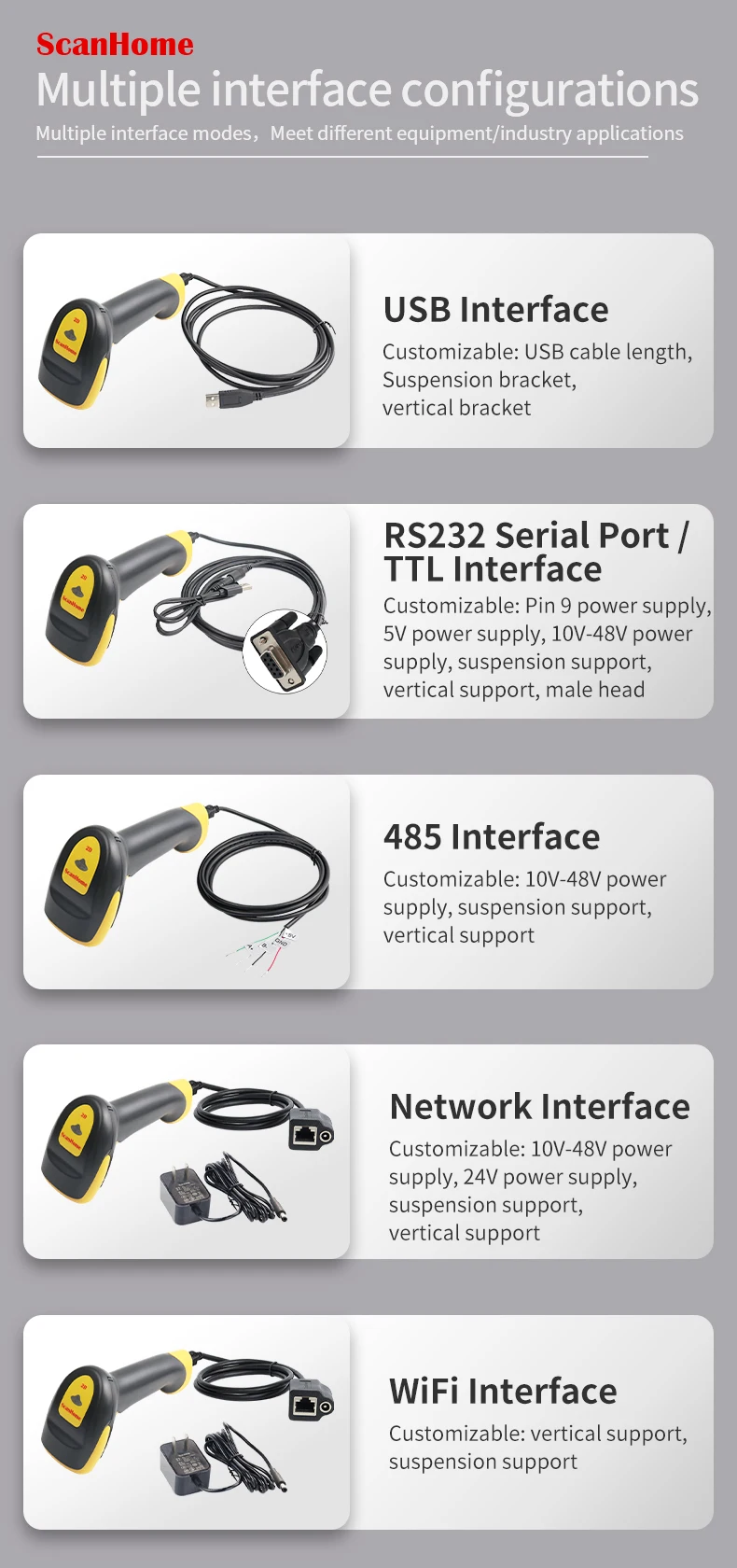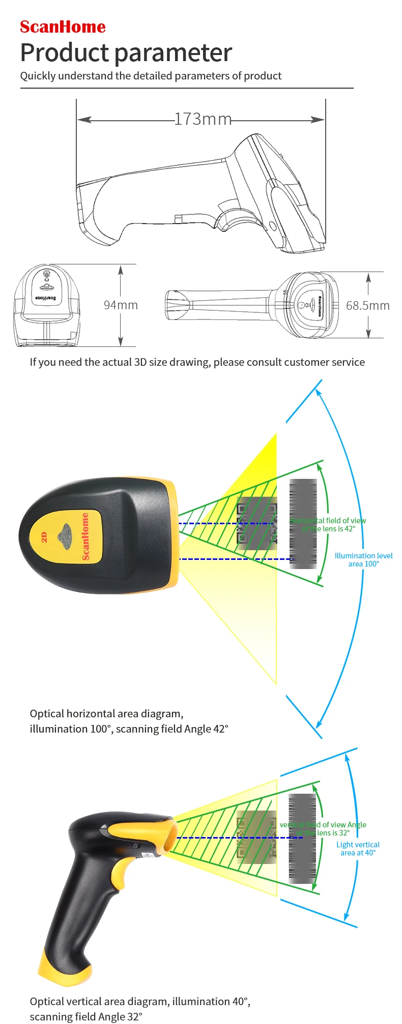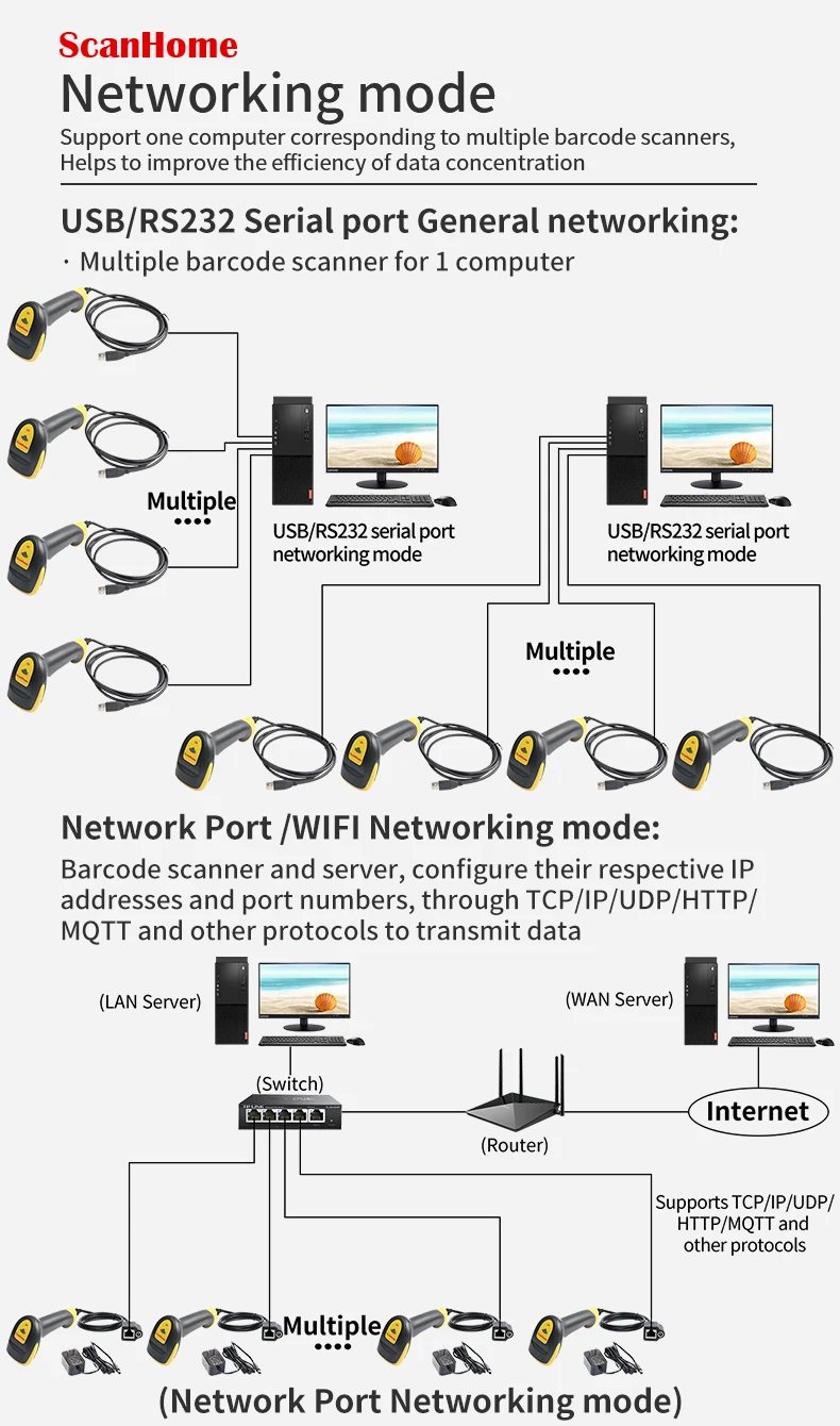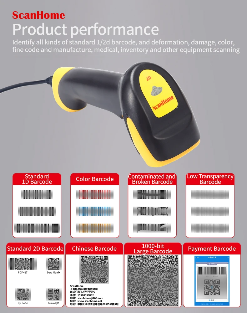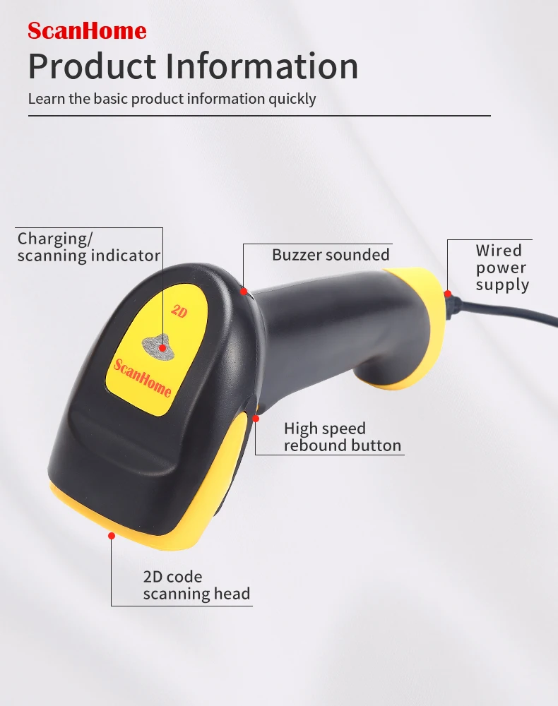 ScanHome BarCode Scanner USB / RS232 Handheld Barcode Scanner 1D / 2D QR PDF417...