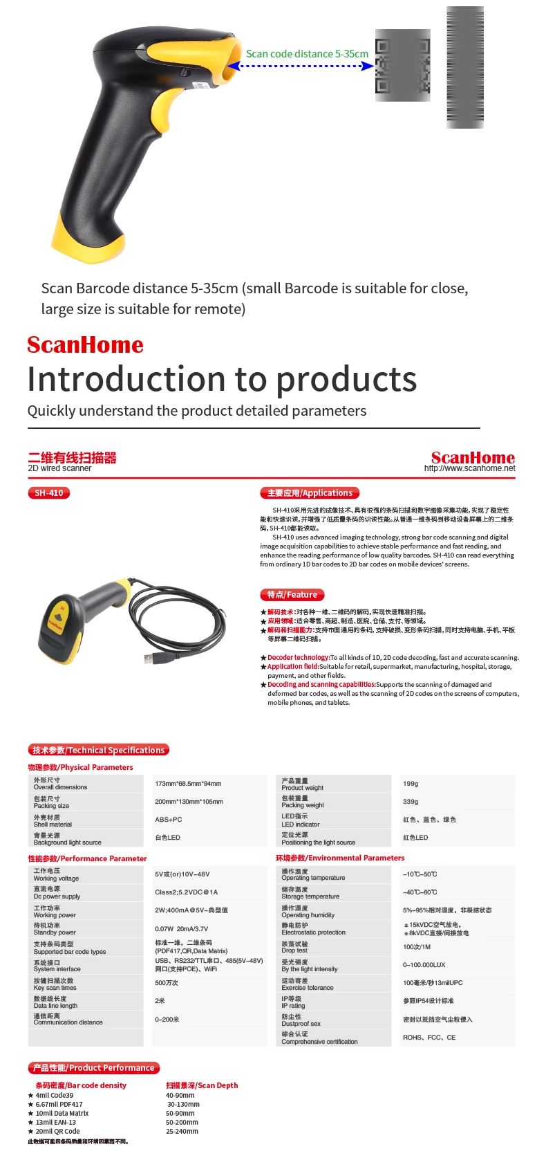 Портативный сканер штрих-кода ScanHome SH-410