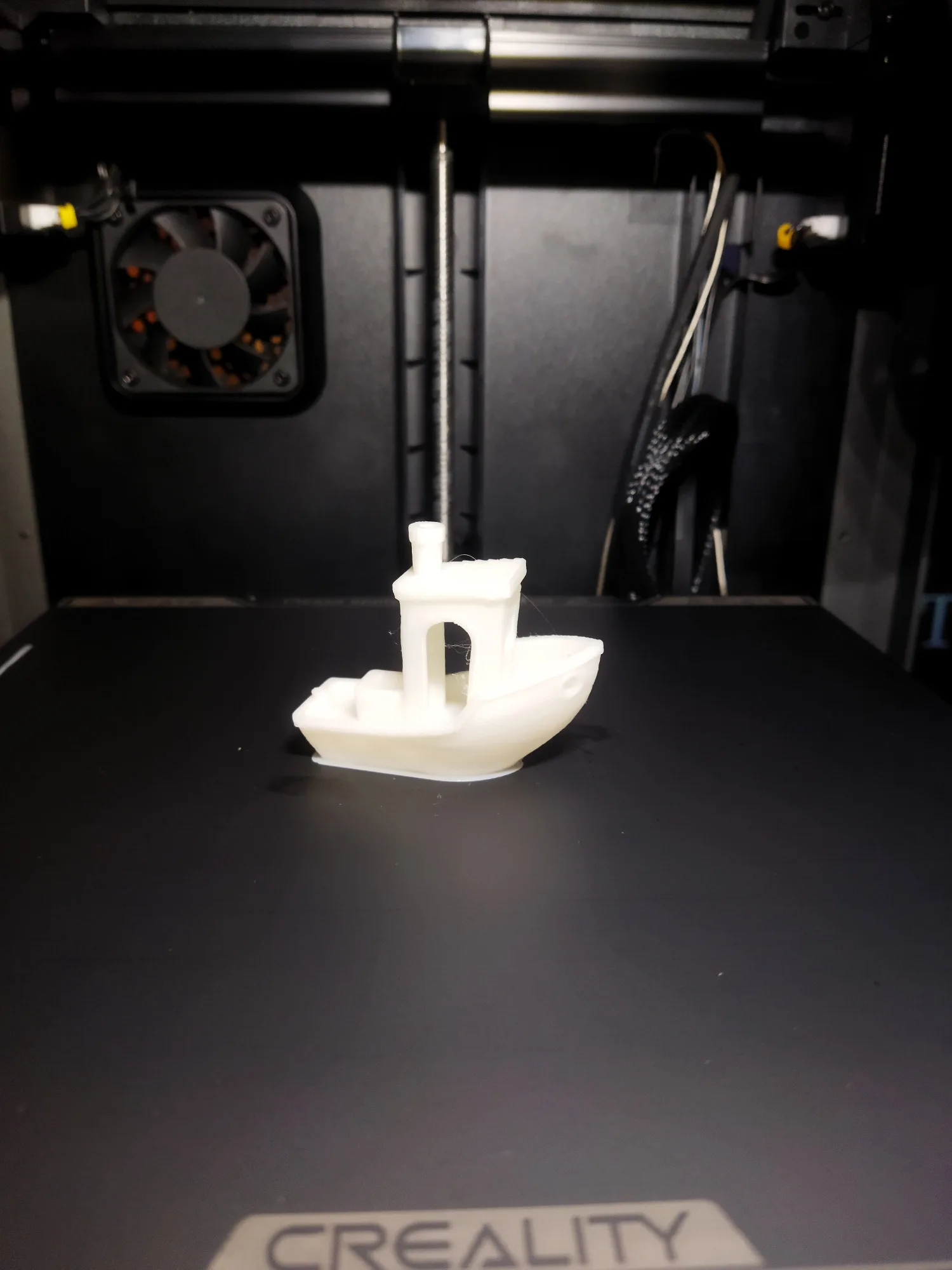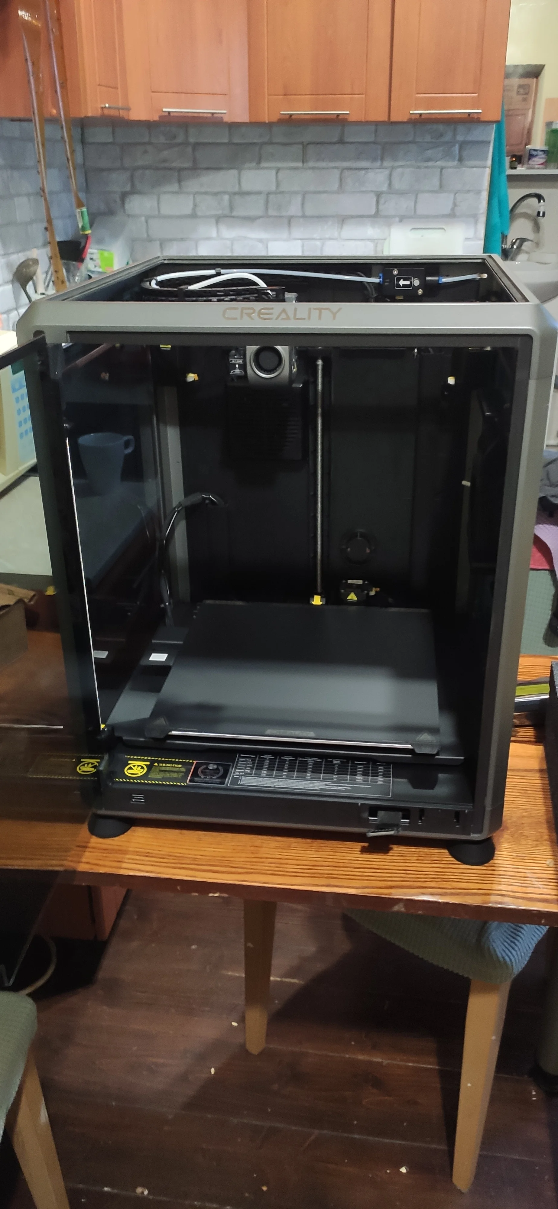 Принтер очень понравился. Напомнил технику DJI, когда получаешь ее в руки. Еще не успел испытать и настроить в полной мере, но первые впечатления как от инопланетного корабля, в сравнении с моими старыми принтерами. Кораблик бенчи напечатал за 16 минут, но из-за такой скорости он не идеальный. Допустим маленький kps3pro напечатал кораблик гораздо качественнее, но естественно медленней. Для него нужно крепкое основание. Стол у меня трясся от него знатно. Если этот принтер настроить и поставить скорость меньше, думаю все будет также хорошо как на kps3pro. Но тестовая модель скорее для показа его скорости, нежели качества печати. но для такой скорости достойно! Думаю для быстрой печати технических деталей будет очень полезен. Также хотел бы чтобы Klipper на него можно было ставить кастомный. Особо в эту тему не вникал, но как я понимаю тогда можно будет лучше его использовать и настраивать. С проблемой недоэкструзии еще не столкнулся, так как напечатал только тестовую модель с его памяти. Если что, разберу голову и поставлю перемычку на 2 болта. Но могли бы это пофиксить и с завода. С коробки принтер собранный, нужно открутить только транспортировочные винты стола и убрать все наклейки и пленку. Сборка вроде бы тоже качественная. Сам принтер выглядит достойно. Жду заказ, чтобы испытать его в полной мере. Заодно донастроить. Перед печатью принтер начал вторую калибровку, хотя я его при запуске откалибровал, если это проводится перед каждой печатью, то это долго. Но вроде это можно отключить. разберусь.