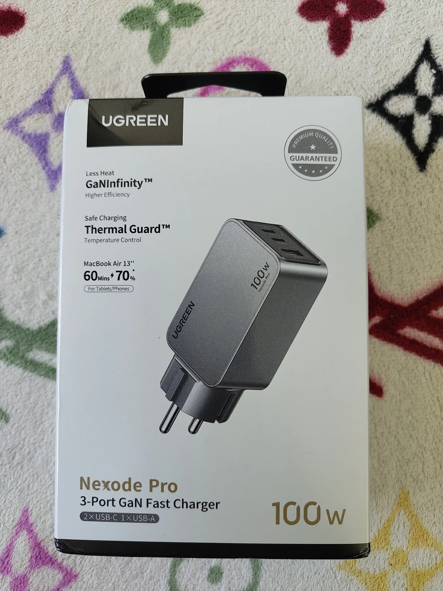 Зарядное устройство UGREEN 100W в KR-версии поставляется с европейской вилкой, оснащённой заземлением. Это обеспечивает более надёжную фиксацию в розетке по сравнению с EU-версией, особенно при горизонтальном расположении розетки (учитывая то, что зарядка из-за металлического корпуса достаточно тяжёлая для своего размера). Заземление также снижает вероятность статического напряжения, что убирает недостаток с частично работающим тачпадом при зарядке от устройств без заземления и снижение риска получить разряд при прикосновении к металлическому корпусу ноутбука (если он не из пластика). Производительность Зарядка справляется с питанием ноутбука Lenovo Xiaoxin 14 Pro 2024 (Ryzen 7 8845H) даже при нагрузке, заменяя штатное устройство. Также она заряжает повербанк Ugreen Nexode 200W 25Ah (90 Втч) на мощности около 65 Вт, что соответствует максимуму для этого повербанка. Поддерживаемые и неподдерживаемые протоколы Поддерживает: - PD3.0 - QC4.0+ и QC3.0 - PPS - SCP (Huawei) - AFC (Samsung) - BC1.2 Не поддерживает: - VOOC/Dash Charge (Oppo, Realme, OnePlus) - Dart Charge (Смартфон Vivo) - Xiaomi Fast Charge Это делает зарядку совместимой с большинством современных устройств, но для смартфонов с проприетарными технологиями скорость зарядки будет ограничена стандартными значениями, с зарядкой Nothing Phone (2) по PPS справляется отлично. Для уменьшения нагрева можно установить алюминиевые радиаторы (например, 28*28*11 мм) с термоскотчем. Это необязательно для повседневного использования, но (крайне рекомендуется и) может быть полезно при длительных высоких нагрузках (к примеру в играх). Цена на момент покупки составила около ~2667 ₽, доставка заняла 11 дней до Москвы.