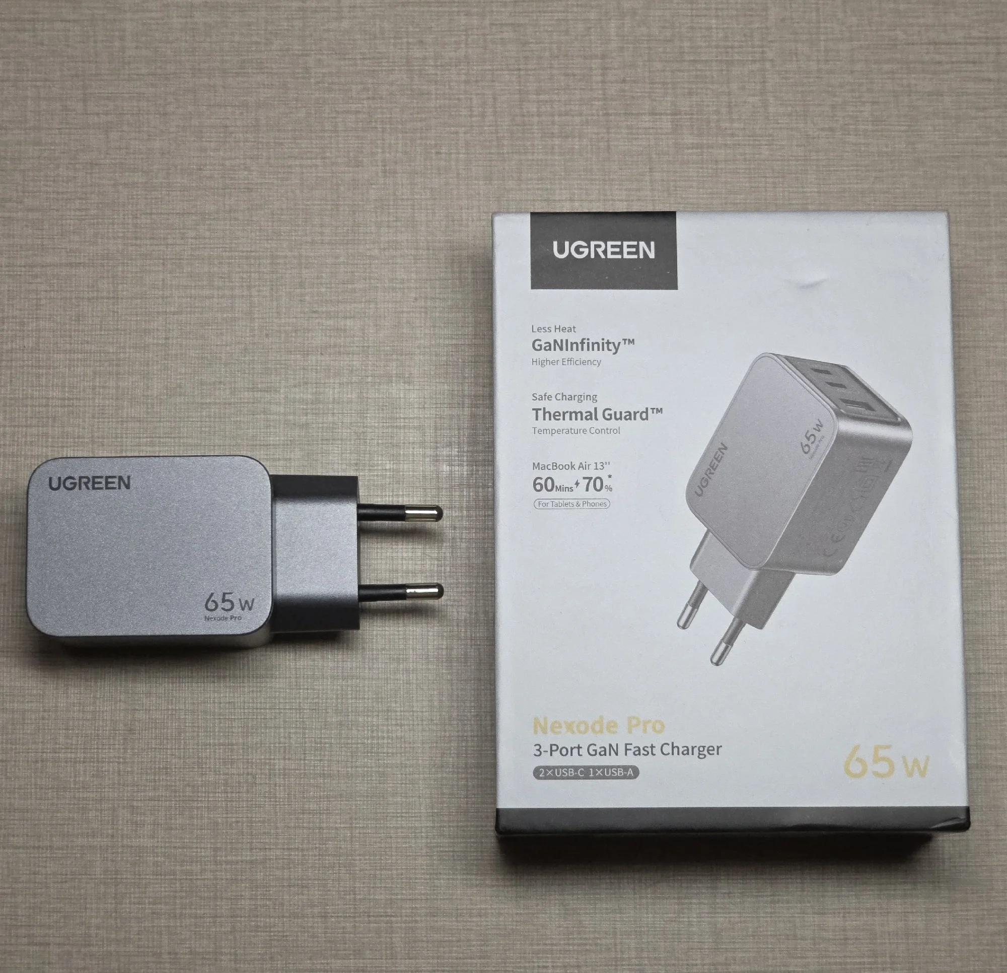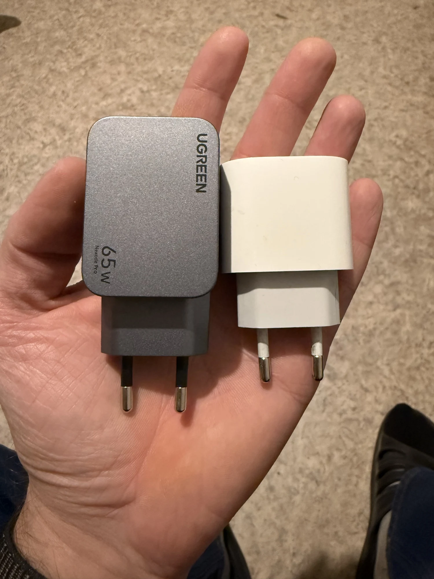 Очень компактный зарядник на 65ват Для сравнения фото с фирменной зарядкой Appel Всё работает, всё гуд👍