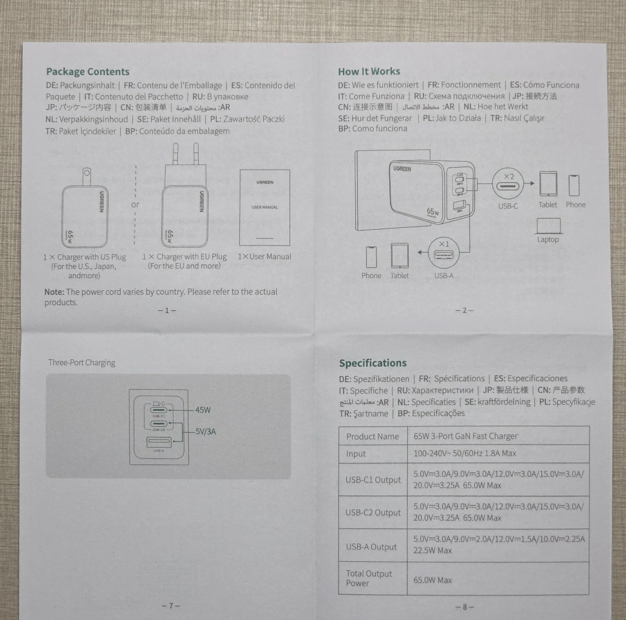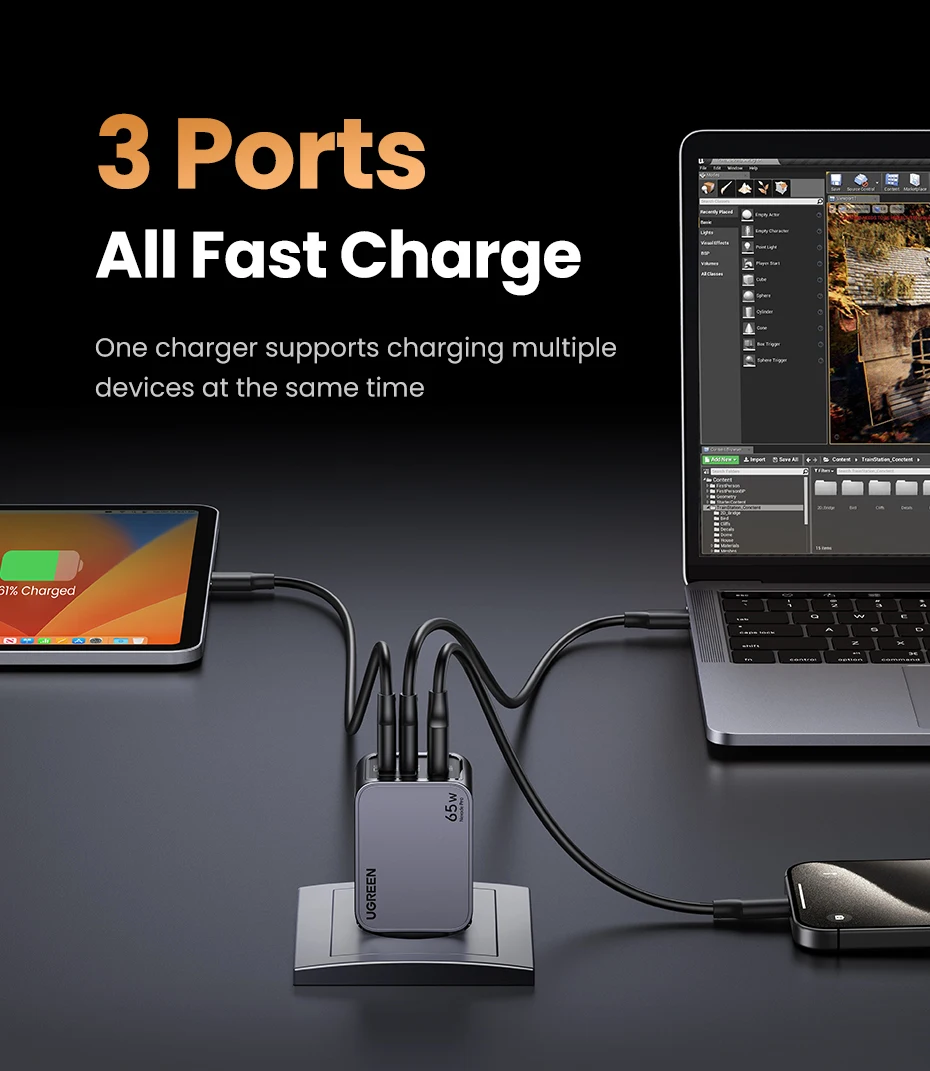 UGREEN 65W GaN Charger Type C Quick Charge 4.0 3.0 USB Charger For iPhone 15 14...