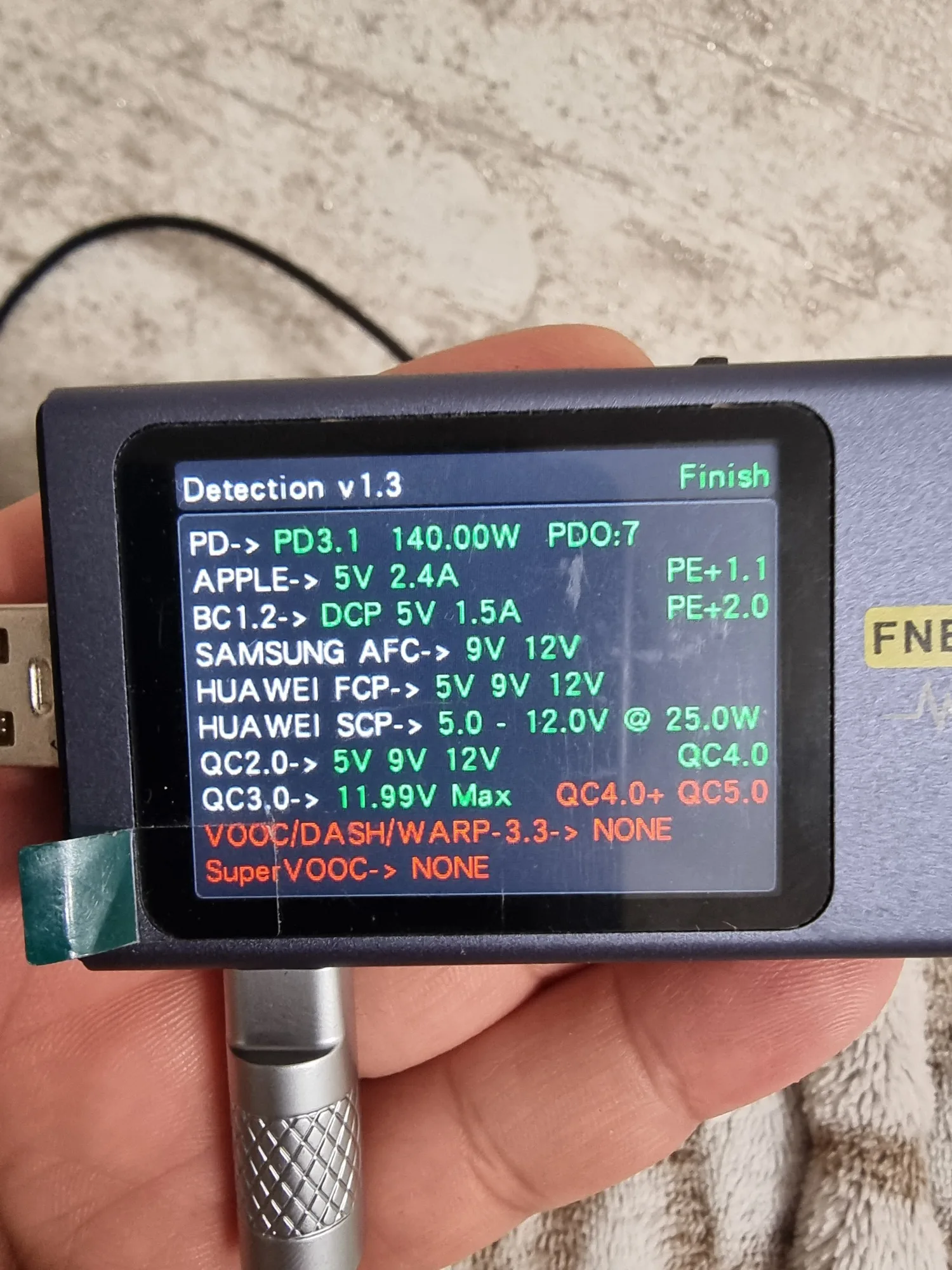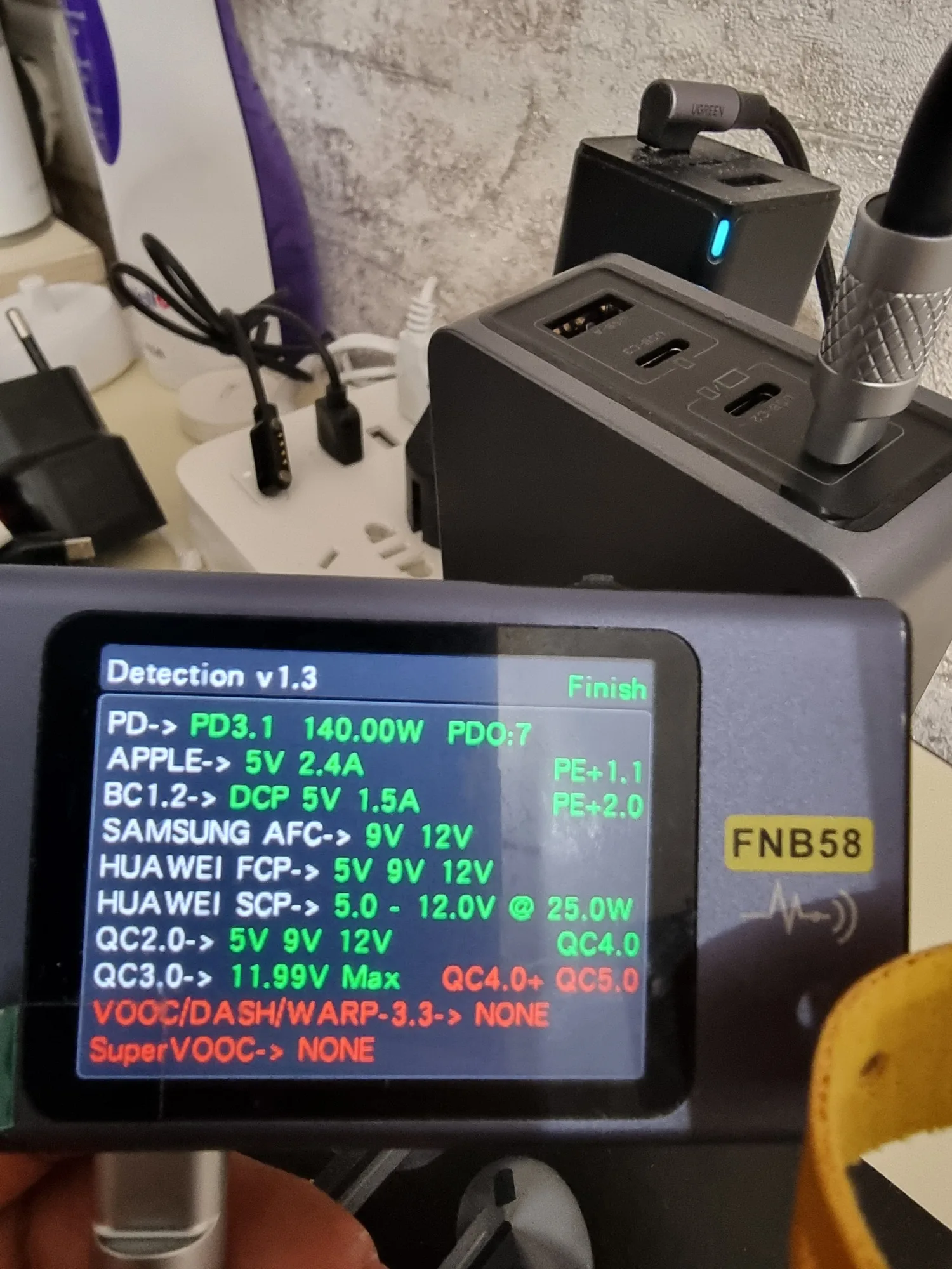 Достоинства: 1) Много протоколов зарядки. 2) Большое количество портов для зарядки. 3) Компактные габариты. Недостатки: 1) Перезагрузка гнезд при подключении или отключении устройств. Комментарий: Отличный зарядник, спасибо производителю! Нагрев корпуса при зарядке 65w до 45 градусов Цельсия. (более мощных устройств, к сожалению, нет) USB-C1 поддерживает PD до 140Вт (PPS 3.3-21V, 5A; EPR 28V, 5A), UFCS 63w, TFCP 136.5w; USB-C2 поддерживает PD до 100w(PPS 3.3-21V, 5A); USB-C3 поддерживает PD до 30w (PPS 3.3-11V, 2.75A). Протоколы поддерживаемые на всех портах QC2,3, FCP 24w, SCP 22w, AFC 24w, SFCP, MTK PE+, PE+ 2.0, DCP SAM 2A, Apple 2.4ASergey u. 31 марта 2025