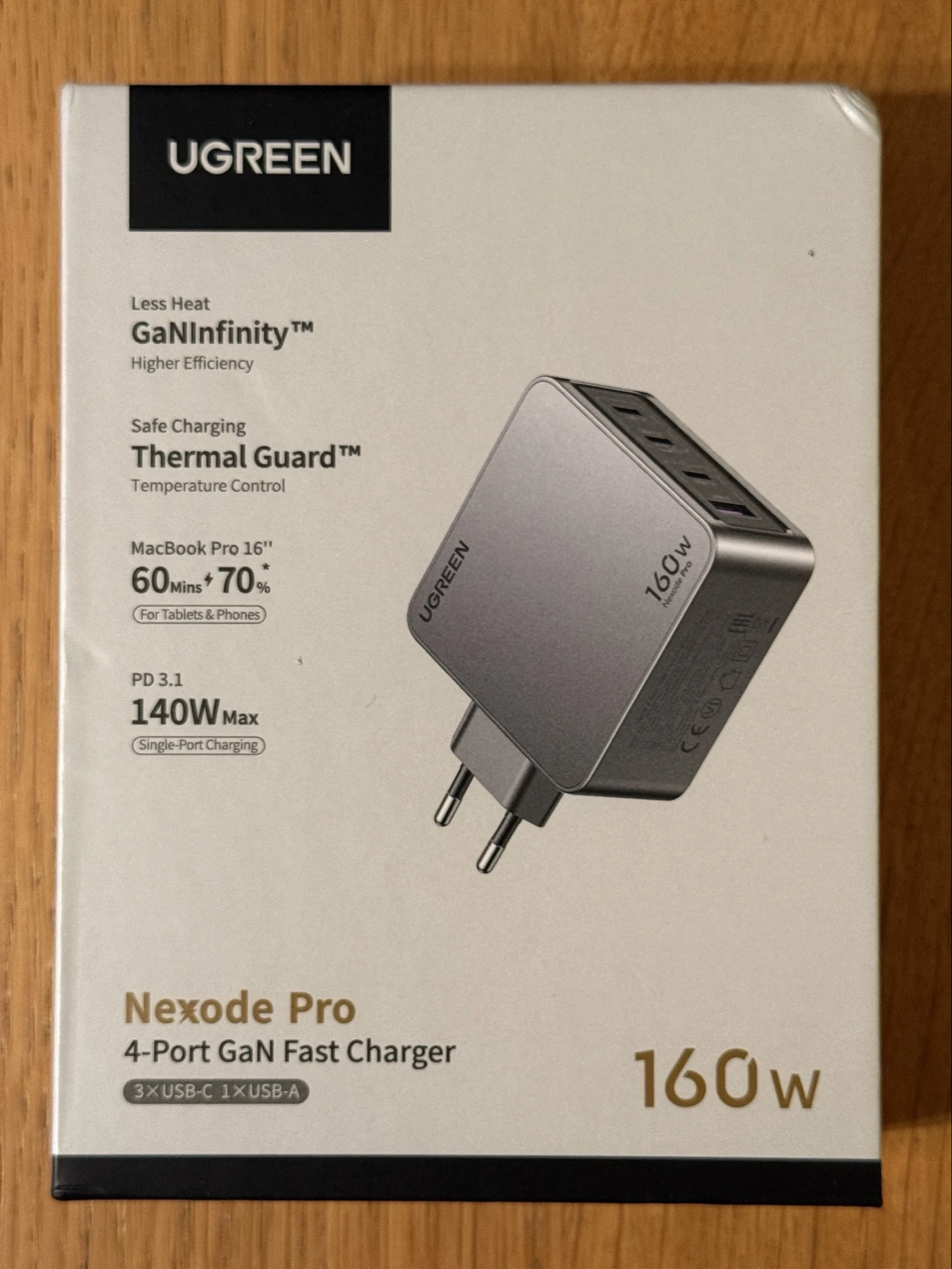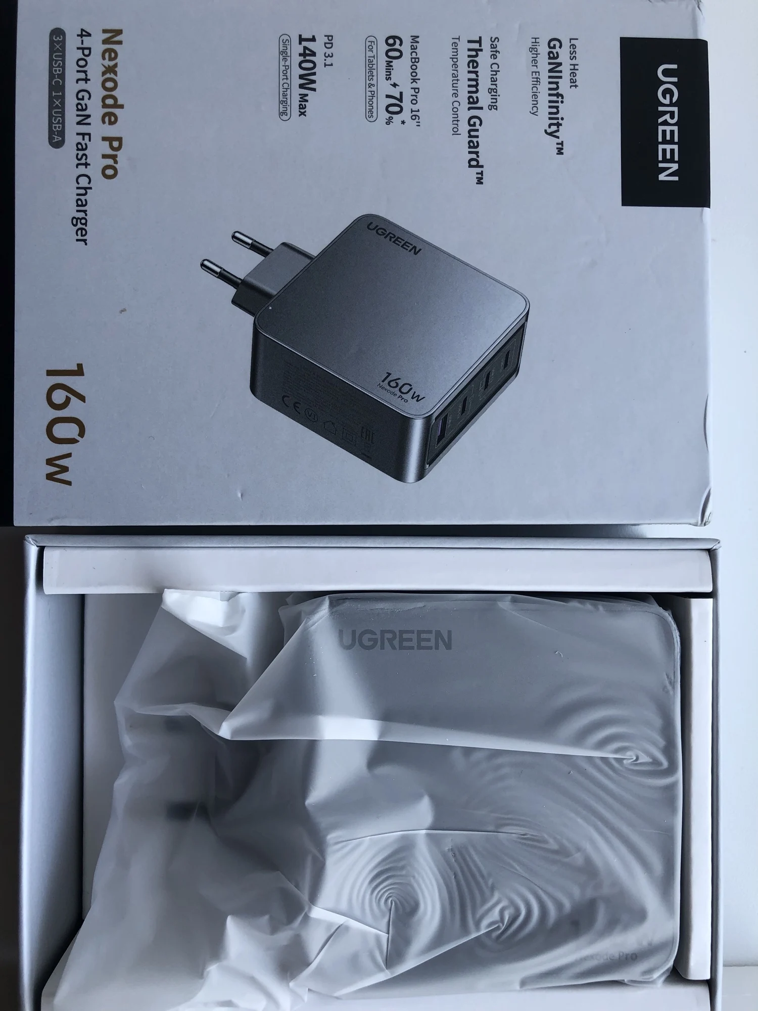 Зарядное устройство Ugreen 160W PRO выполнено очень качественно, чувствуется добротная сборка и вес. Работает отлично, полностью соответствует заявленным характеристикам. Однако доставка и упаковка оставляют желать лучшего – коробка пришла помятой и порванной. Если бы это был подарок, вручить его в таком виде было бы невозможно. Сам товар определенно рекомендую, но продавцу стоит пересмотреть подход к упаковке и доставке. Товар хороший, но вот доставка ужасная пожтому снизил оценку.