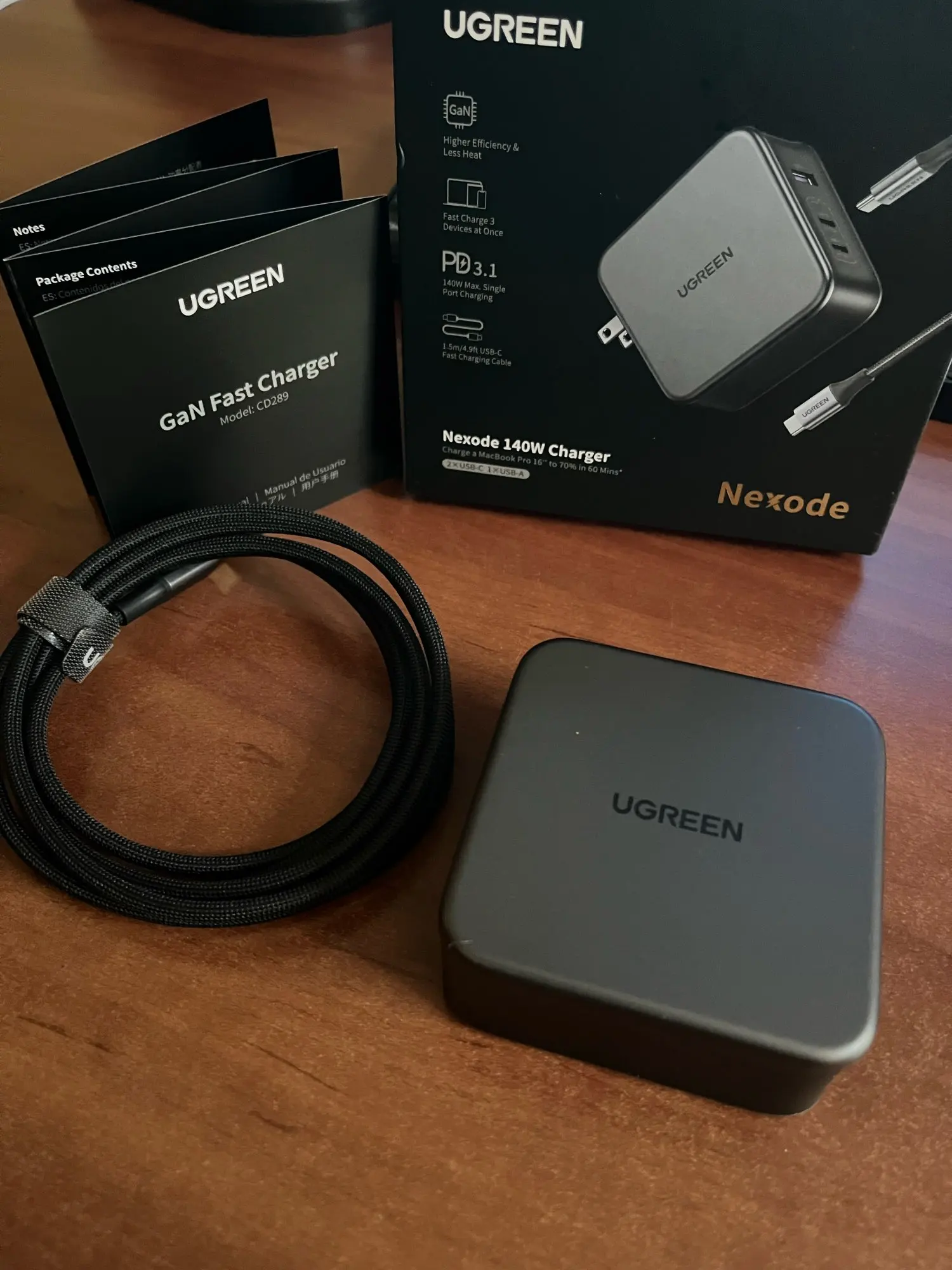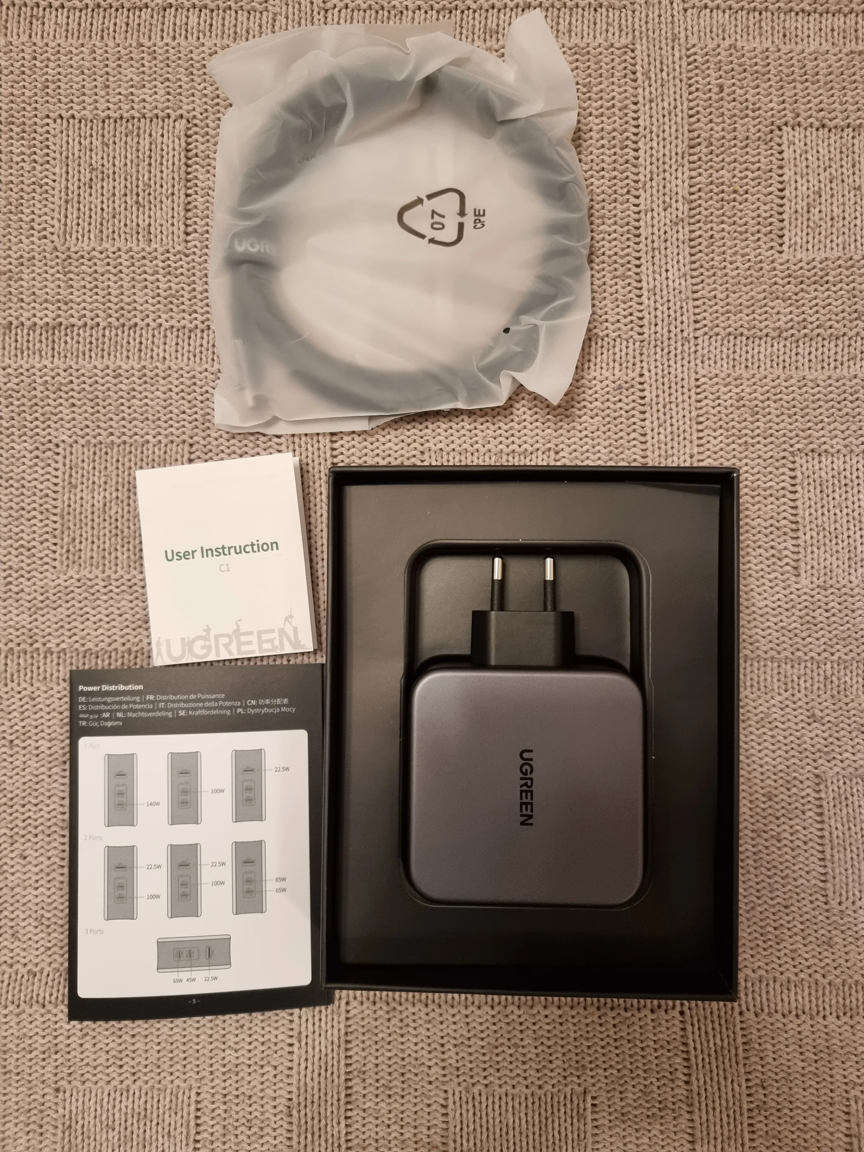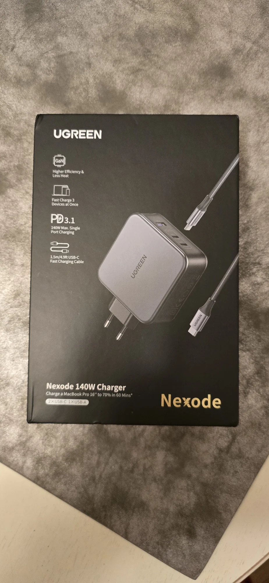 Доставка заняла 21 день до Брянска, а потом курьером до дверей !!!! Ugreen делает отличные и качественные товары. Выглядит красиво, выполнен в фирменных цветах. Коробка очень качественная, как от смартфона. В комплекте идёт отличный фирменный кабелем USB-C - USB-C 240W на 1.5м. Отличный, стильный, холодный, мощный блок питания UGREEN GaN 140W с поддержкой PD3.1 !!!