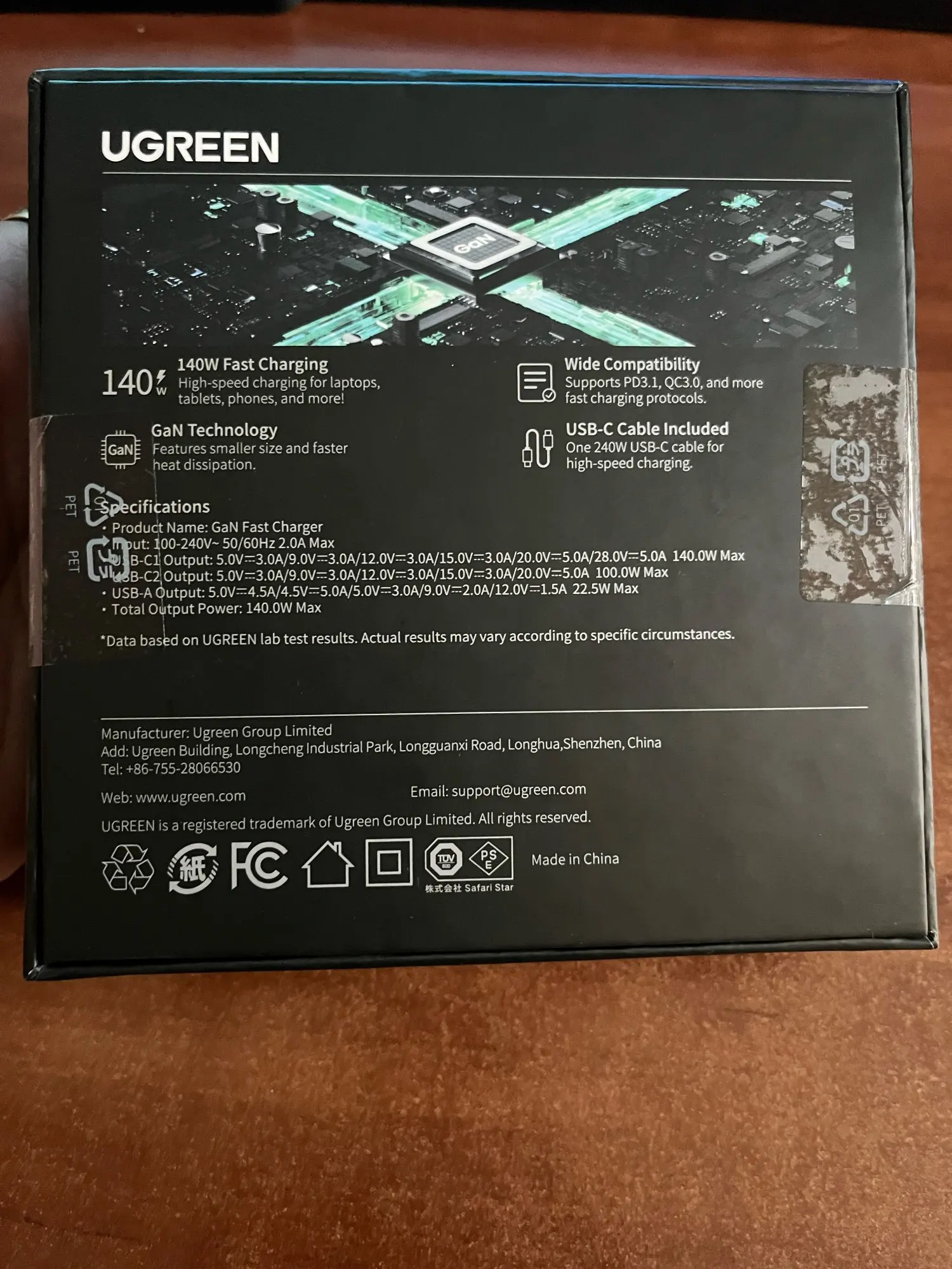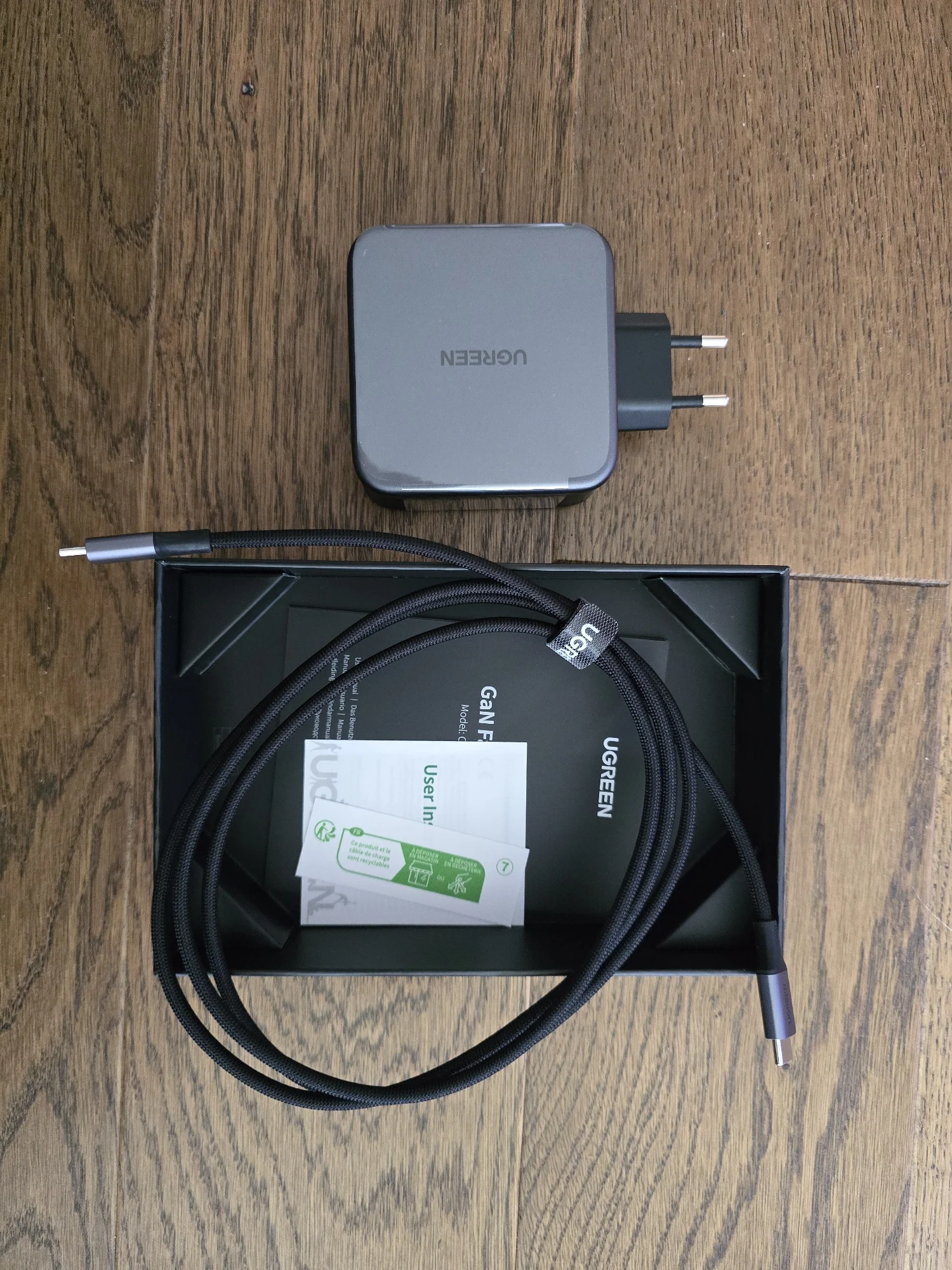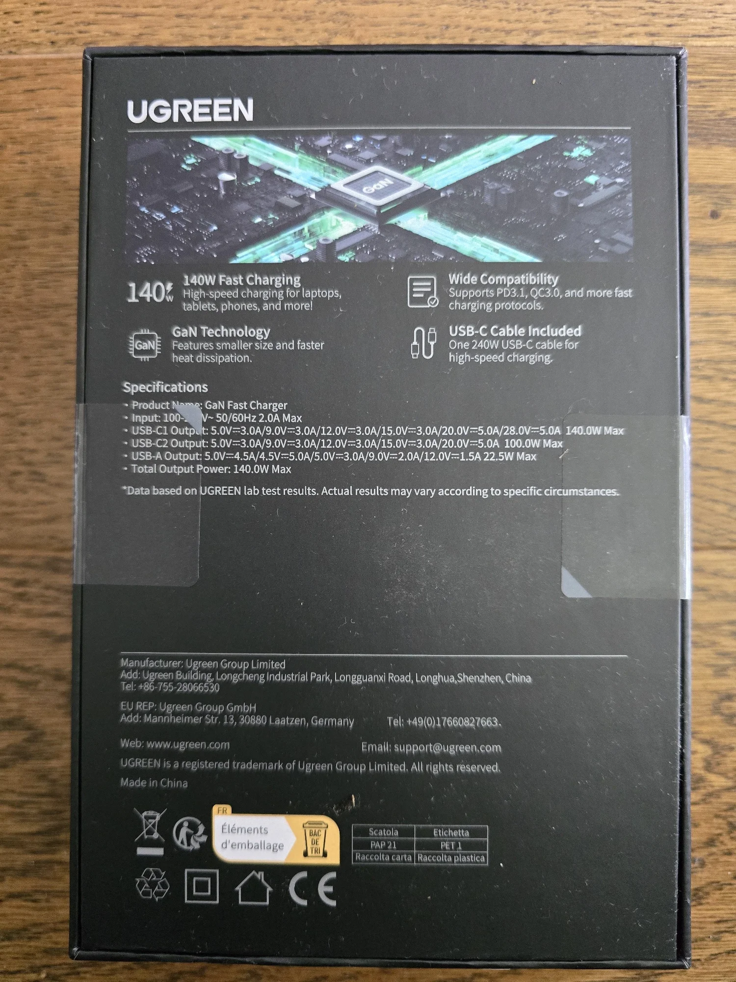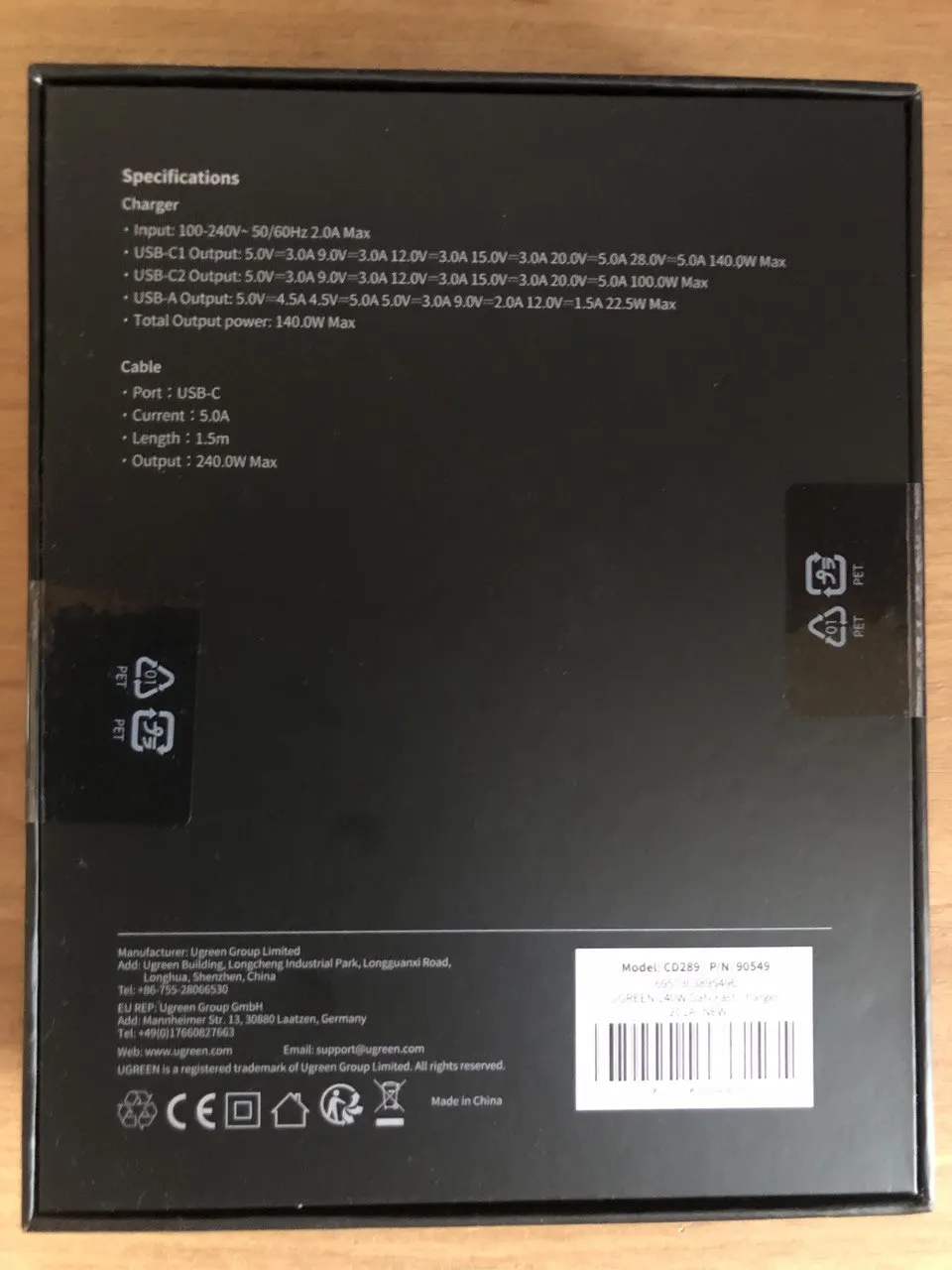 Доставка заняла 21 день до Брянска, а потом курьером до дверей !!!! Ugreen делает отличные и качественные товары. Выглядит красиво, выполнен в фирменных цветах. Коробка очень качественная, как от смартфона. В комплекте идёт отличный фирменный кабелем USB-C - USB-C 240W на 1.5м. Отличный, стильный, холодный, мощный блок питания UGREEN GaN 140W с поддержкой PD3.1 !!!