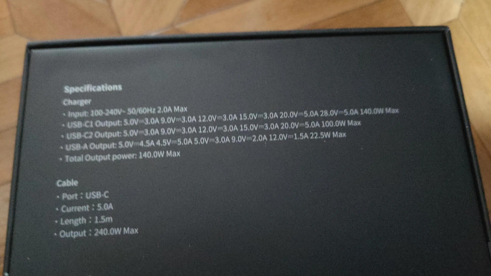 - USB-C 1 output:5V3A ,9V3A ,12V3A,15V3A,20V5A 28V5A 140W Max