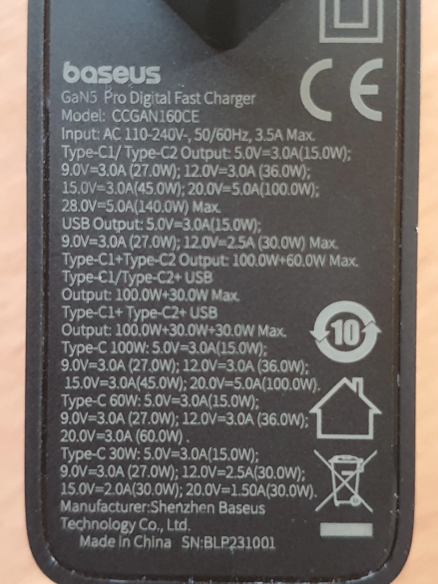 - Product:Baseus GaN5 Pro Fast Charger 2C+U 160W