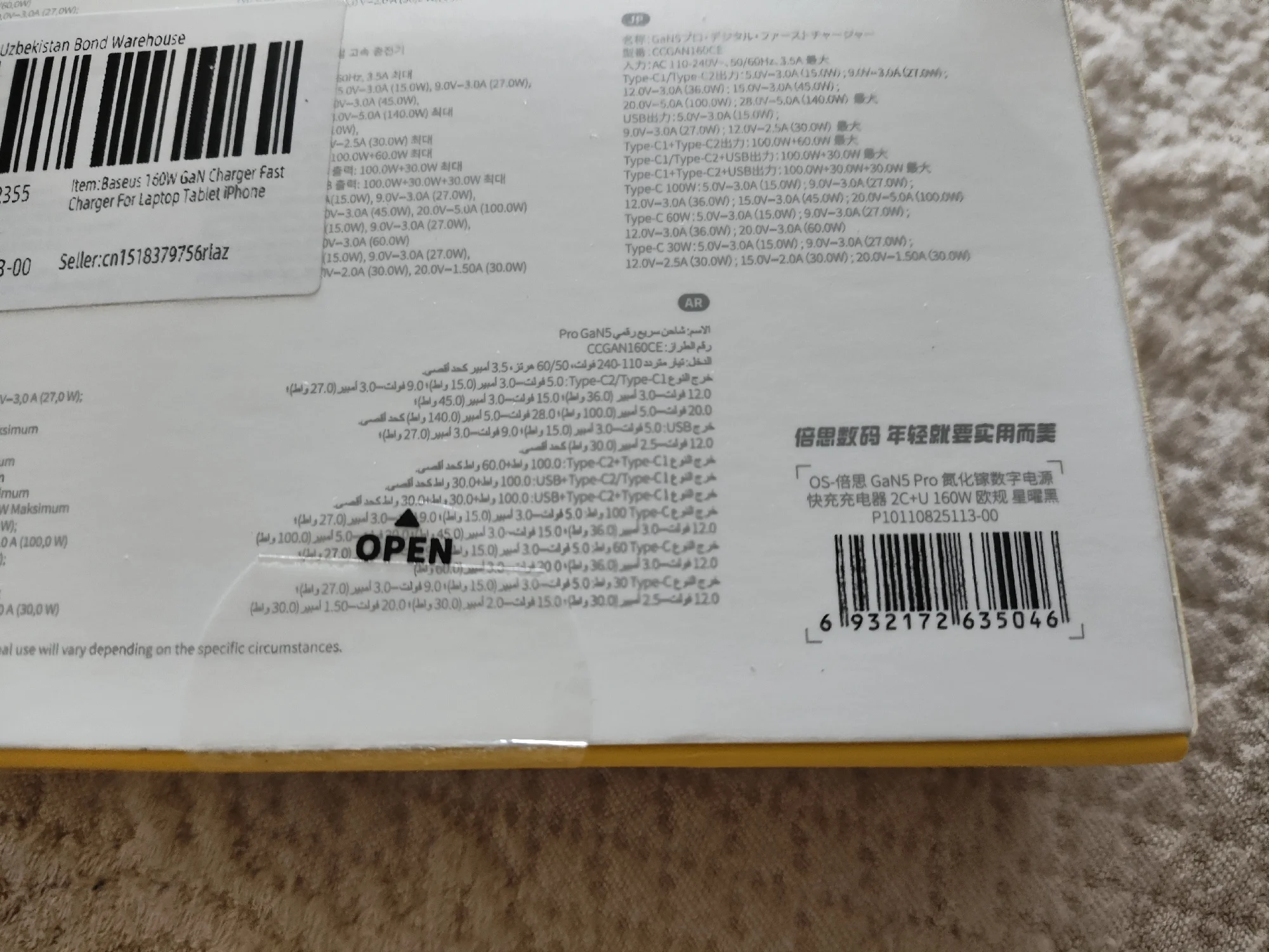В Казахстан/Астана заказ пришёл за 17 дней. Блок питания увесистый, почти 400 грамм. Фирменный PowerBank заряжает шустро, 65w выдаёт. Так же с лёгкостью потянул Lenovo Legion 5 Pro 2022. Ноутбук очень капризный к питанию от PD, но блок с лёгкостью потянул его не смотря на активную дискретную графику, WallpaperEngine, максимальную яркость и герцовку. К примеру PowerBank Baseus 100w мог заряжать ноутбук только в полностью экономичном режиме, или только выключенным. Так же есть протоколы зарядки Samsung до 45w. Блок питания точно стоит своих денег, особенно если нужно заряжать одновременно несколько устройств, при этом с быстрой зарядкой. Рекомендую! ( позже дополню отзыв по мере опыта эксплуатации )