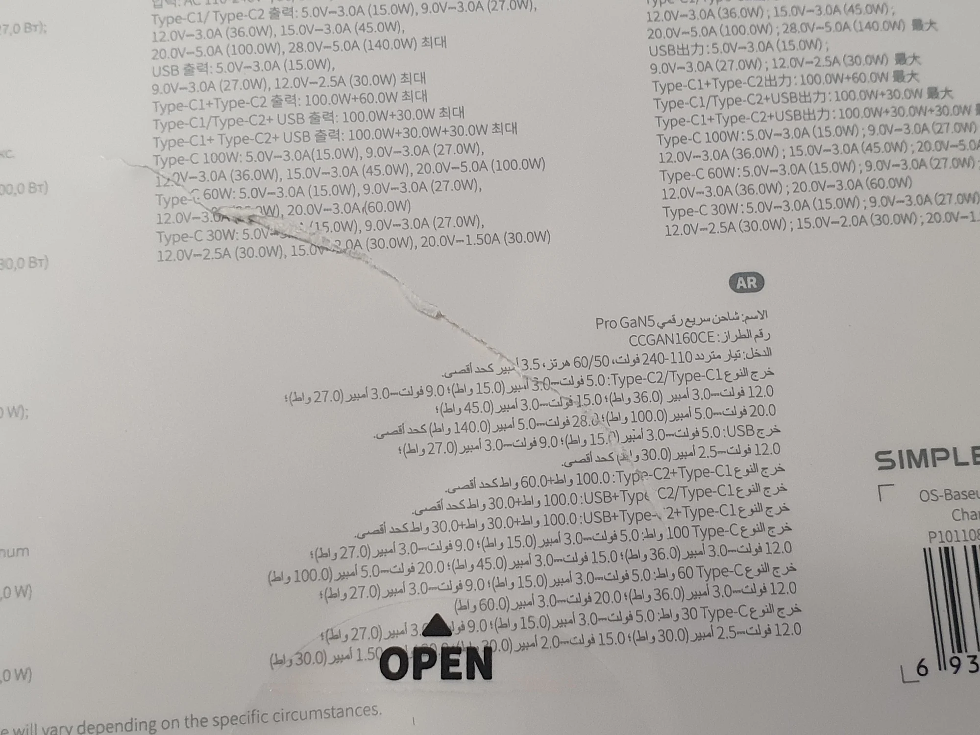 - Output(Type-C1/Type-C2+USB):100W+30W