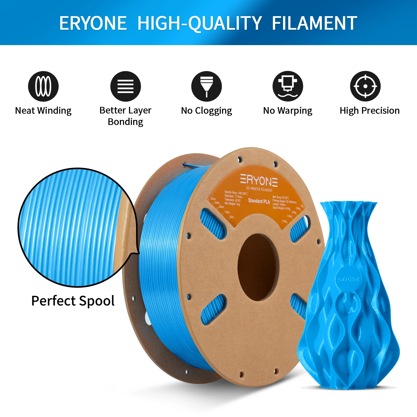 Стандартная PLA-нить ERYONE 1 кг 1,75 мм Высококачественная нить 3D PLA Расходные материалы с низкой усадкой для 3D-принтера
