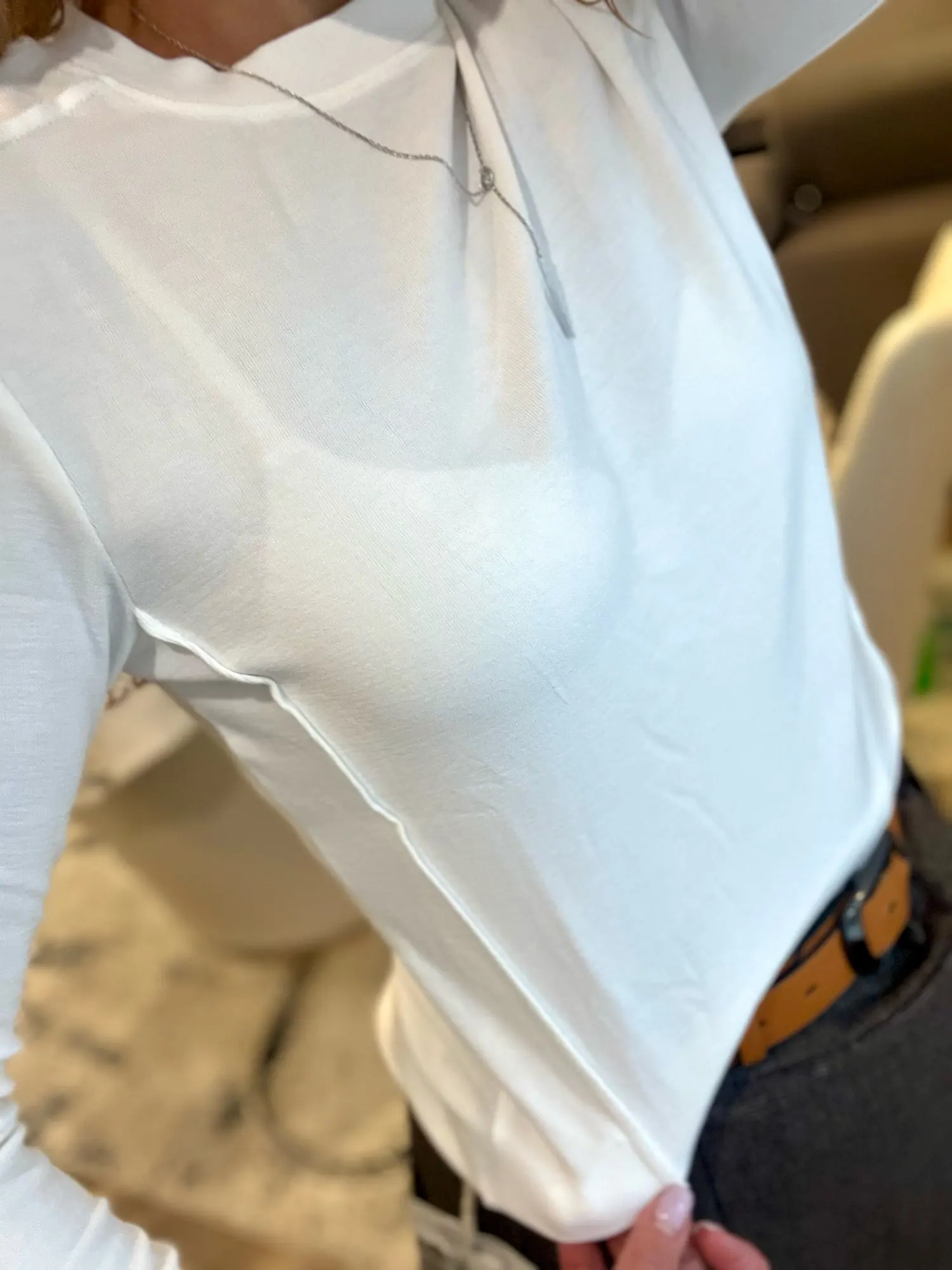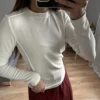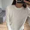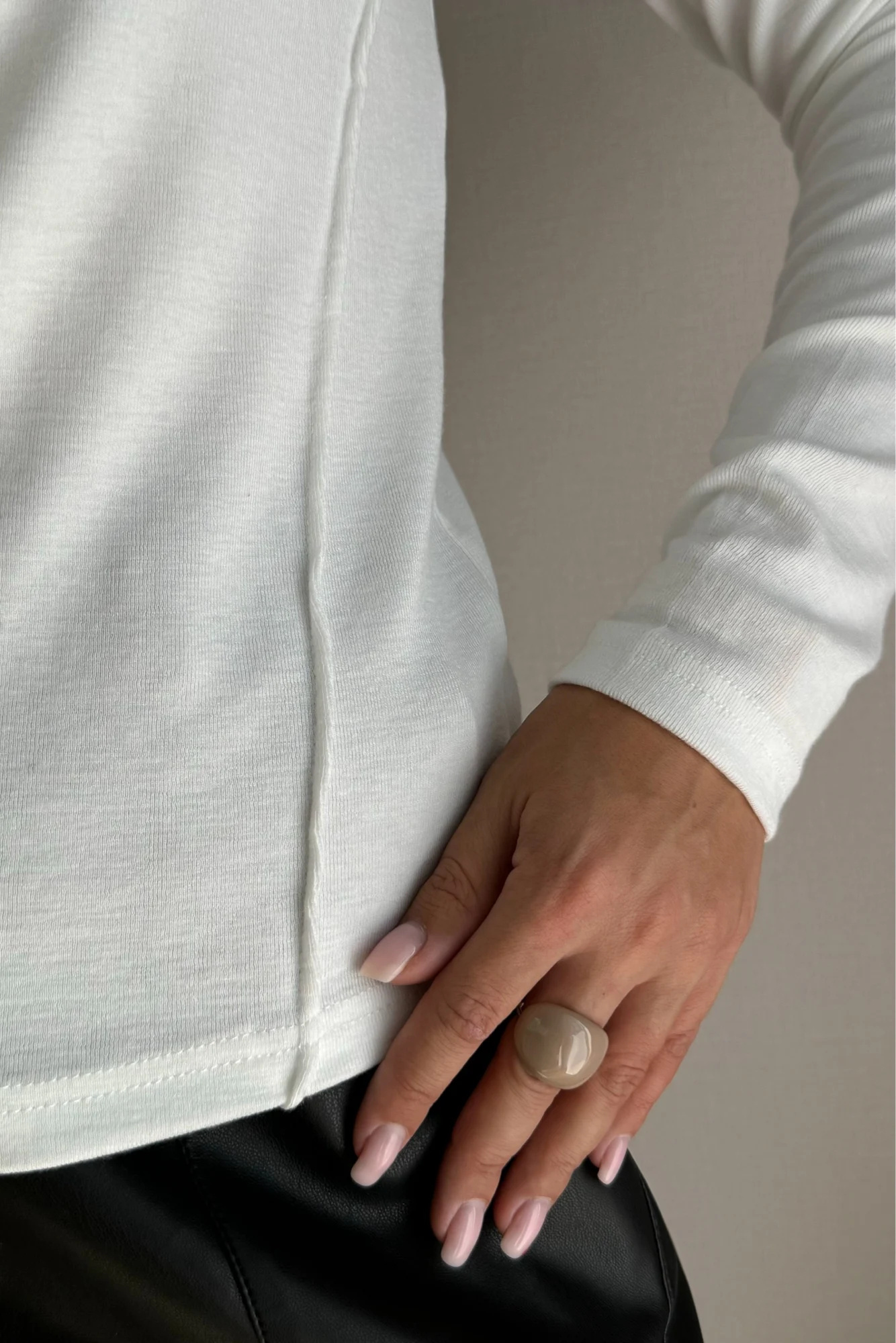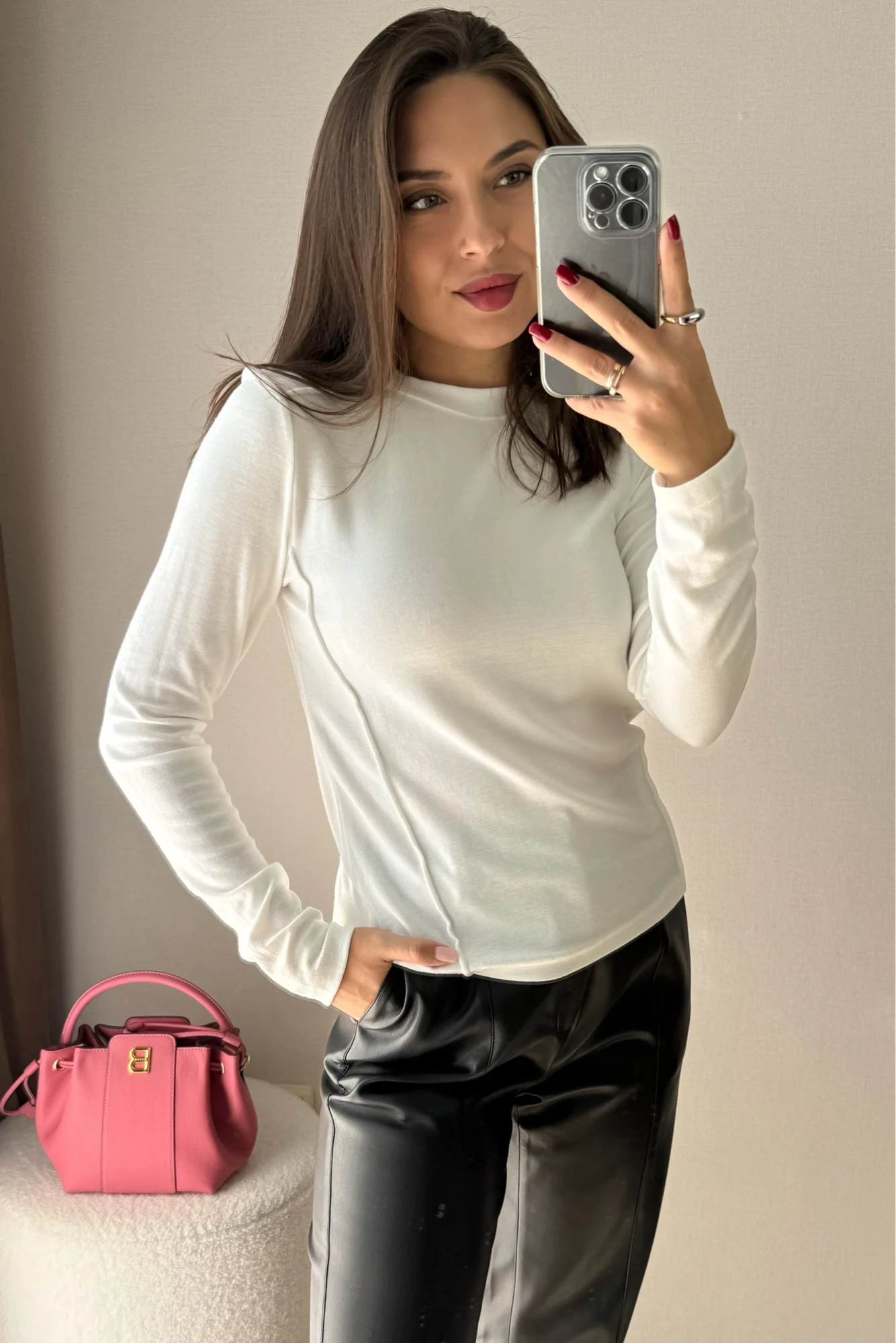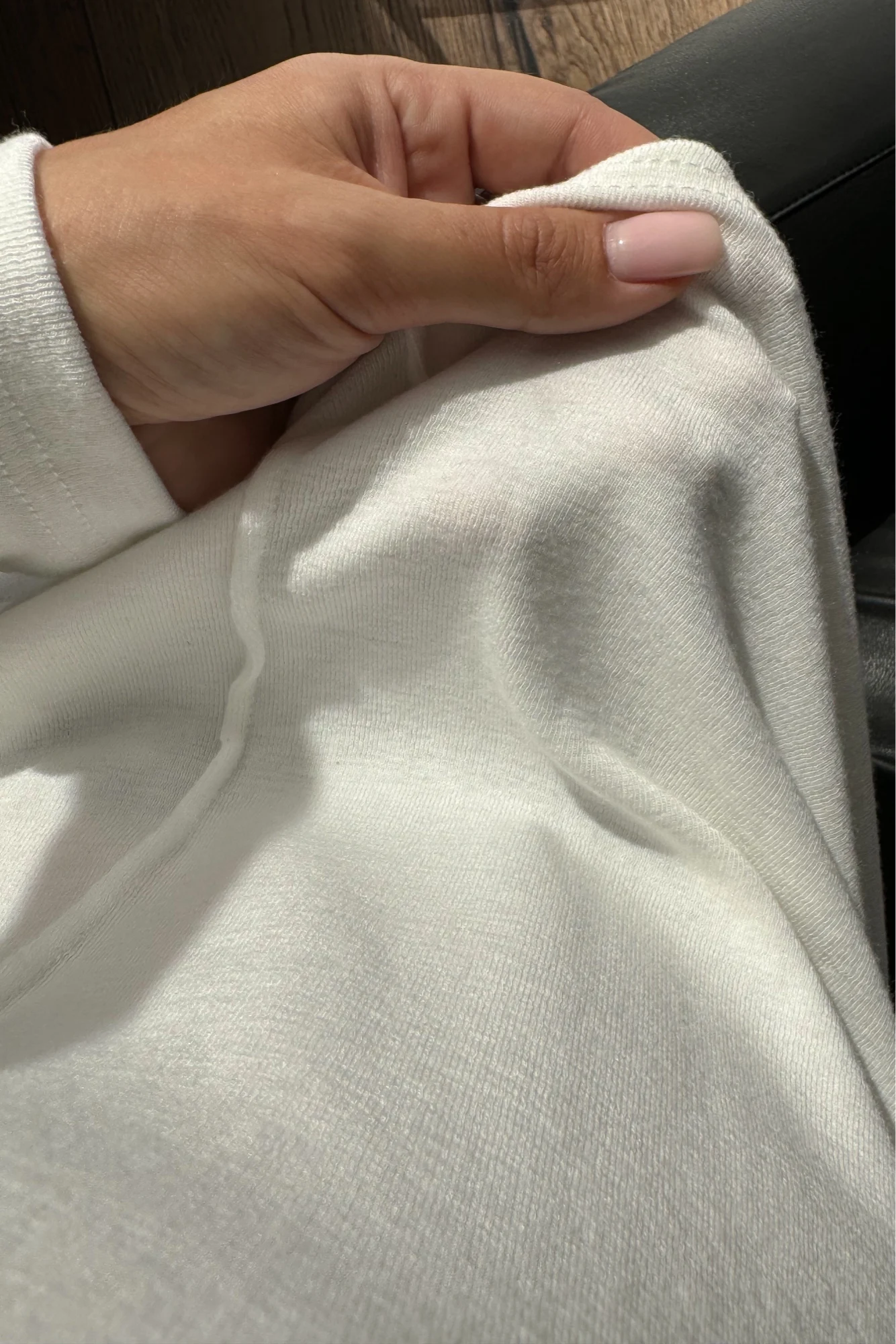 Мои параметры 86/66/89 см, грудь 75С и рост 160 см. Выбрала в размере М в цвете Cream White. Тактильно материал очень нежный и приятный, тоненький, легкий, с телесным бельем не светит. Хорошая длина рукавов и самого лонгслива. Спереди расположены декоративные наружные швы. Прекрасное качество пошива. Очень понравился!