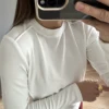 Slim Fit Striped Pit Solid Basic Tops Round Neck Long Sleeved T-shirt Women's...