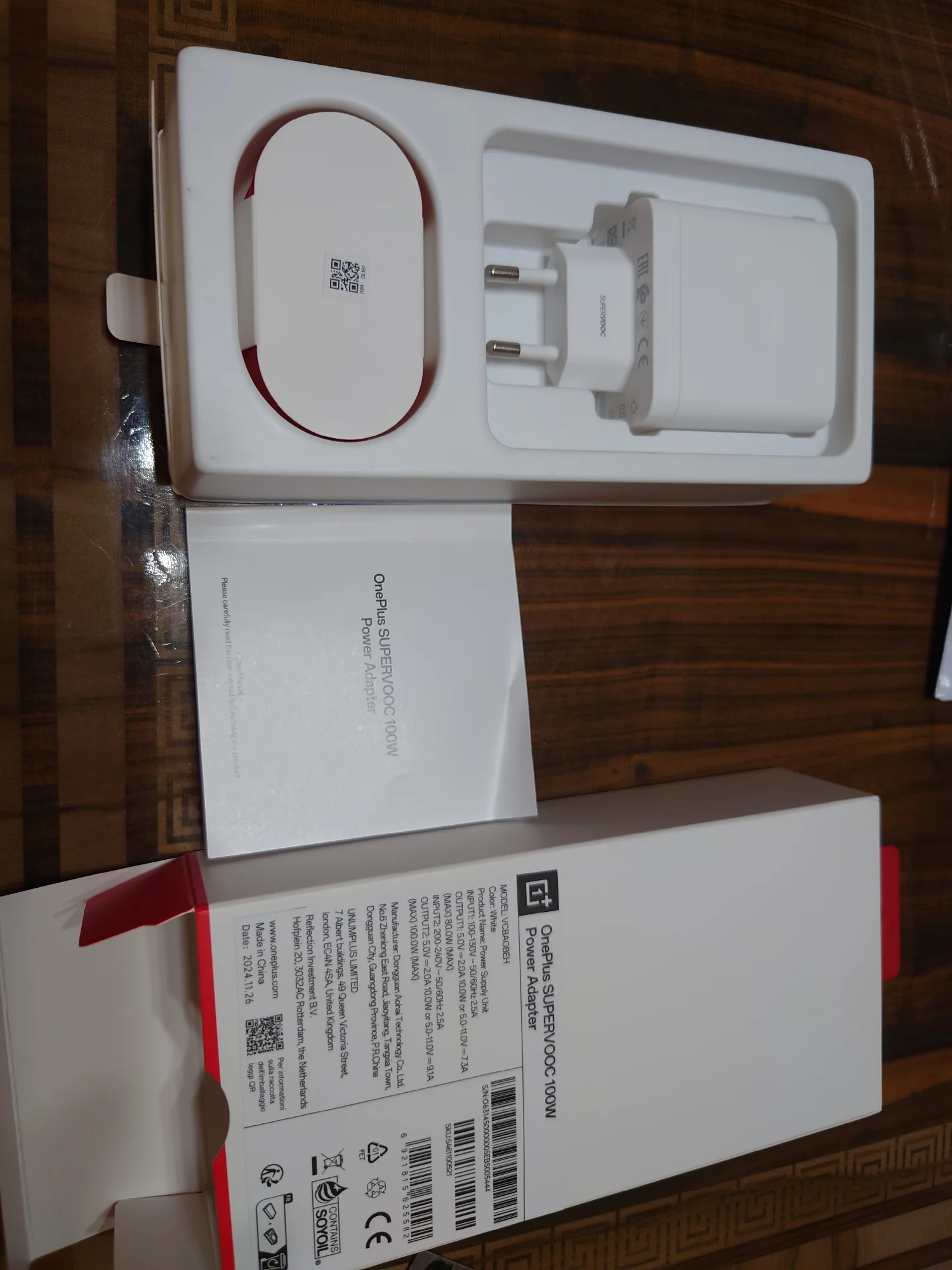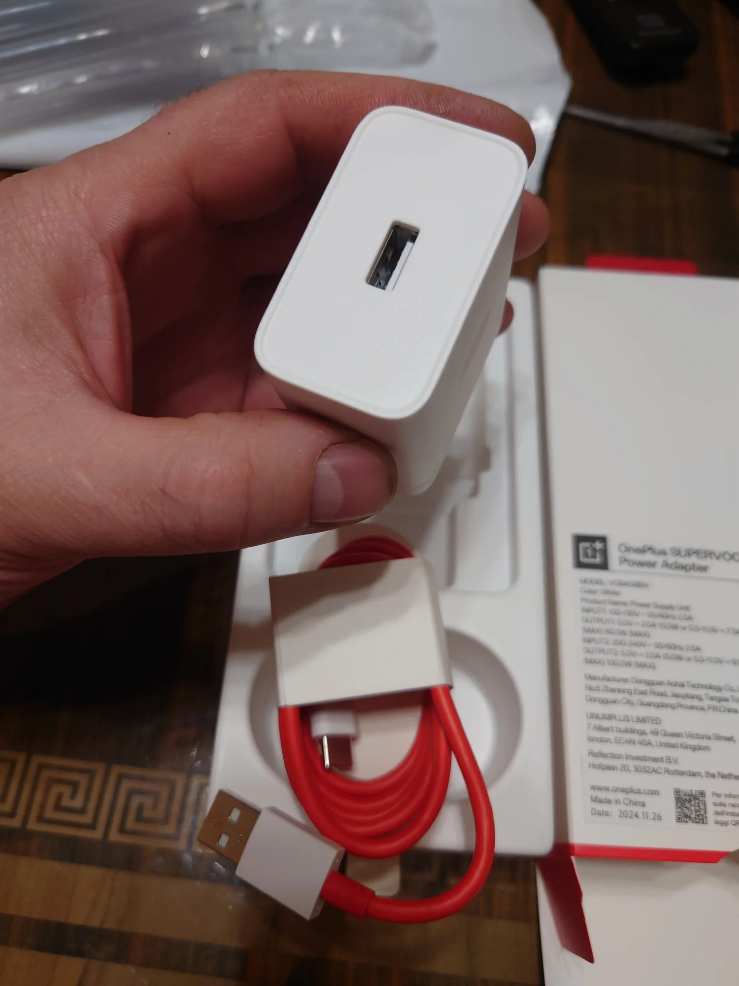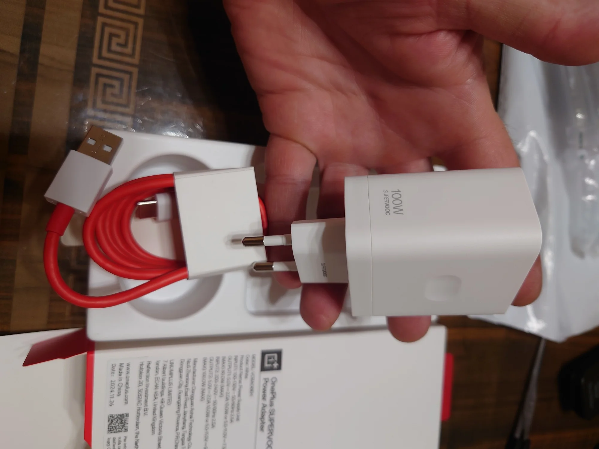 В коробке: адаптер питания OnePlus SUPERVOOC 100 Вт, кабель OnePlus SUPERVOOC Type-A Type-C.