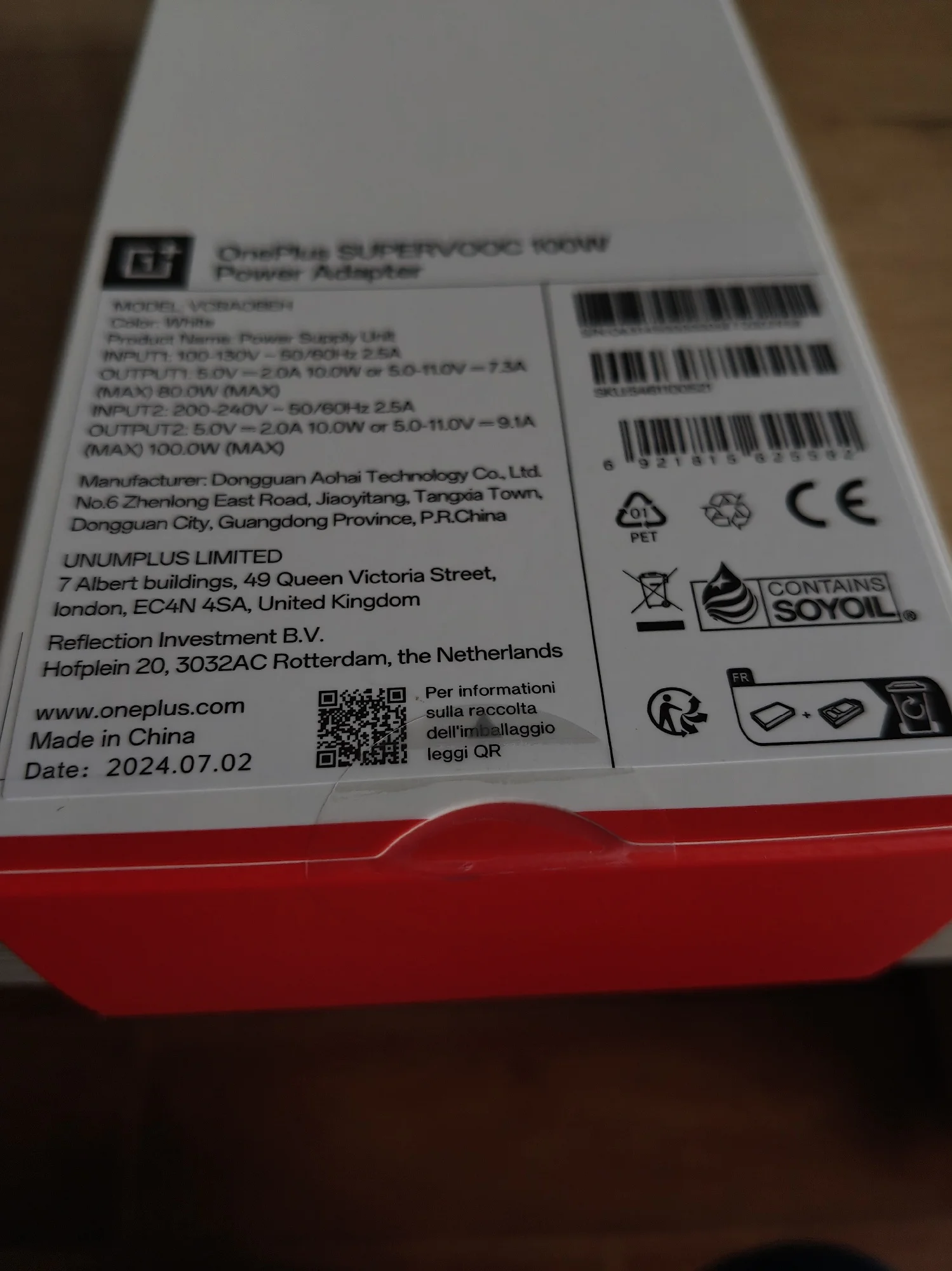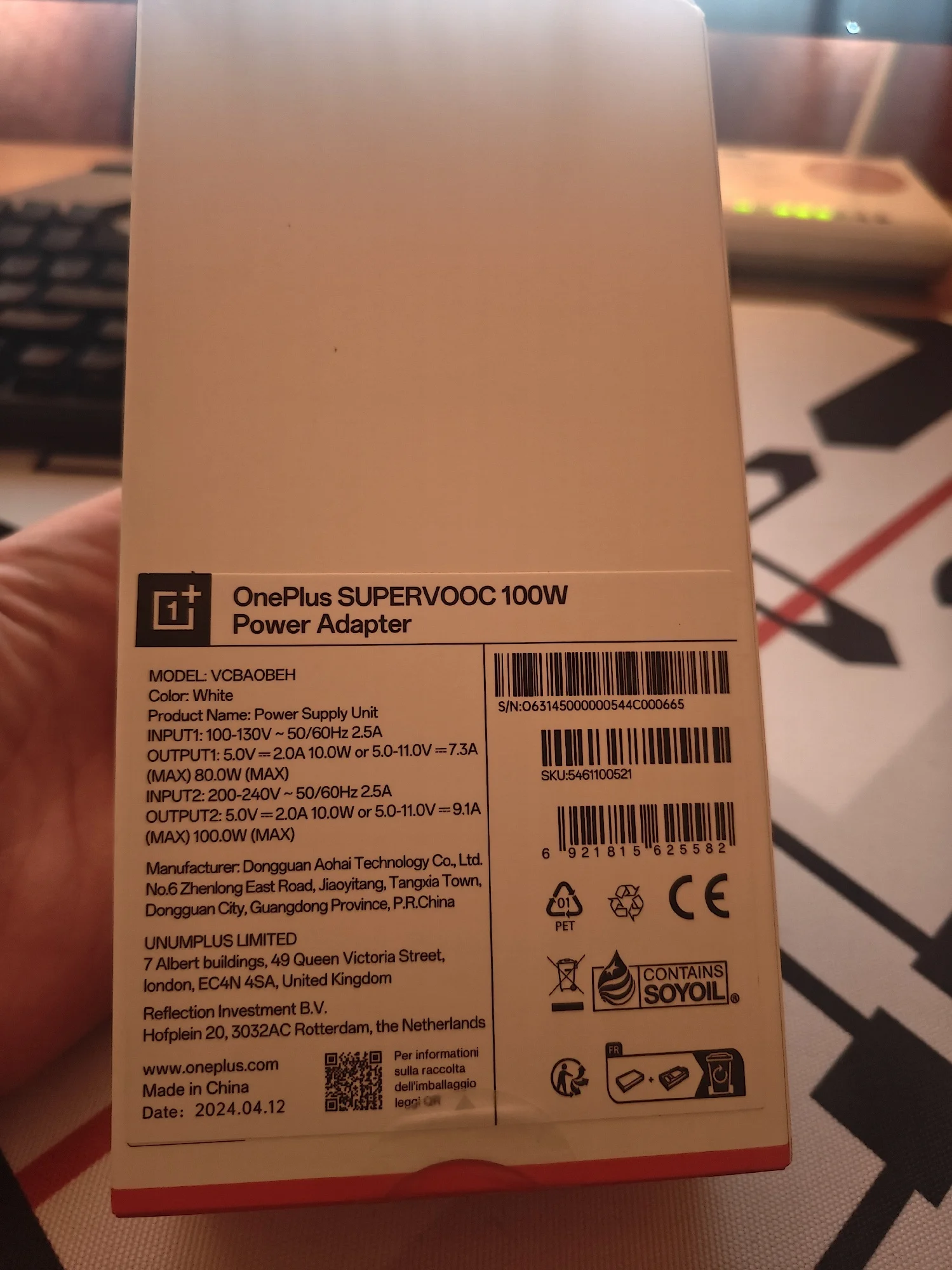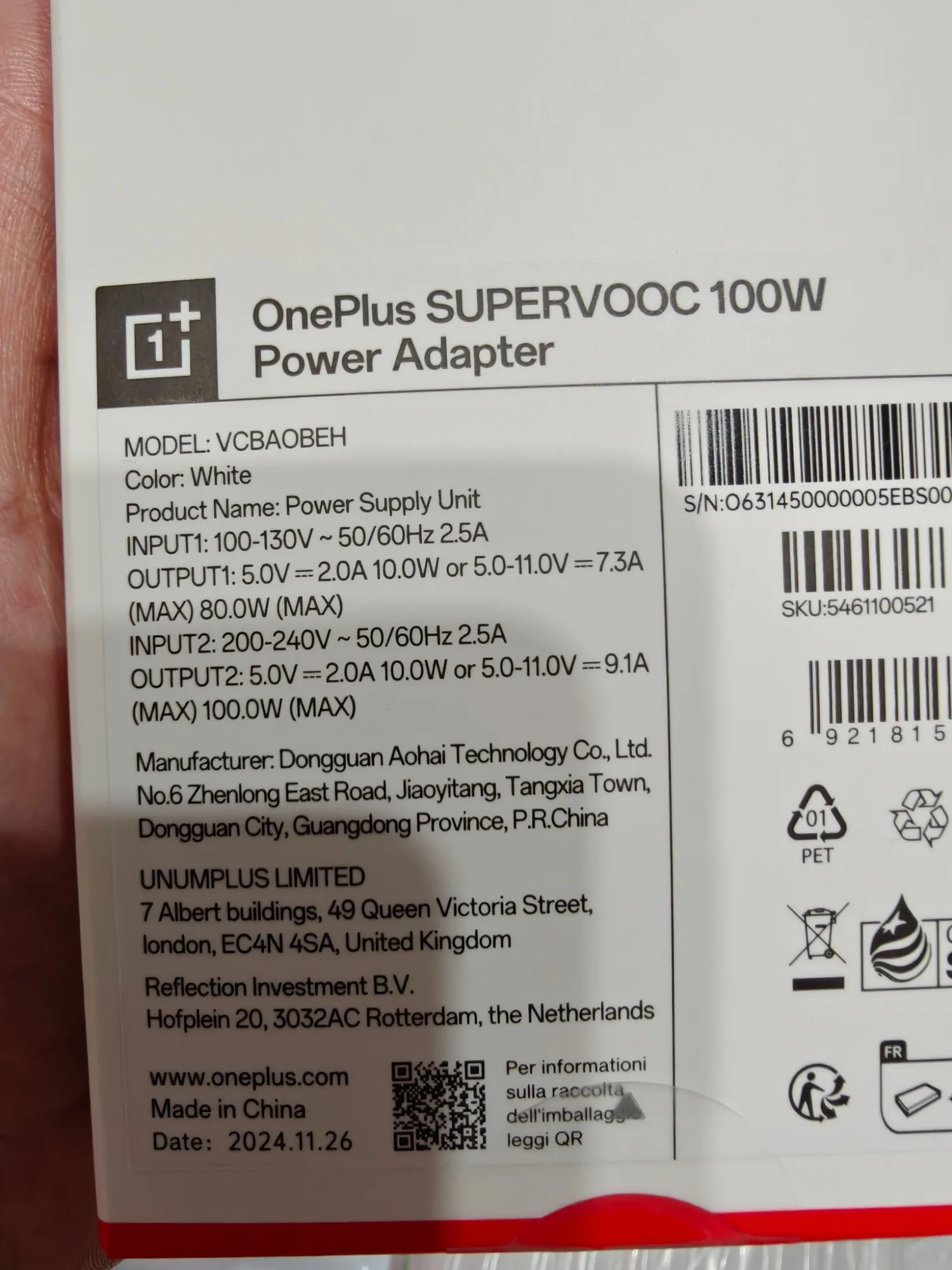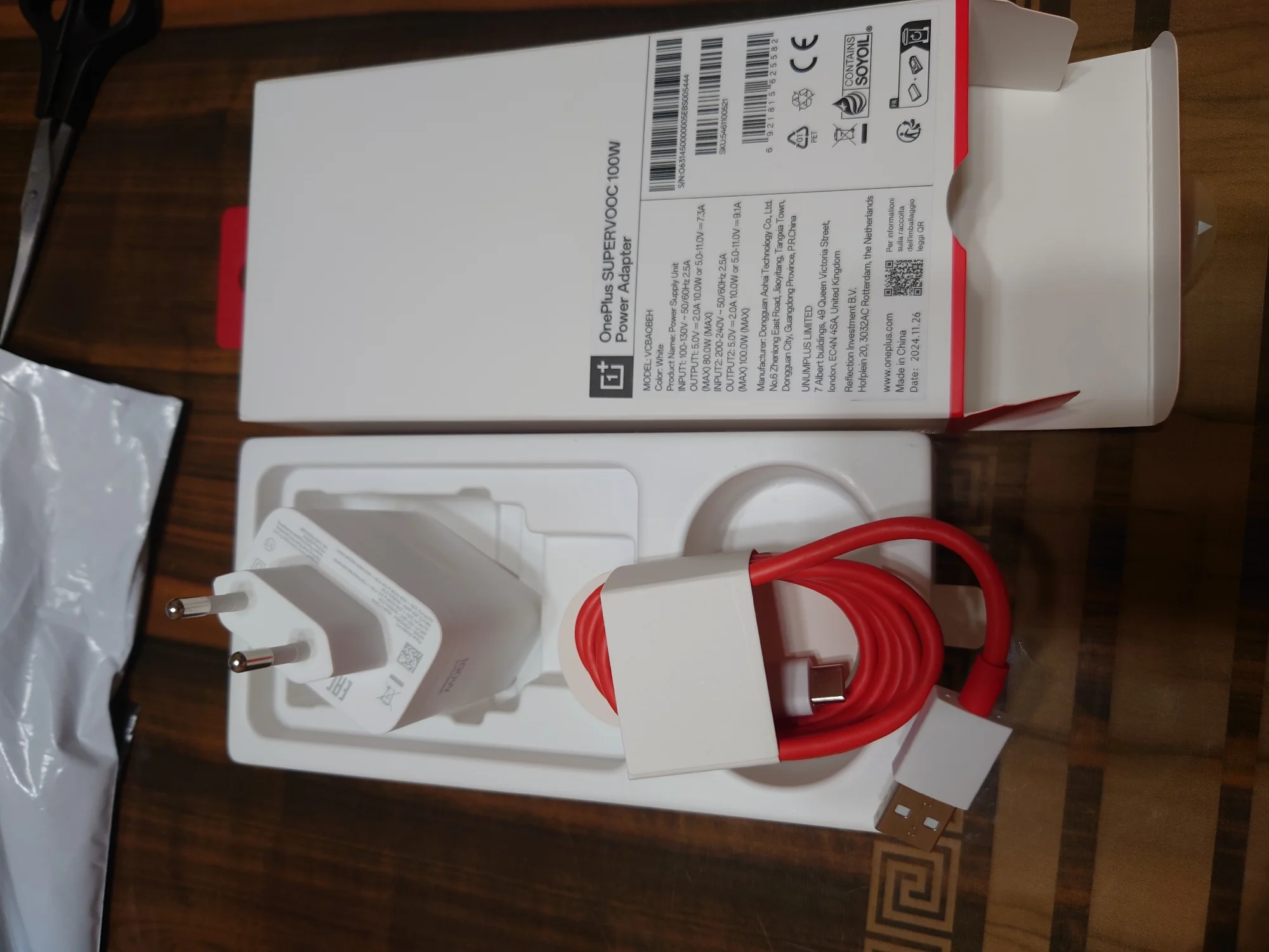 В коробке: адаптер питания OnePlus SUPERVOOC 100 Вт, кабель OnePlus SUPERVOOC Type-A Type-C.