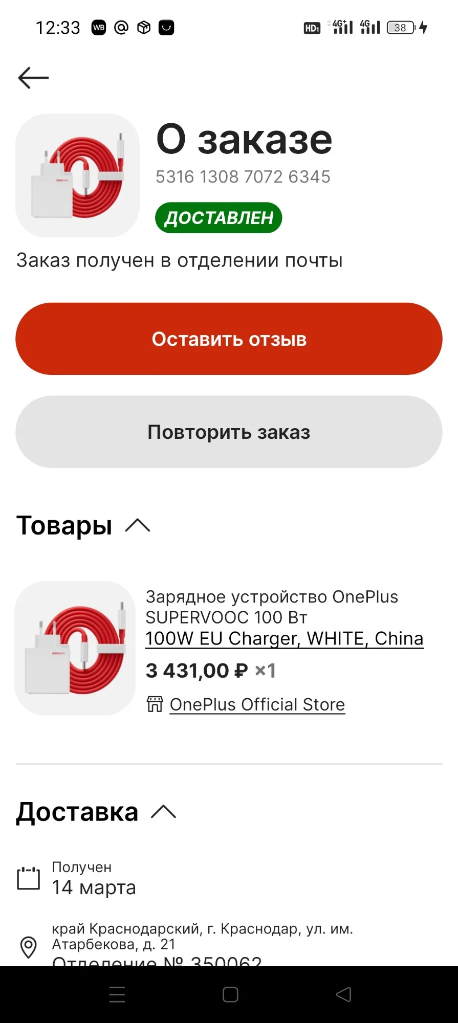 Если это вдруг не оригинал, то более чем его достоверная копия. Что мало вероятно, скорее всего товар всё же подлинник. Мне прислали оригинальный аксессуар от Oneplus, это бело-красная коробка и фирменный красный шнурок с тайп А на тайп С, в комплекте. Фирменная коробка очень хорошего качества, сам продавец пакует товар хорошо, отправляет в специальном воздушном защитном пакете, поэтому коробка доезжает без единой вмятины. К качеству работы зарядника вопросов не возникало, с нуля до сотки за приблизительно пол часа, при этом сам прибор заметно нагревается при работе, как и телефон.Maxim P. 2 августа 2024