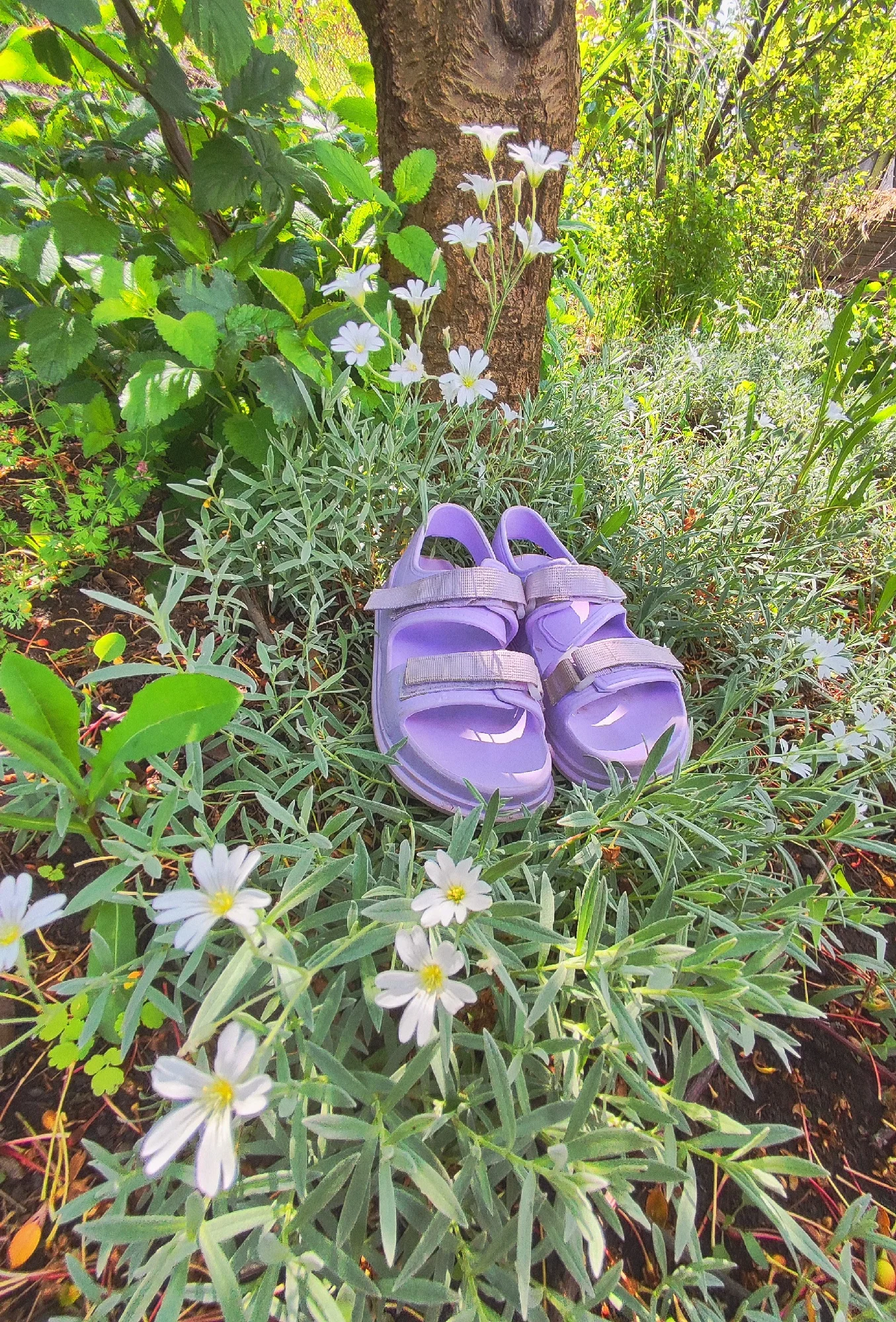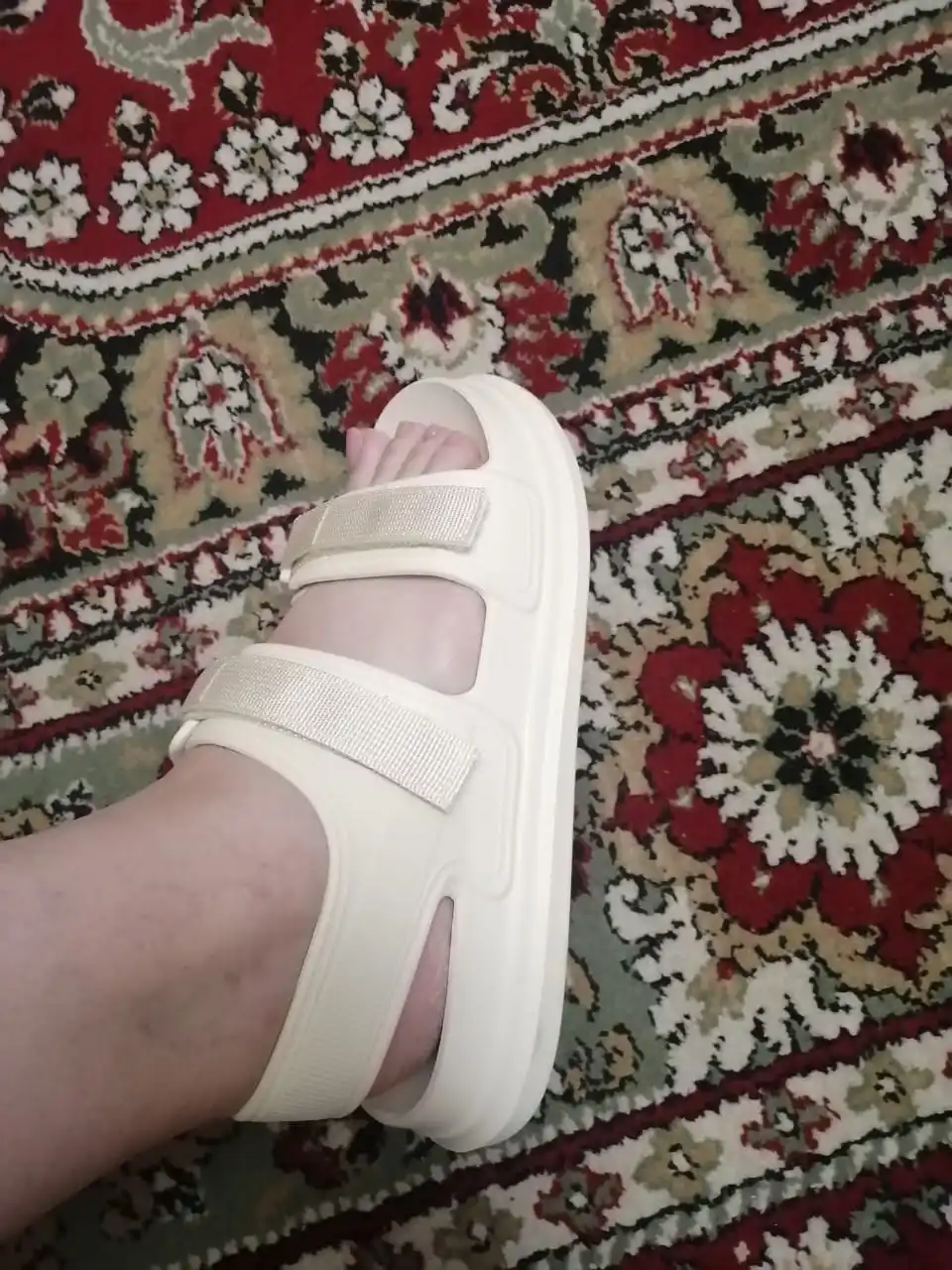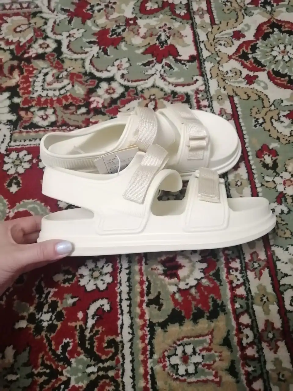 Взяла, чтобы гулять с сыном летом, а то он тащит меня во все дебри😅 📌Доставили быстро в постамат. 📌Почитала отзывы и взяла на размер больше, но можно было и свой взять. На мне размер 38, обычно ношу 37. 📌Длина ремешков регулируется липучками, поэтому сандалии подойдут на любую ширину стопы и взъем. 📌Легкие и удобные👌🏻Есть еще два цвета - сиреневый и белый. Рекомендую!