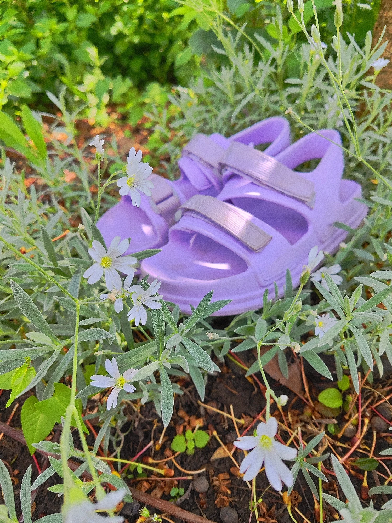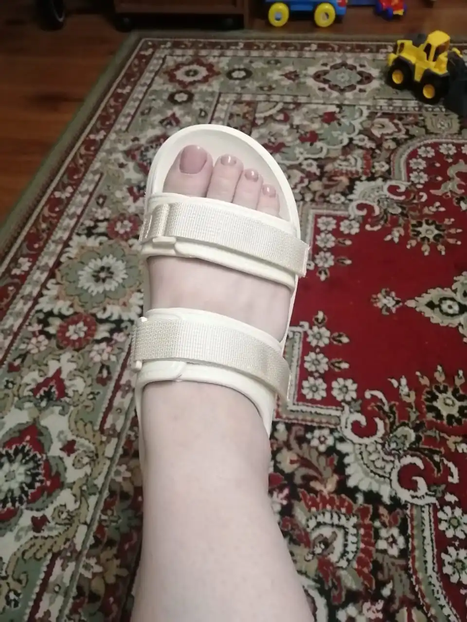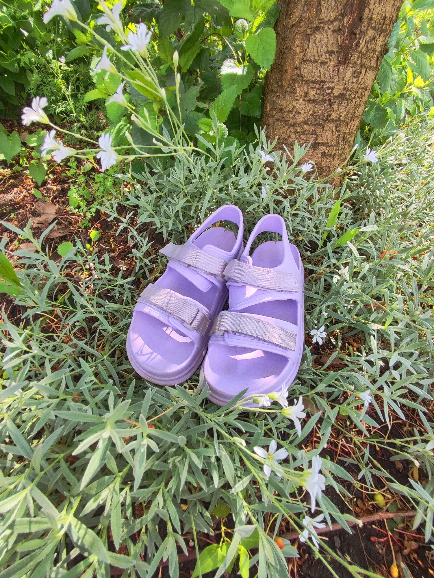 Взяла, чтобы гулять с сыном летом, а то он тащит меня во все дебри😅 📌Доставили быстро в постамат. 📌Почитала отзывы и взяла на размер больше, но можно было и свой взять. На мне размер 38, обычно ношу 37. 📌Длина ремешков регулируется липучками, поэтому сандалии подойдут на любую ширину стопы и взъем. 📌Легкие и удобные👌🏻Есть еще два цвета - сиреневый и белый. Рекомендую!
