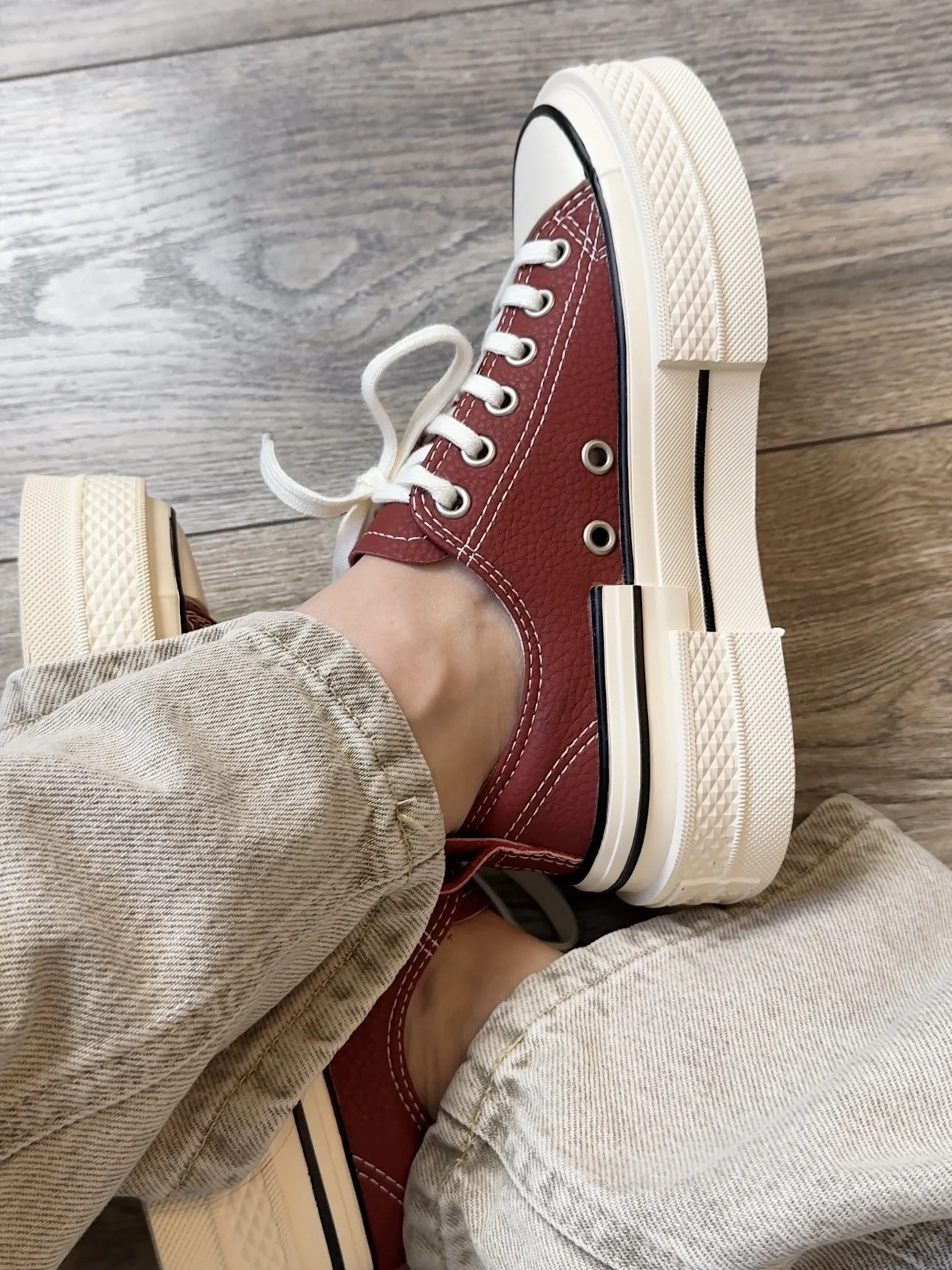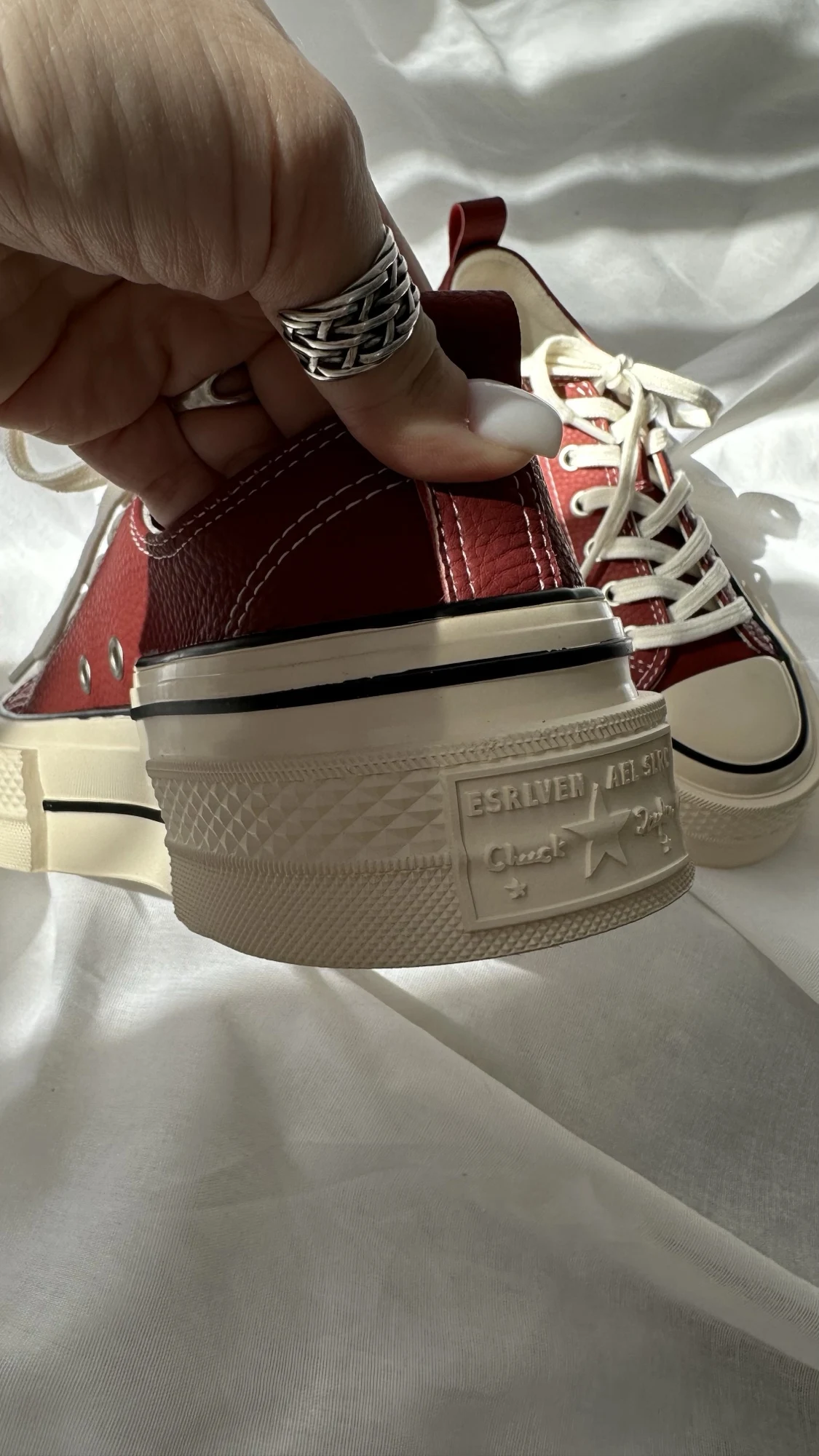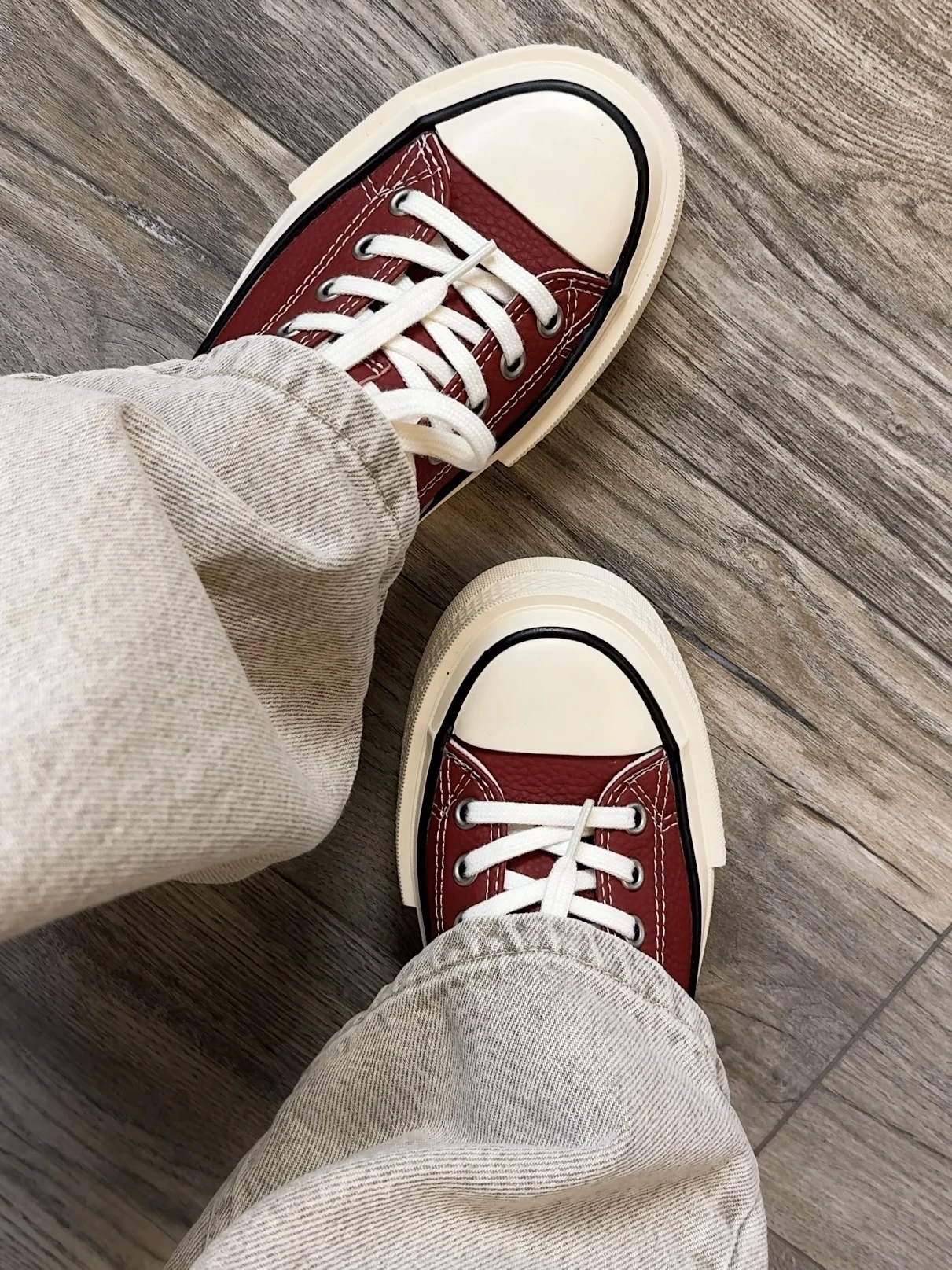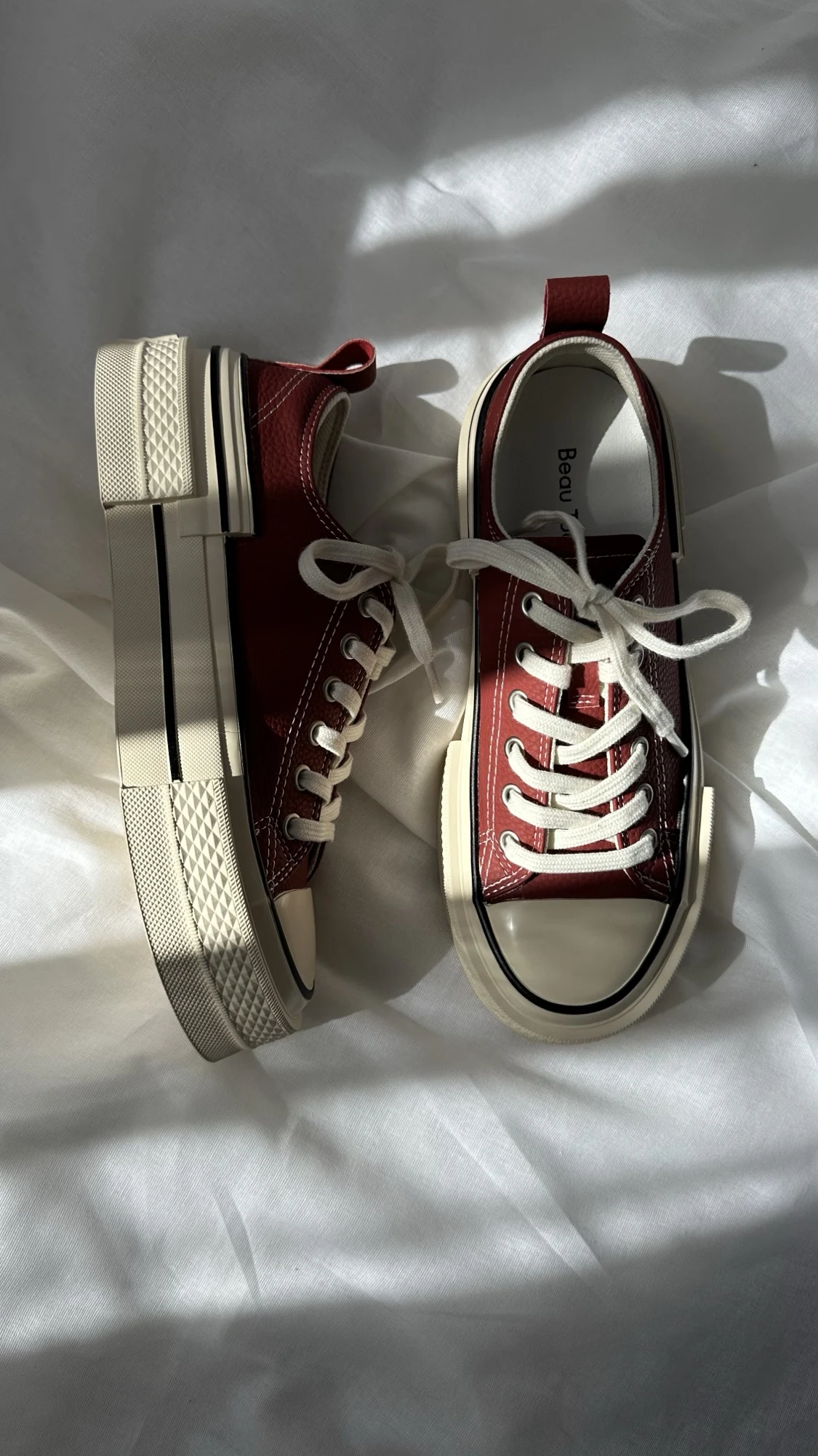 Моя самая любимая обувь - Converse. И за всю жизнь у меня было пары 3, потому что они служат по 5-7 лет. Просто вечные 😅 Но цены сейчас на них космос, потому взяла себе такую альтернативу от BeauToday. Если вы спросите, почему я покупаю кеды зимой, то ответ прост - готовь сани летом) и тем более идет распродажа, не смогла устоять) Итак, они сделаны из натуральной кожи. Понравилось необычное решение - сделать двойную подошву. Очень удобные. Особенно зашла высокая платформа. На длину стопы 22,5 см взяла размер 5 - подошел идеально. Ни больше ни меньше не нужно. Мои конверс в бордовом цвете я носила сто лет назад, еще когда он не был в тренде, да и тогда даже слов таких не было)) Какая же я древняя 🤣 Девочки, рекомендую, они 🔥 Кеды супер