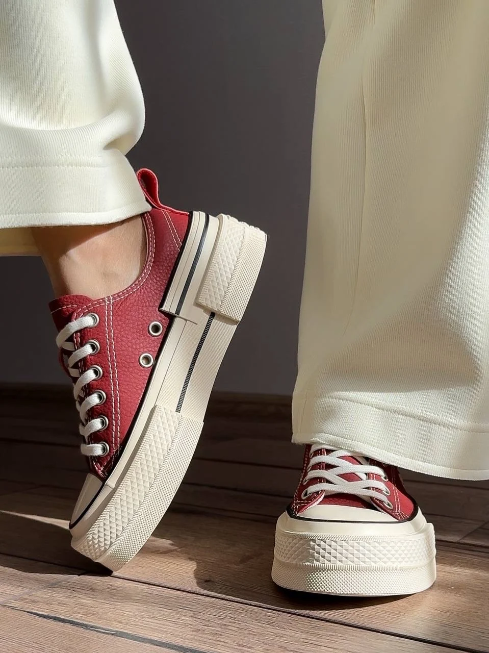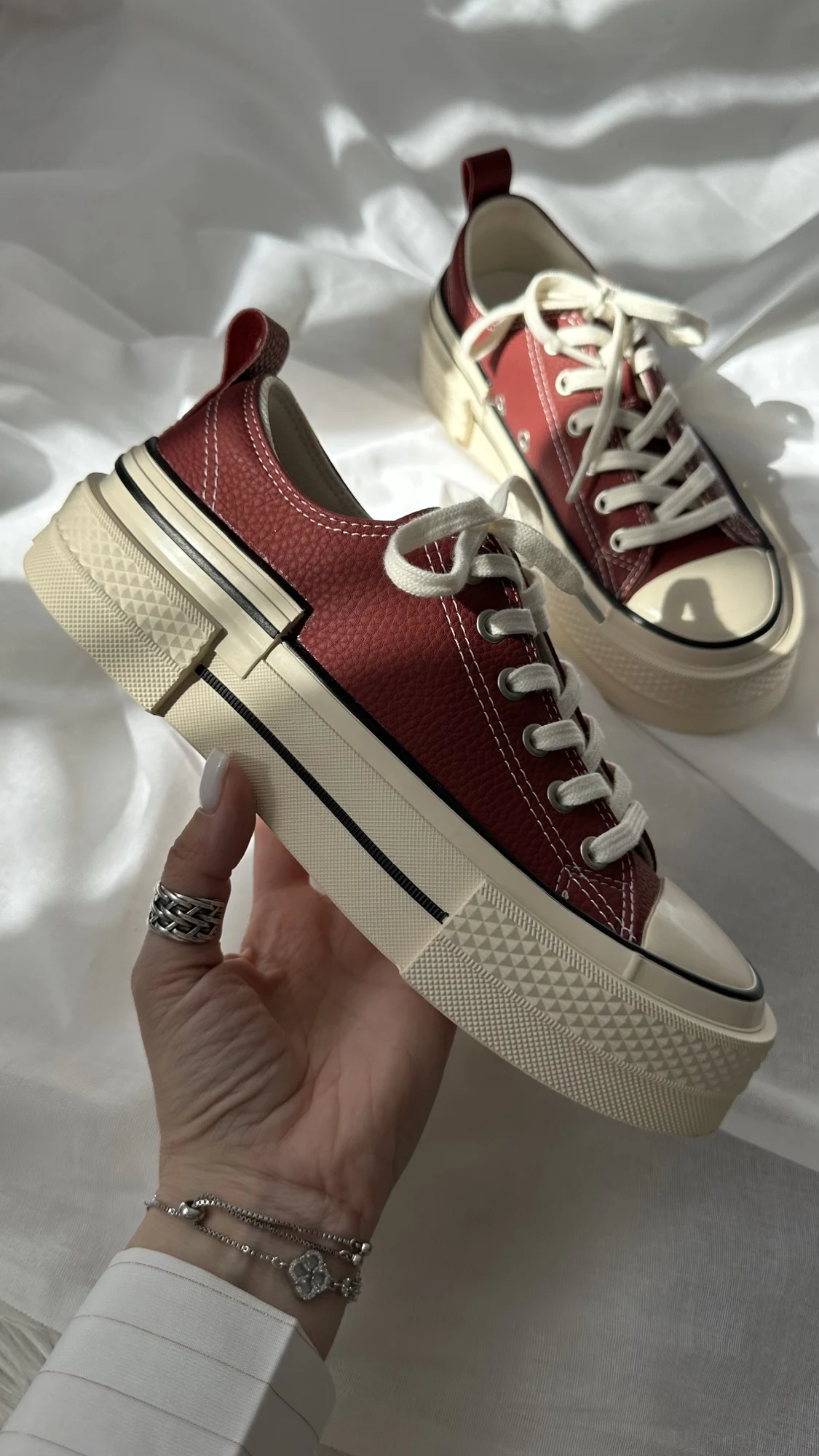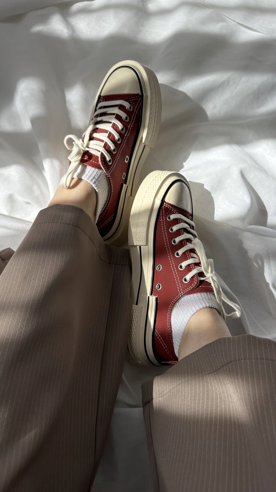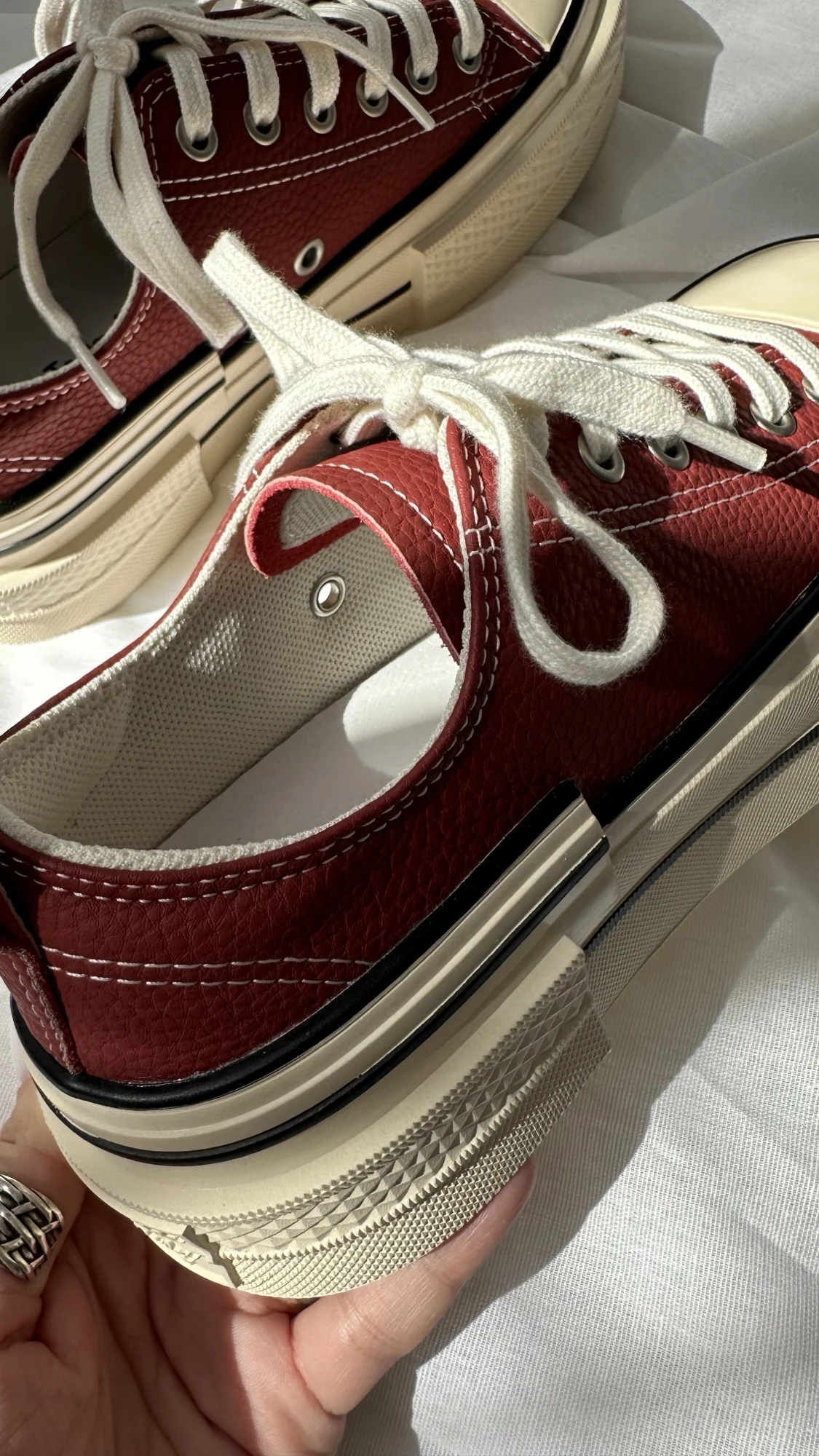 Моя самая любимая обувь - Converse. И за всю жизнь у меня было пары 3, потому что они служат по 5-7 лет. Просто вечные 😅 Но цены сейчас на них космос, потому взяла себе такую альтернативу от BeauToday. Если вы спросите, почему я покупаю кеды зимой, то ответ прост - готовь сани летом) и тем более идет распродажа, не смогла устоять) Итак, они сделаны из натуральной кожи. Понравилось необычное решение - сделать двойную подошву. Очень удобные. Особенно зашла высокая платформа. На длину стопы 22,5 см взяла размер 5 - подошел идеально. Ни больше ни меньше не нужно. Мои конверс в бордовом цвете я носила сто лет назад, еще когда он не был в тренде, да и тогда даже слов таких не было)) Какая же я древняя 🤣 Девочки, рекомендую, они 🔥 Кеды супер