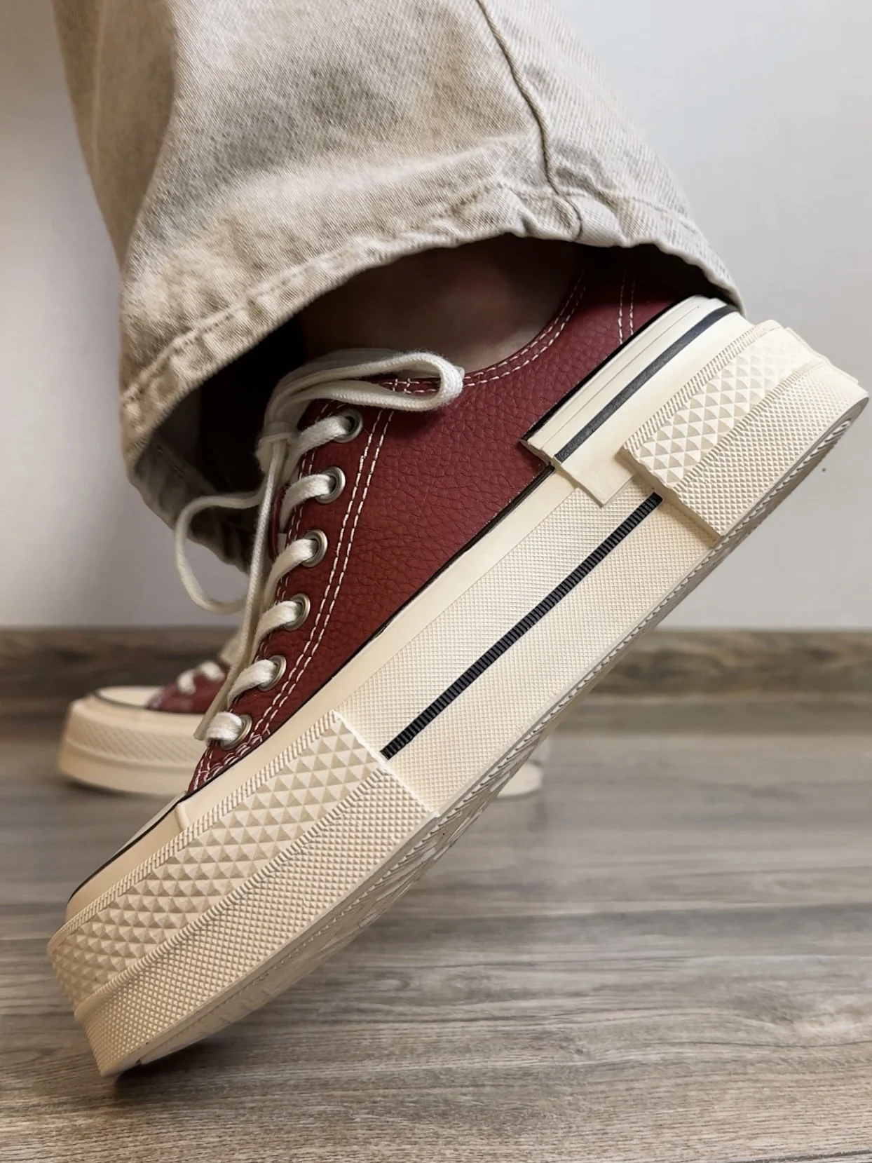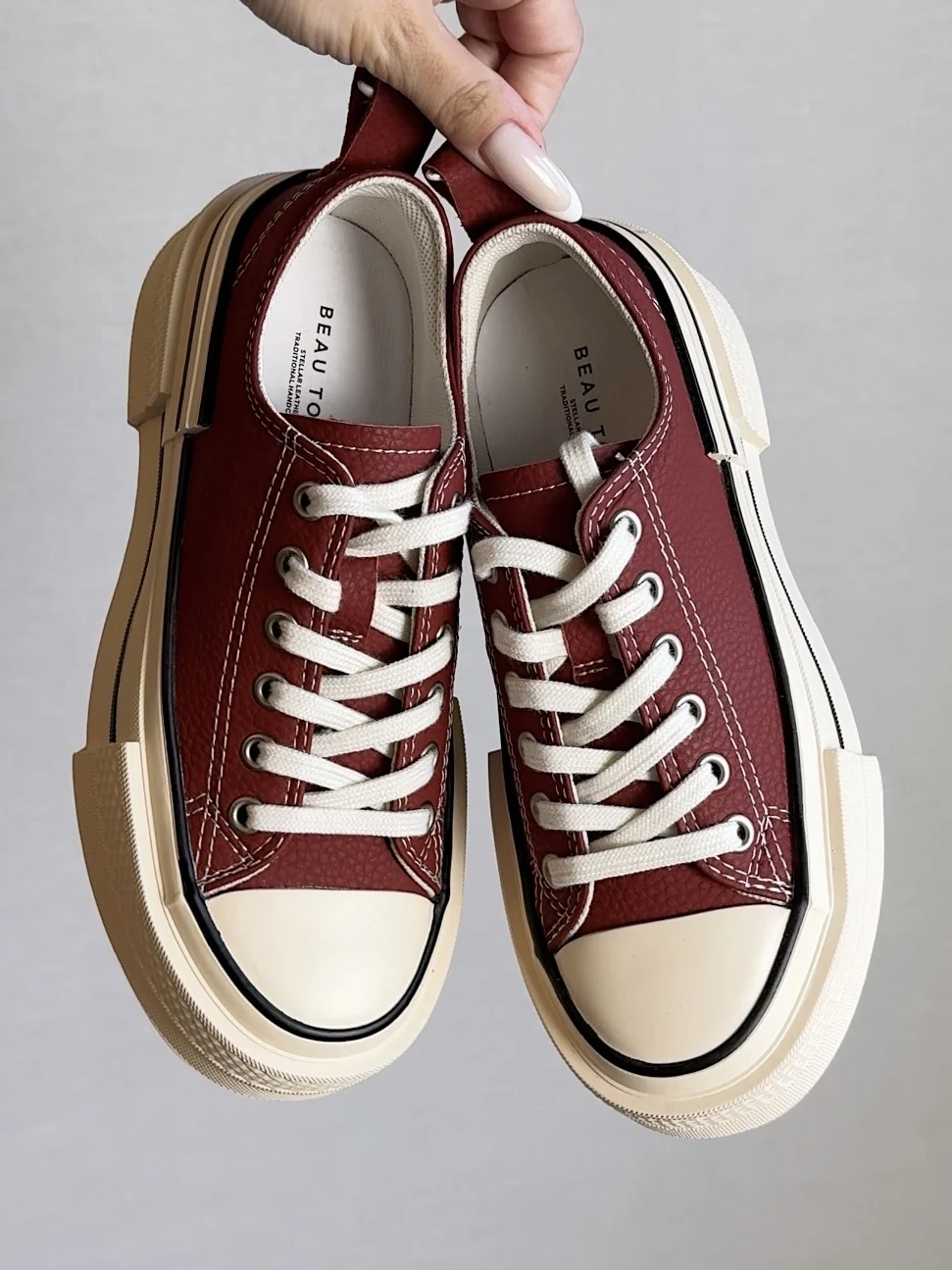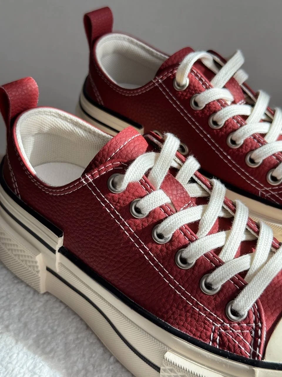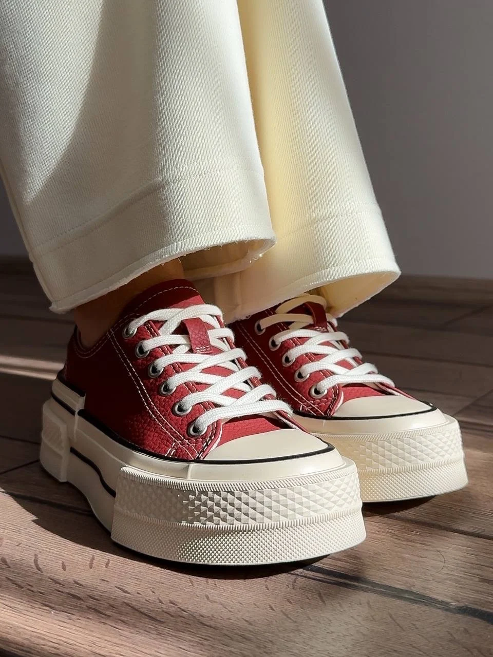 Моя самая любимая обувь - Converse. И за всю жизнь у меня было пары 3, потому что они служат по 5-7 лет. Просто вечные 😅 Но цены сейчас на них космос, потому взяла себе такую альтернативу от BeauToday. Если вы спросите, почему я покупаю кеды зимой, то ответ прост - готовь сани летом) и тем более идет распродажа, не смогла устоять) Итак, они сделаны из натуральной кожи. Понравилось необычное решение - сделать двойную подошву. Очень удобные. Особенно зашла высокая платформа. На длину стопы 22,5 см взяла размер 5 - подошел идеально. Ни больше ни меньше не нужно. Мои конверс в бордовом цвете я носила сто лет назад, еще когда он не был в тренде, да и тогда даже слов таких не было)) Какая же я древняя 🤣 Девочки, рекомендую, они 🔥 Кеды супер