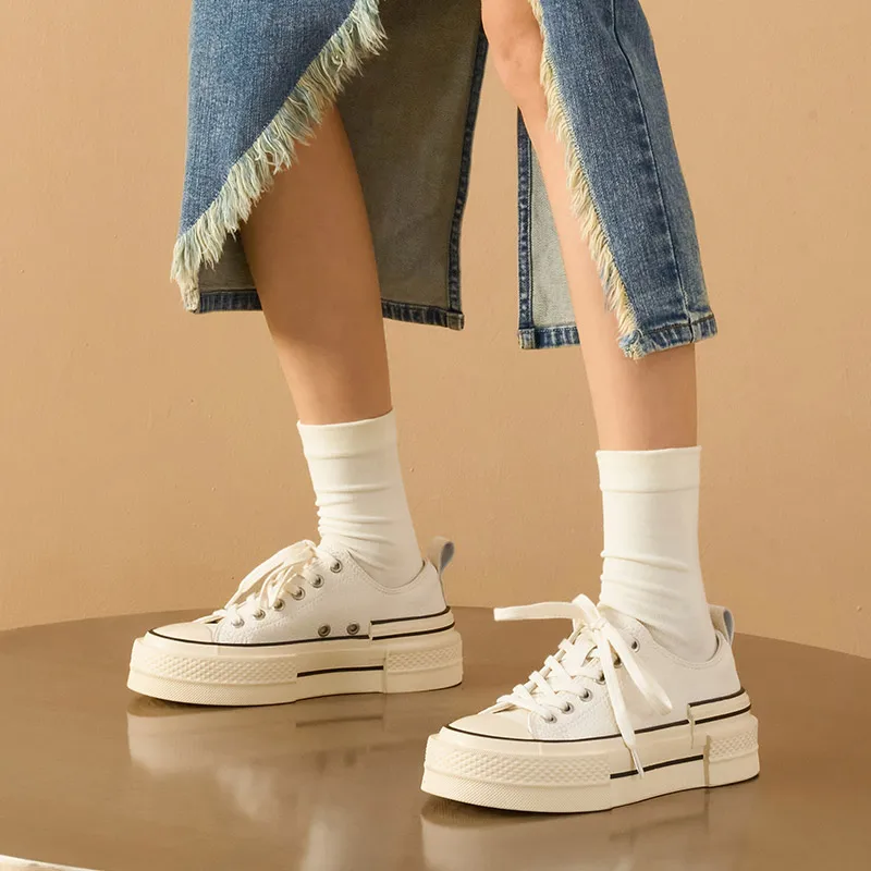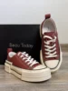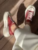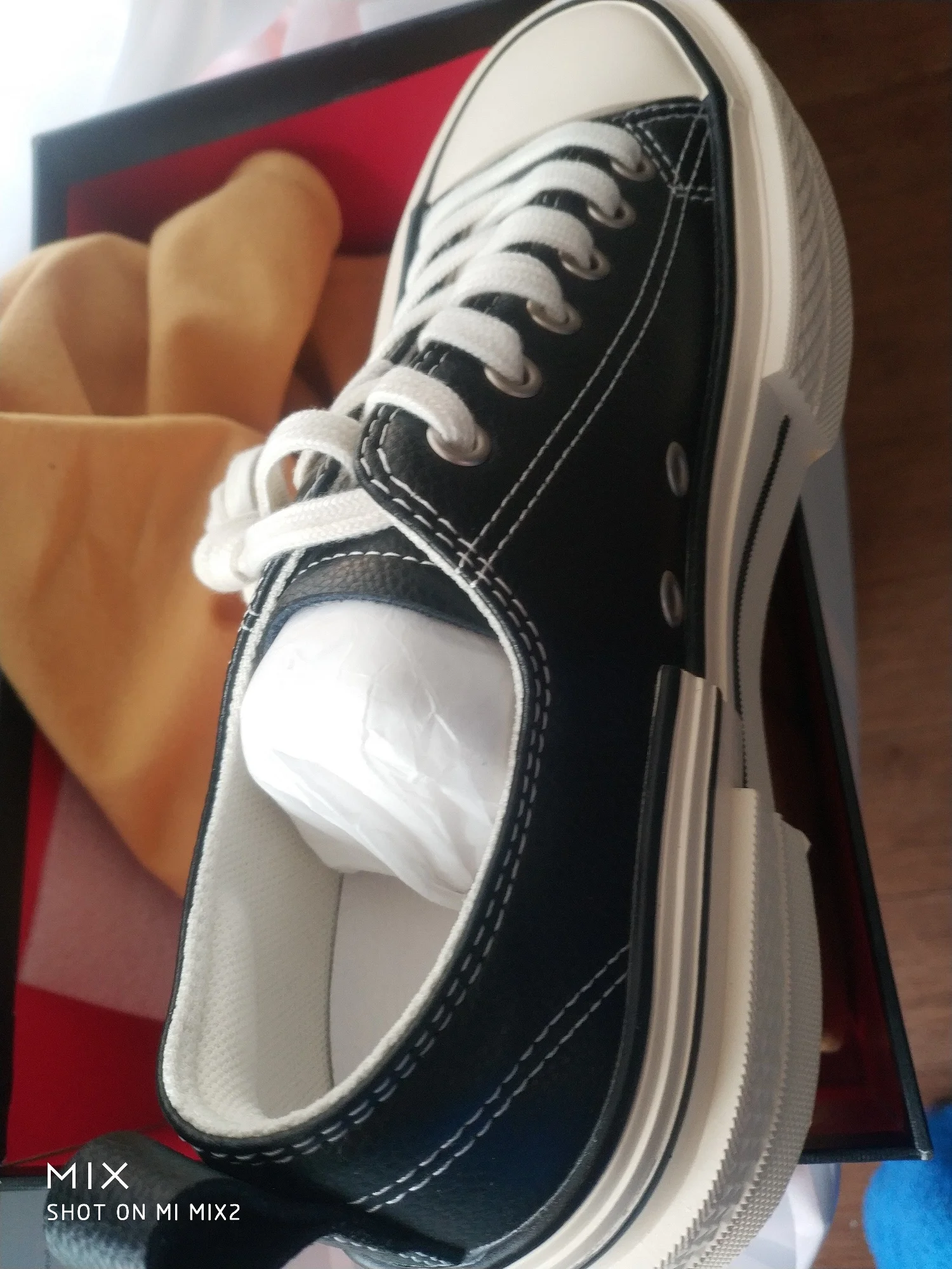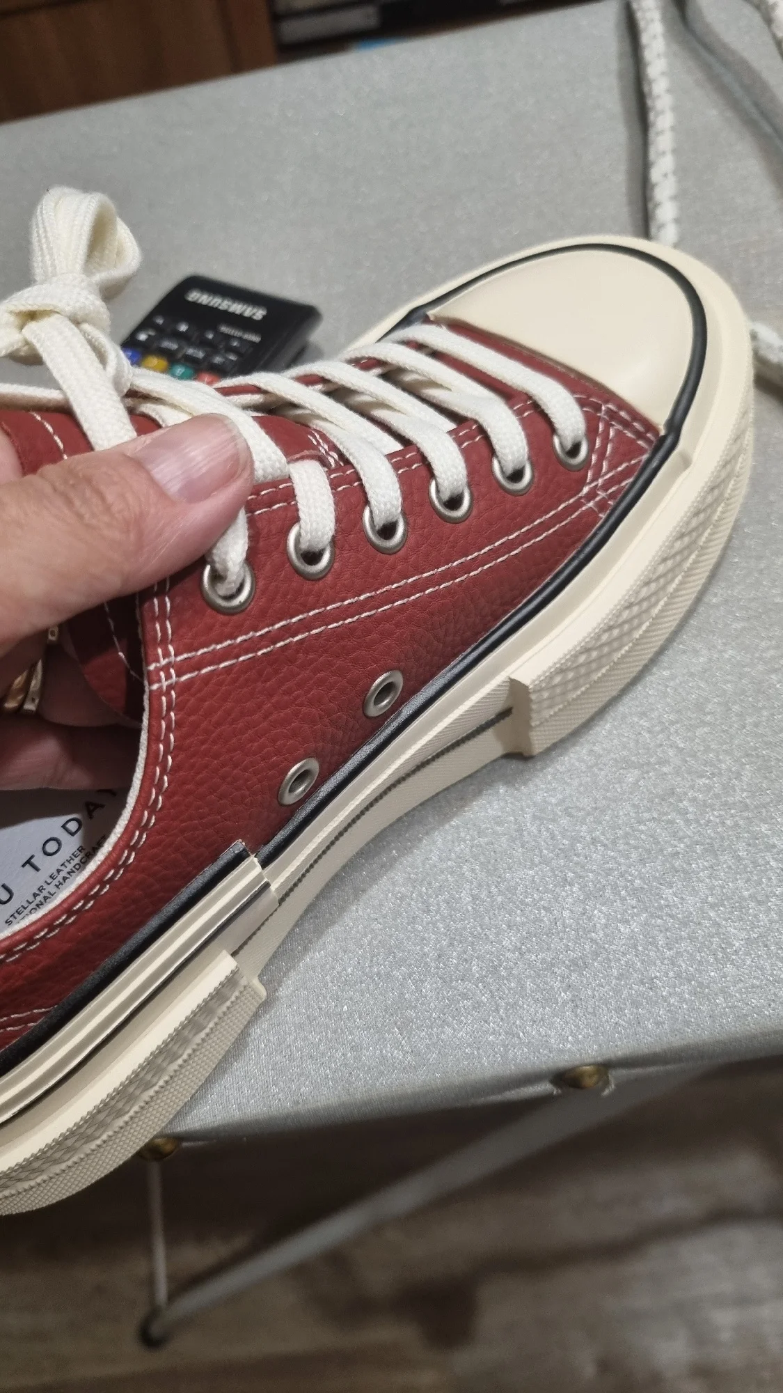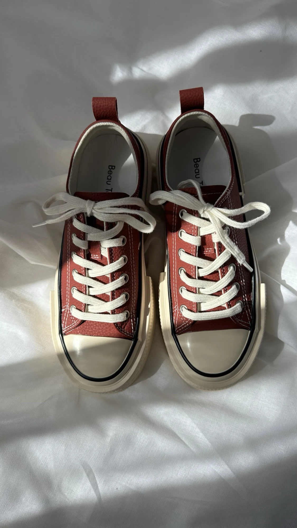 Именно эта модель нравится мне больше, чем высокие кеды (показывала их на своем канале). В процессе эксплуатации оказалось, что довольно проблематично надевать высокие кеды - нужно расширить зону обхвата щиколотки, ослабить шнурки и помочь себе «ложкой», чтобы надеть их. Хотя смотрятся высокие кеды круто. Но, более практичной оказалась именно модель в стандартной длине. На длину стопы 22,5 см заказала кроссовки в цвете Red в размере 5 (35) на свой 35 российский размер, соответственно. На выбор 4 цвета. По размеру подошли идеально. Кеды подойдут на узкую и средней полноты ногу. Комплектация: коробка, индивидуальные пыльники, полустельки. Выполнены из натуральной кожи. Резиновая подошва. Внутренняя отделка из текстиля для комфорта ноги. Кеды на шнуровке, которой можно регулировать посадку по объему ноги. На ноге сидят очень комфортно, удобные и легкие, несмотря на довольно массивную подошву. Качество безупречное! Модель отдаленно напоминает знаменитые кроссовки бренда Converse. Очень стильные кеды на прохладное лето и теплую осень!