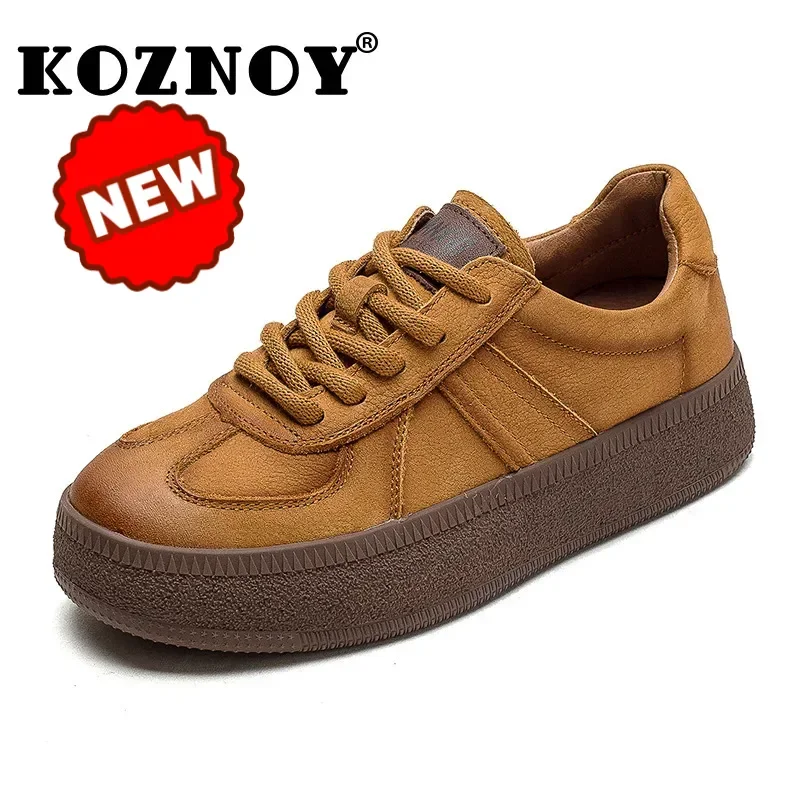 Koznoy 4CM Cow Suede Genuine Leather Comfy Summer Breathable Ethnic Vulcanize...