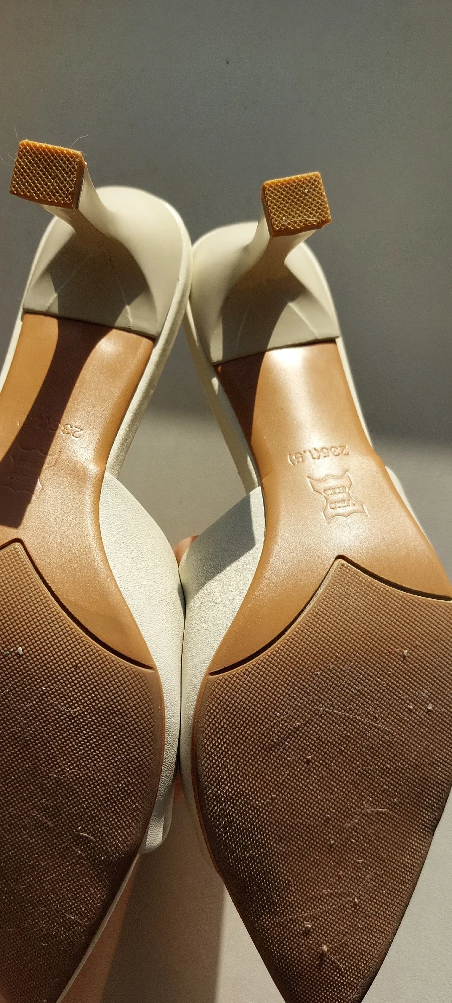 Потрясающей красоты туфли. Это уже вторая пара. Первые покупала молочные. Я в восторге! Удобные, мягкие. Полностью натуральная кожа, обувщик стельку отклеивал, чтобы убедиться. Сразу набойку поставил. У меня нога 23,5см, средней полноты. заказала 6 , сели, как влитые. Качество хорошее. Рекомендую от души. Спасибо продавцу и мастерам, которые делают такую красоту для нас. Есть следы клея на стельке, но мне не притично уже.