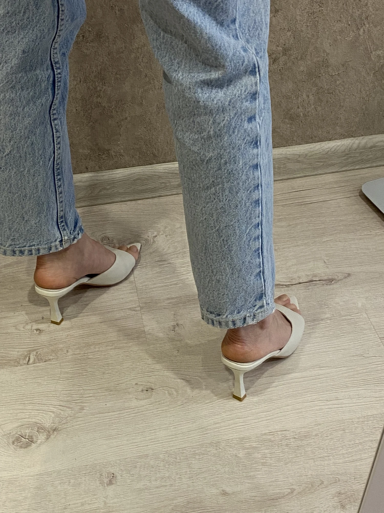 Отличные мюли, кожа как заявлено, запах чуть совсем был. Единственное у меня было немного клея в стыках кожи, но это не критично и не особо видно. На худую ножку имейте ввиду. Каблук хороший, устойчивый. На ноге очень красиво смотрятся. Размер в размер.