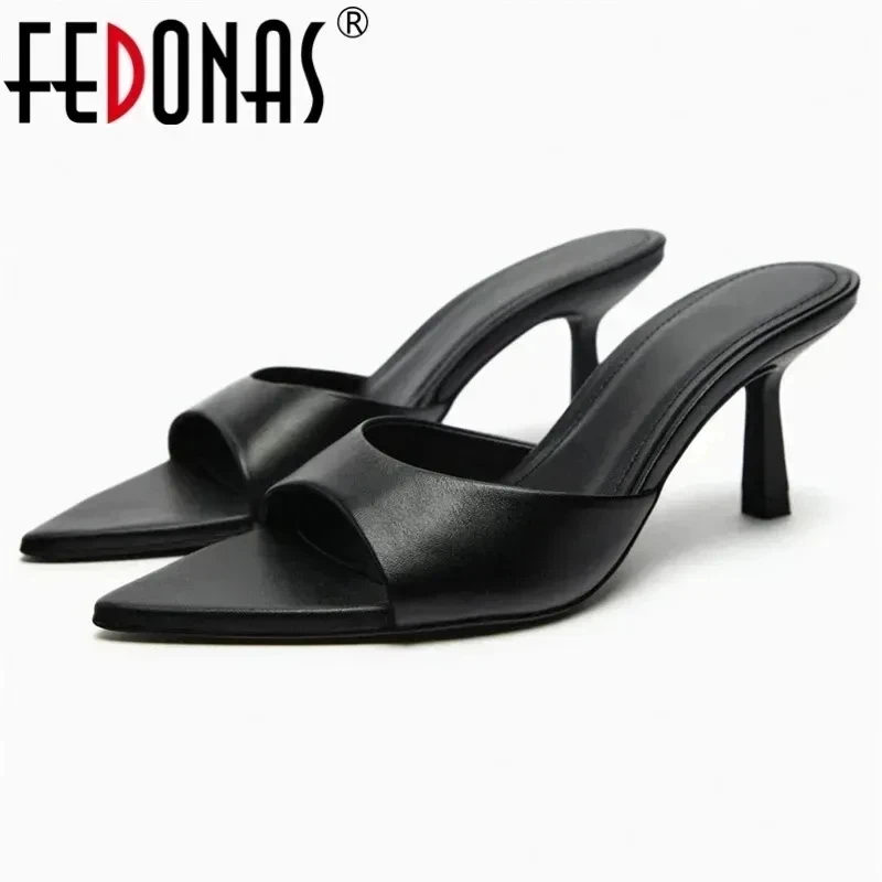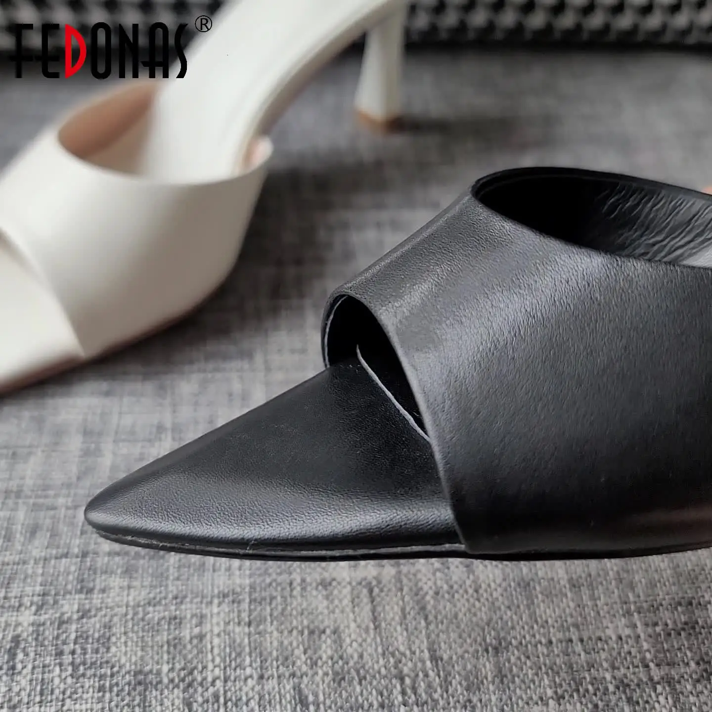 FEDONAS Women Genuine Leather High Heels Sandals Sexy Pointed Open Toe Party...
