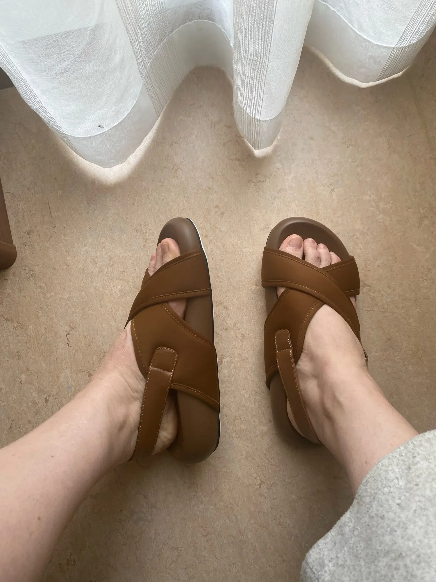 босоножки прекрасны! на узкую стопу 232мм подошел 6,5 размер. Боялась, что будут широкими, но сели идеально! вобще не понимаю, как у таких прекрасных босоножек мало продаж и нет отзывов) изначально очень хотела купить босоножки всем известной фирмы ecco, но вставила их фото в поисковик Али и вышли эти босоножки, в 2 раза дешевле.нигде не жмут и не трут, мягкие, подошва гнется