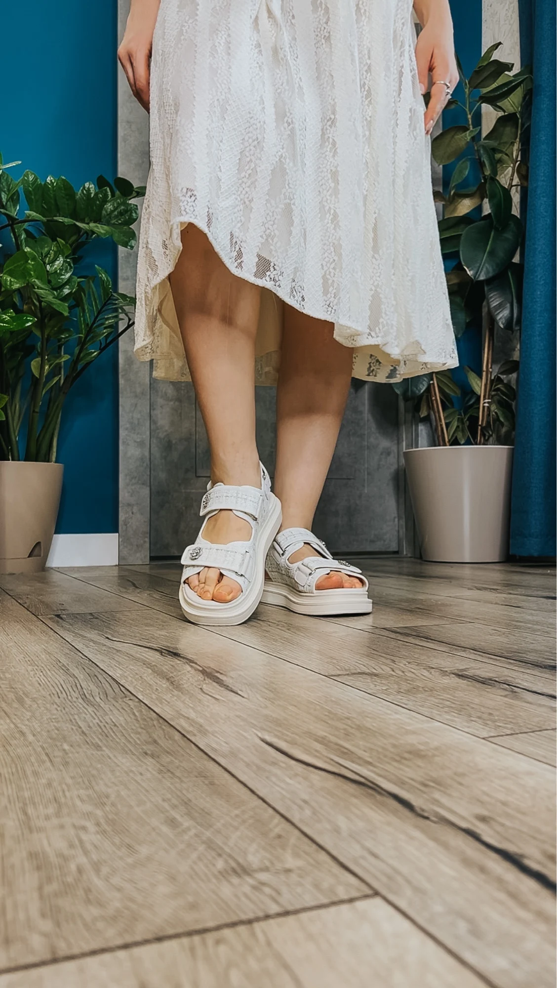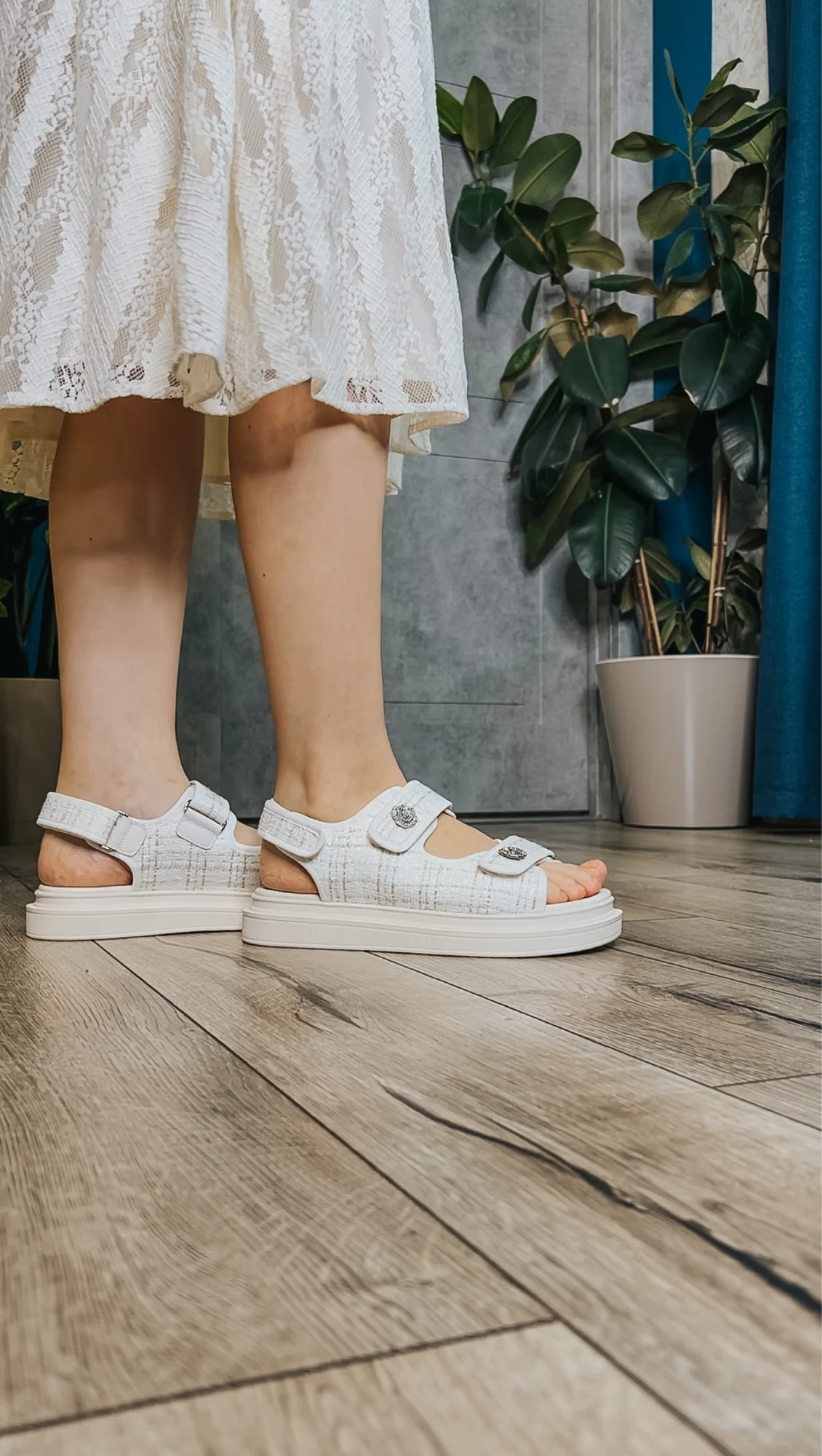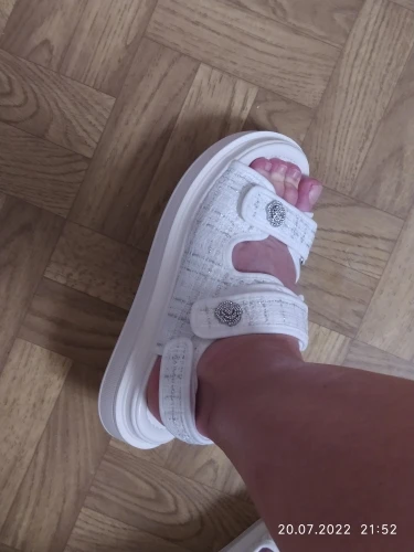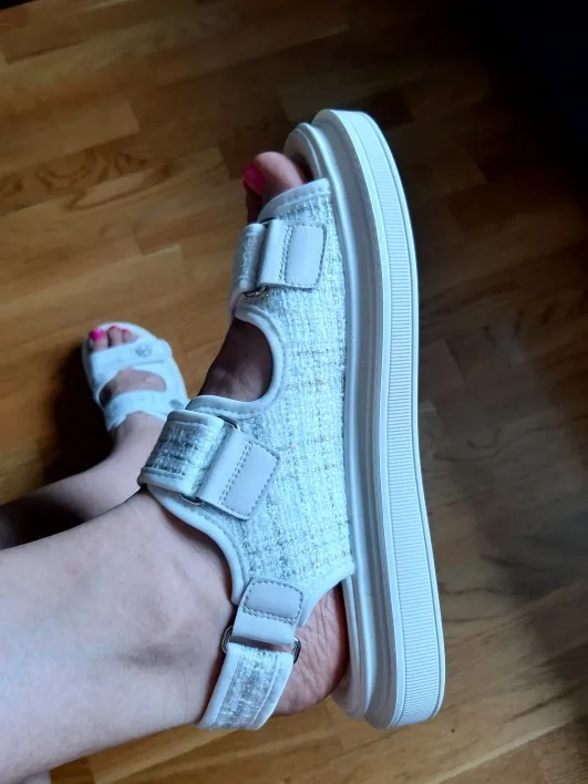 Сандалии замечательного качества и очень удобные. ✅ 2 цвета ✅ 8 размеров (до 26см) ✅ Застежки на липучках ✅ Верх из микса материалов: твидовая ткань и искуственная кожа ✅ Мягкая подкладка и стелька из искусственной кожи ✅ Нескользящая полиуретановая подошва на платформе ✅ Фурнитура в цвете под никель Я заказала в размере 8,5, на мою ногу 24.7 см подошли отлично. Полностью соответствуют размерной таблице. Еще из плюсов хочу отметить что данная модель подойдет на любой объем ноги, так как все ремешки регулируются и задник в том числе. LeraVmode