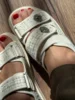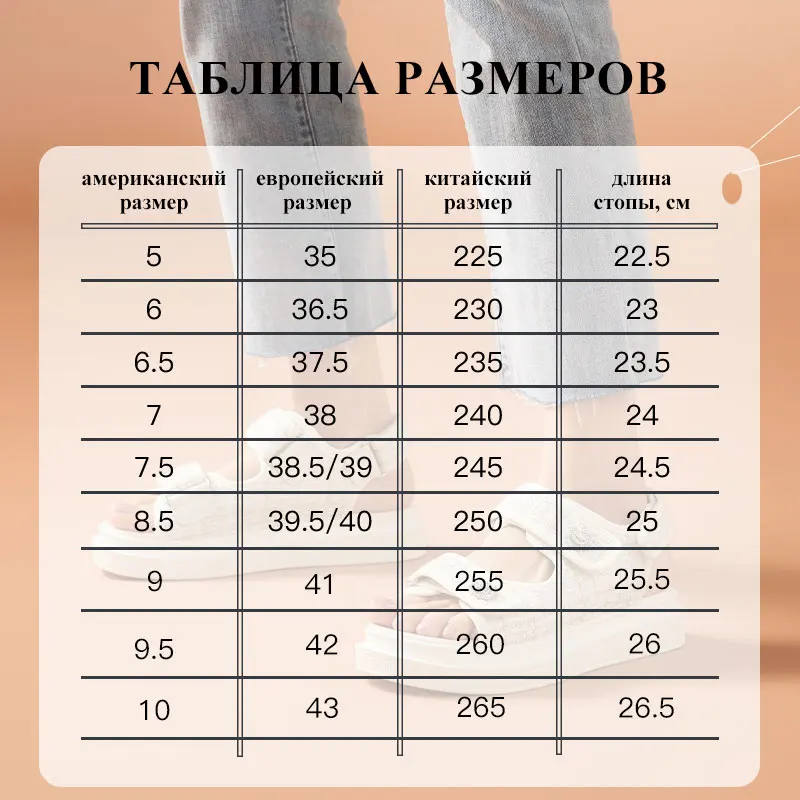 Тапки просто супер. Очень мягкие, классно сделаны. Для моих ног, склонных к отечностям, регулируемые застежки на липучках просто идеальны. Был небольшой фабричный запах при распаковке, после первой прогулки исчез. В ходьбе не чувствуются на ногах. На стопу 24,5 см взяла размер 8.5, так как люблю посвободнее. Сели идеально, как и хотела. Коробка была сильно повреждена, но обувь целая. Отправили быстро. в Москву пришли за 1,5 недели. Спасибо продавцу за оперативность.Julia V. 14 июля 2022